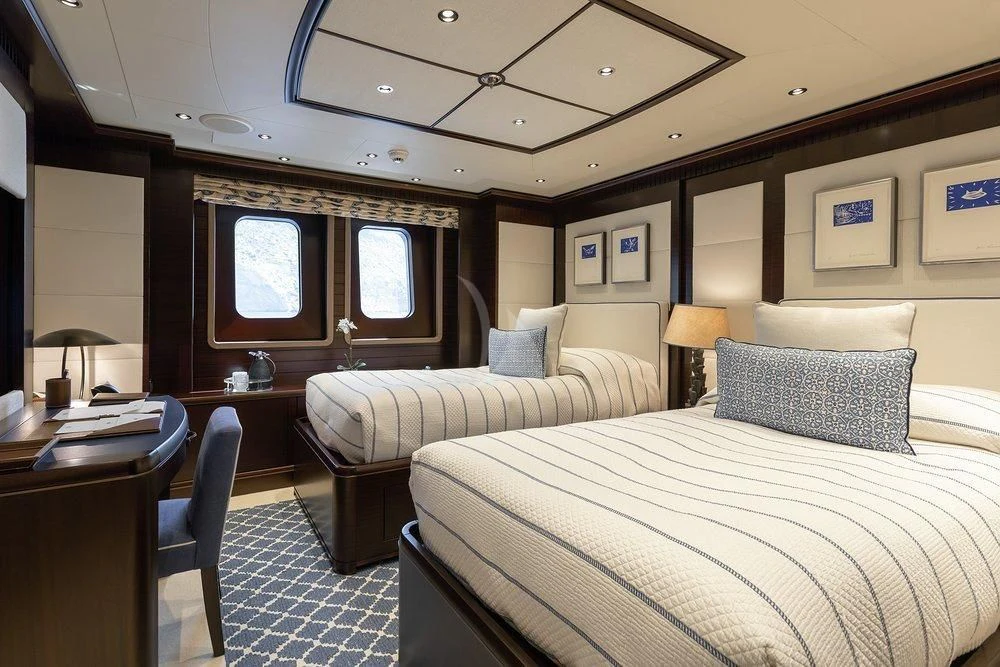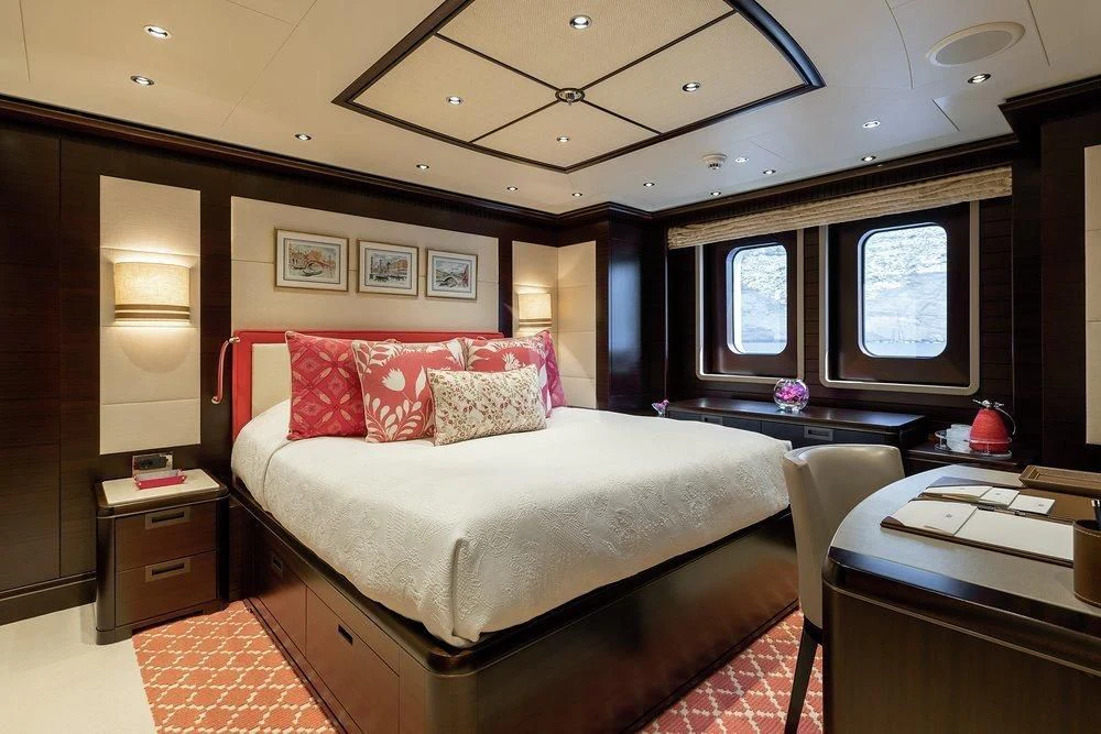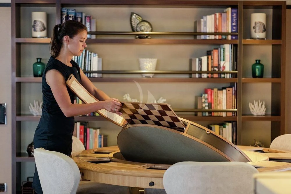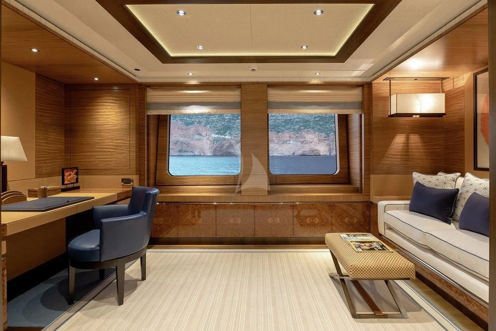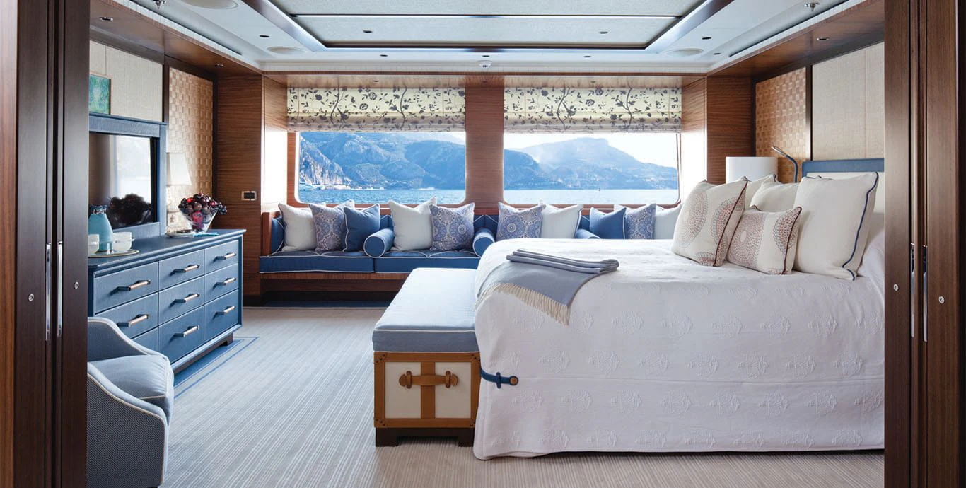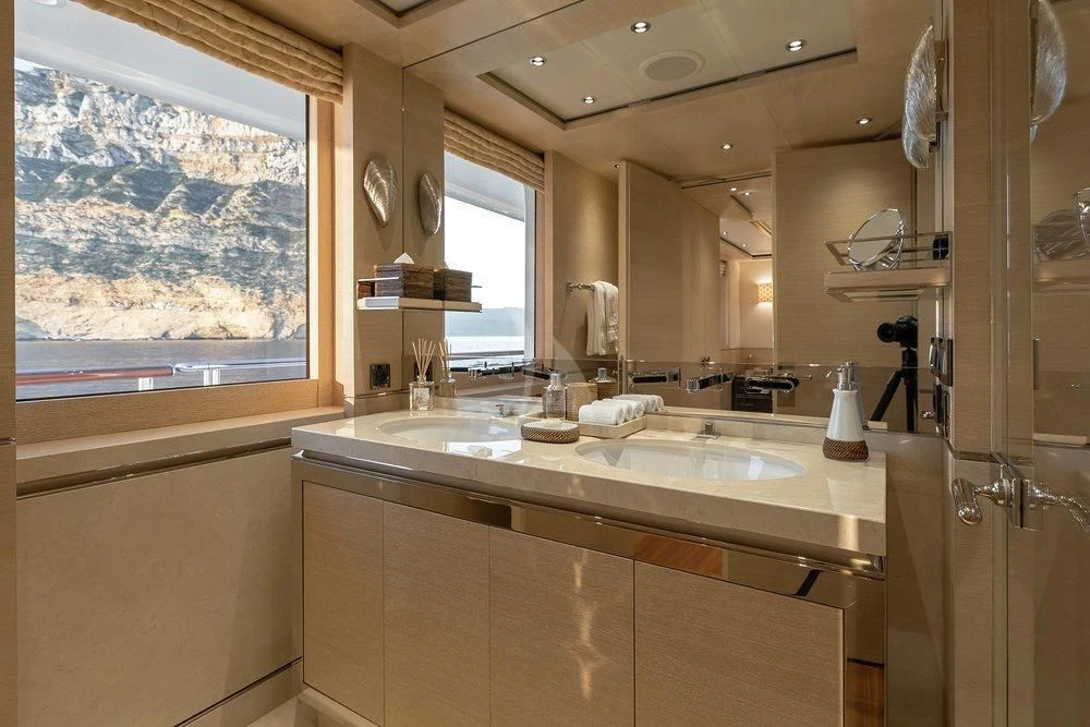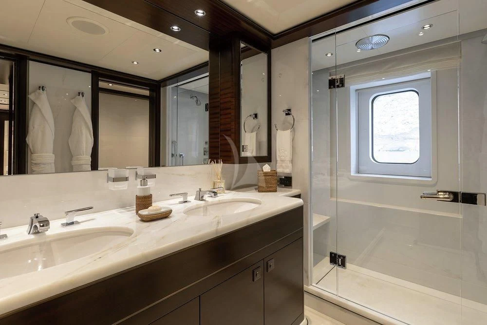 At the end of the day, the superyacht’s seven sumptuous staterooms offer tranquil havens to rejuvenate after a fun day on the water. BATON ROUGE features an expansive, 1,000-square meter, main deck master suite with two private offices, a dressing room and a lavish en-suite bath with a rainfall shower and blue marble bathtub. The yacht also features two upper deck VIP staterooms and four double staterooms on the lower deck (two staterooms convert into doubles).