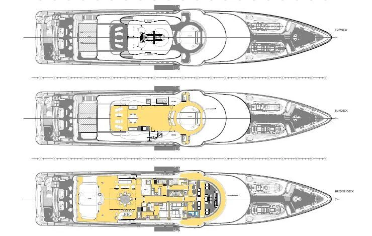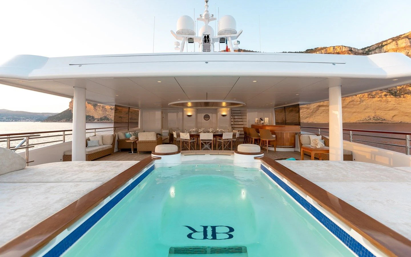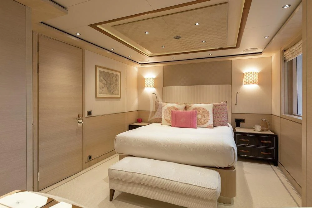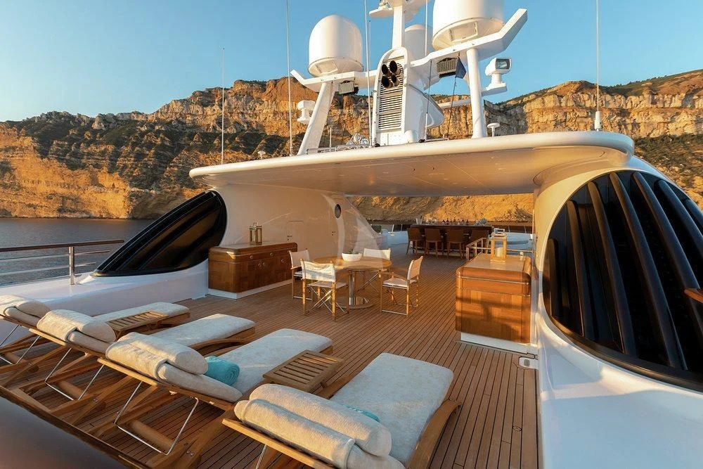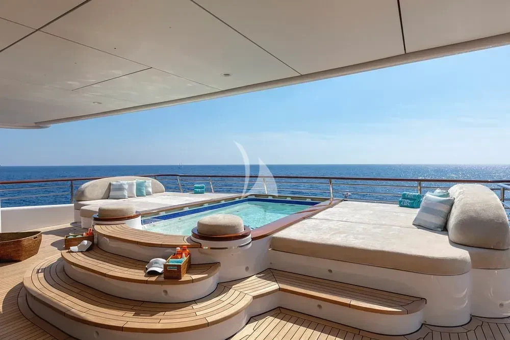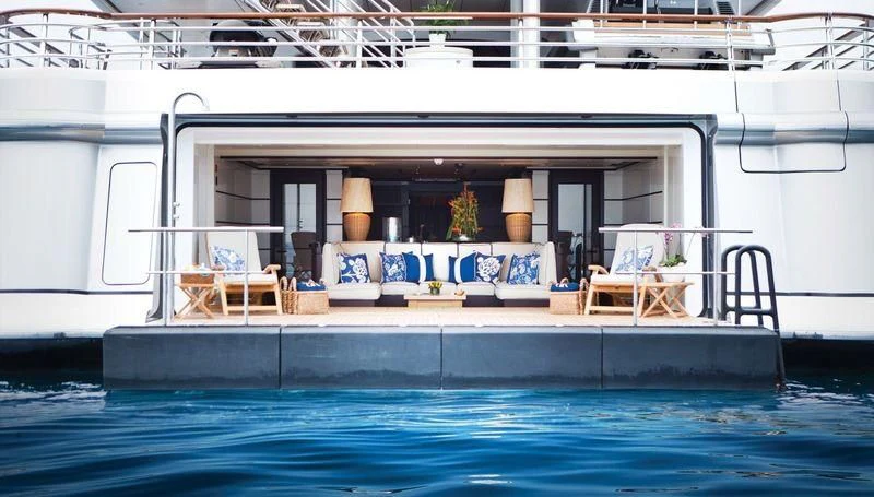 Featuring vast outdoor living areas charter guests will enjoy living the alfresco lifestyle while aboard. The sundeck is a guest favorite with its bountiful sunpads and plush sun loungers, which allow guests to become kissed by the sun. When the sunsets the sundeck can easily be converted into a club-like atmosphere where charter guests can dance the night away. On the bridge deck aft, the superyacht features a jet stream pool flanked by sunpads, which offers the perfect spot to relax as well as a great workout, if desired. If working out is a desire while aboard, BATON ROUGE also has a well-equipped gym off the beach club. Providing the ultimate on-water experience, the charter yacht showcases a spacious beach club where afternoons can be spent lounging by the water’s edge and enjoying the yacht’s array of water toys.