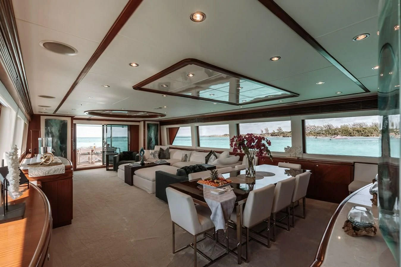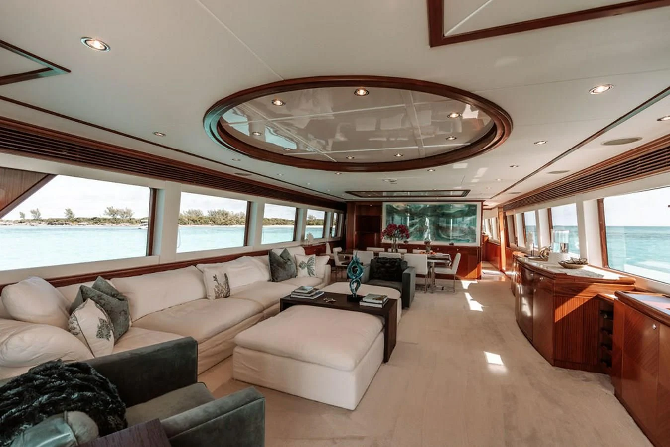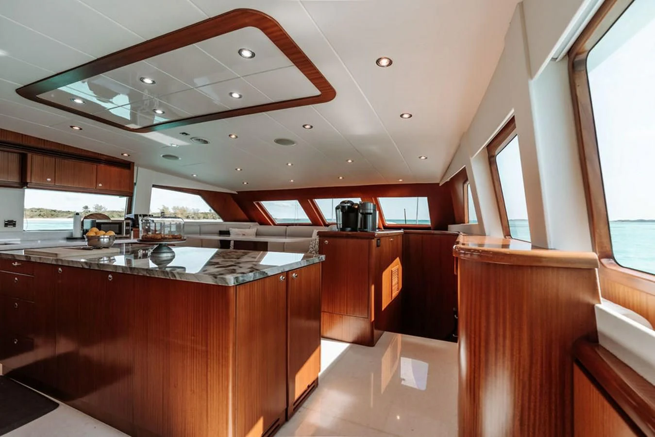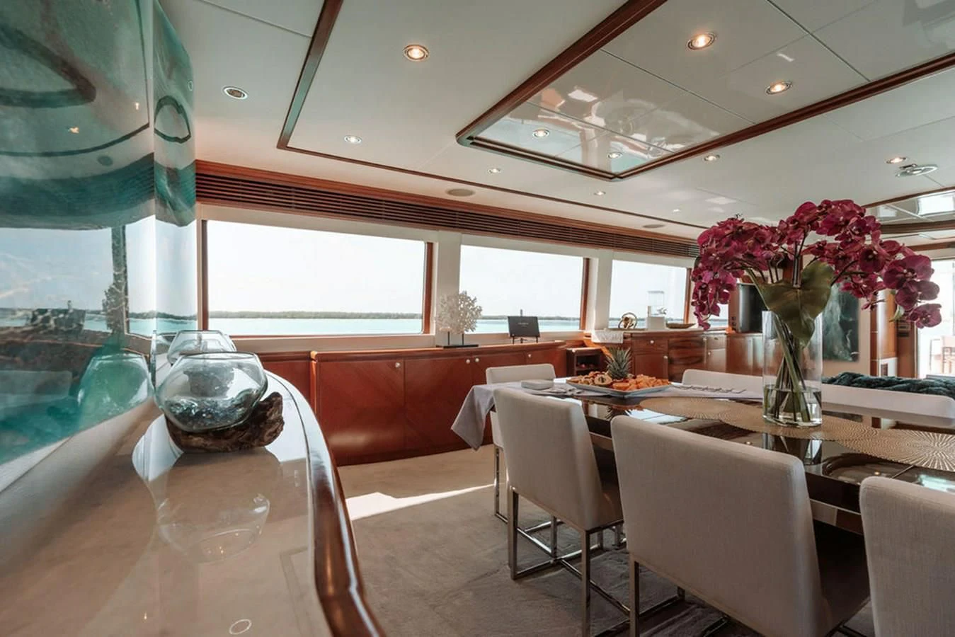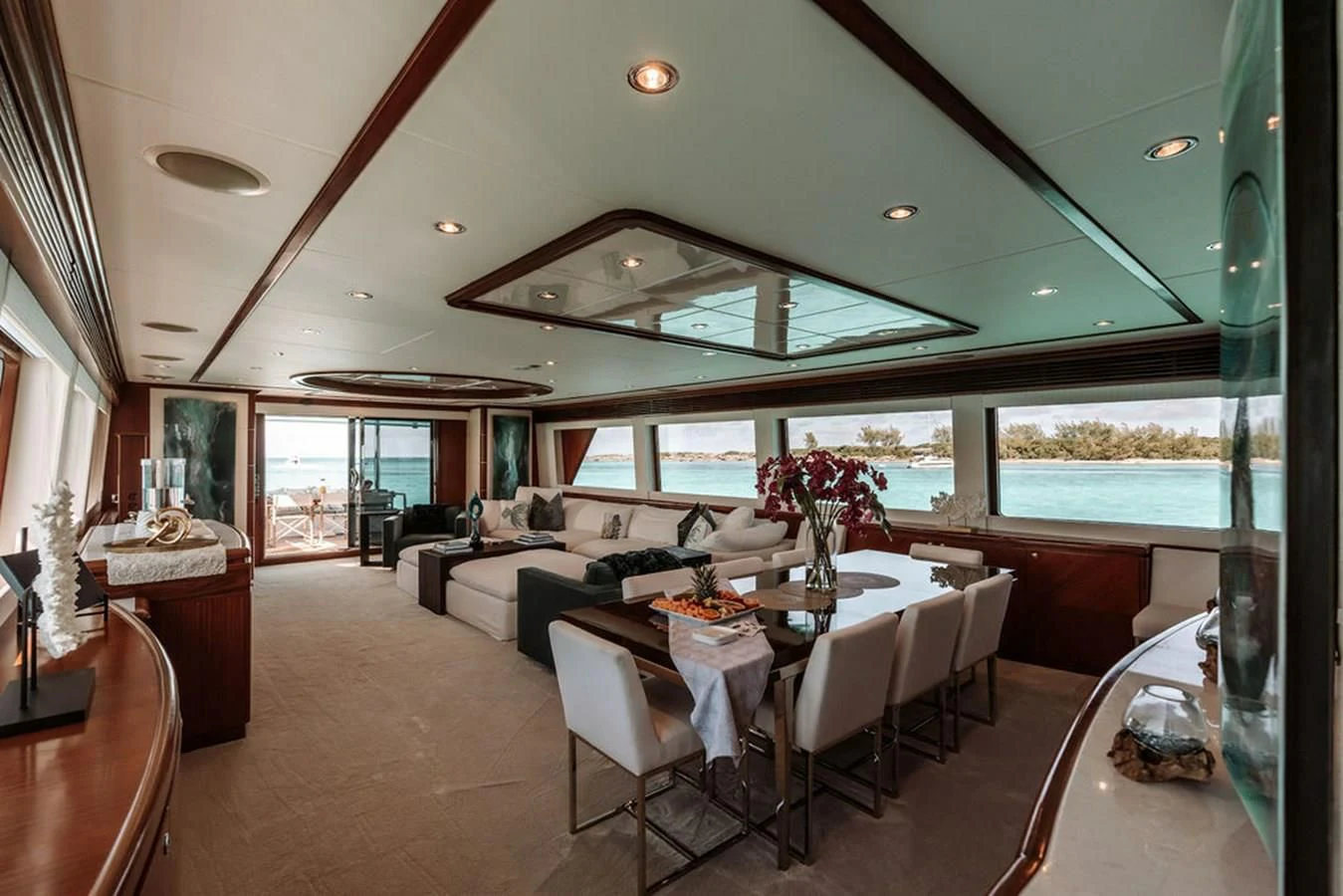 BEACHFRONT’s interior has a contemporary style and well-thought-out layout. She is easily adapted to any situation. She features a high-tech home theater with more than 500 HD movies and a music library of more than 70,000 songs. Airplay broadcast is available throughout the yacht with ability to play music through speakers almost anywhere. BEACHFRONT has five lavish staterooms, catering to up to 10 guests. Her full-beam master has double walk-in closest and a lounge. Four additional staterooms, including a VIP forward all have en-suite bathrooms. A guest common area is located forward.