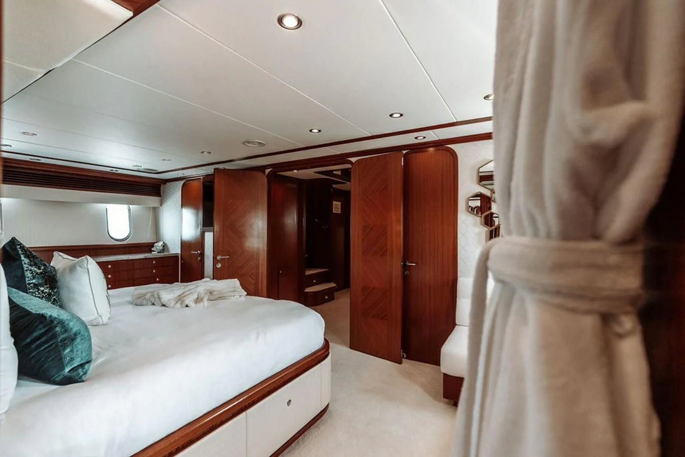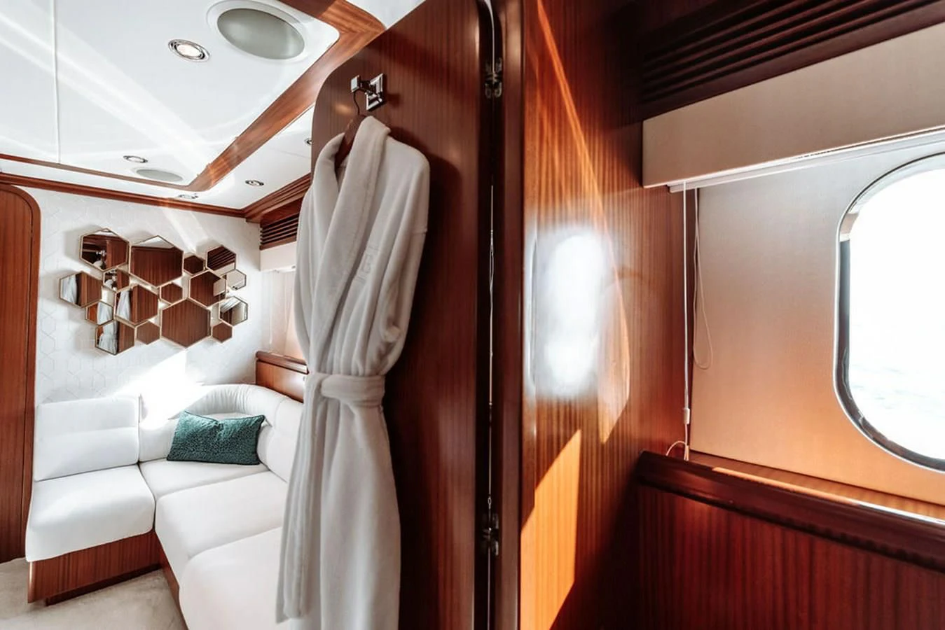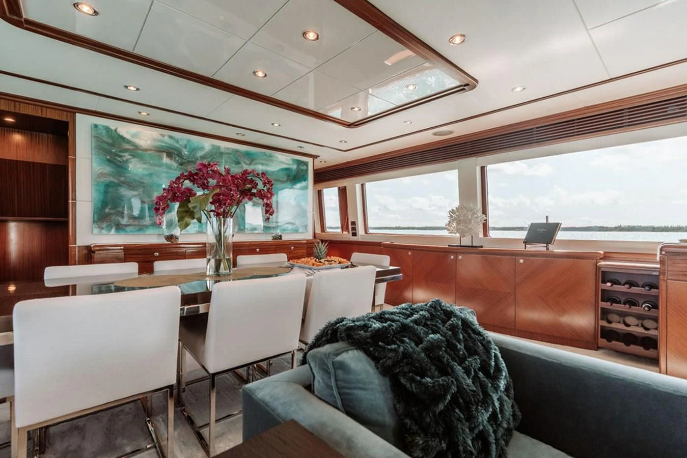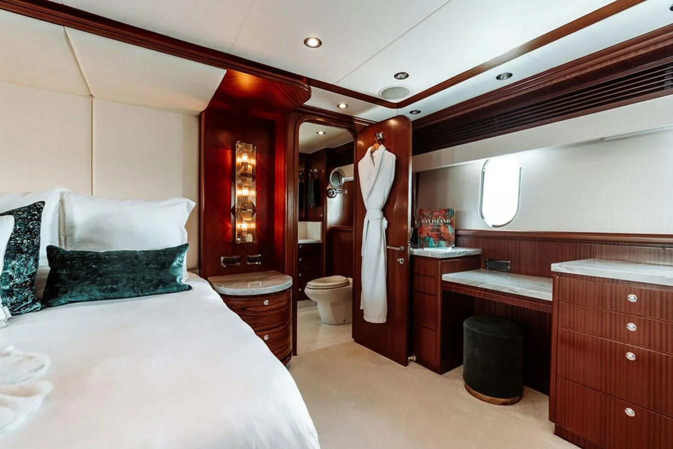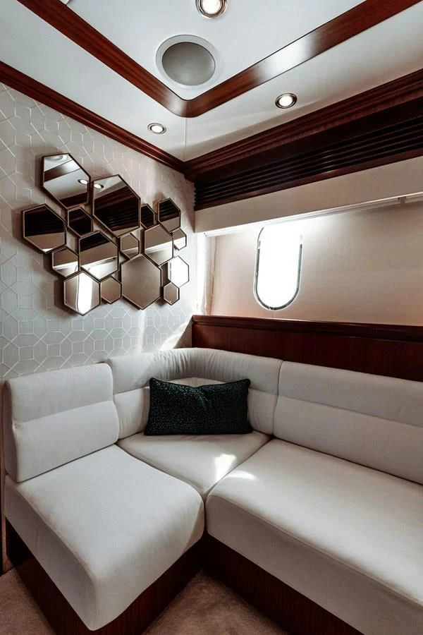 BEACHFRONT’s interior has a contemporary style and well-thought-out layout. She is easily adapted to any situation. She features a high-tech home theater with more than 500 HD movies and a music library of more than 70,000 songs. Airplay broadcast is available throughout the yacht with ability to play music through speakers almost anywhere. BEACHFRONT has five lavish staterooms, catering to up to 10 guests. Her full-beam master has double walk-in closest and a lounge. Four additional staterooms, including a VIP forward all have en-suite bathrooms. A guest common area is located forward.
