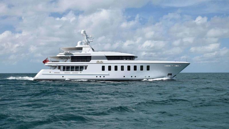 Luxury charter yacht BELLA features an aluminum superstructure and steel hull. This pedigreed yacht is seaworthy and well designed, featuring a displacement hull configuration and three teak decks. BELLA is powered by two MTU diesel engines. She has a nautical mile range of 5,000 at 10 knots, a cruising speed of 12 knots and a maximum speed of 16 knots. This luxury charter yacht features a nine-foot (2.7m) draft. She is a beamy 30 feet wide (9.2m) and has a gross tonnage of 499.