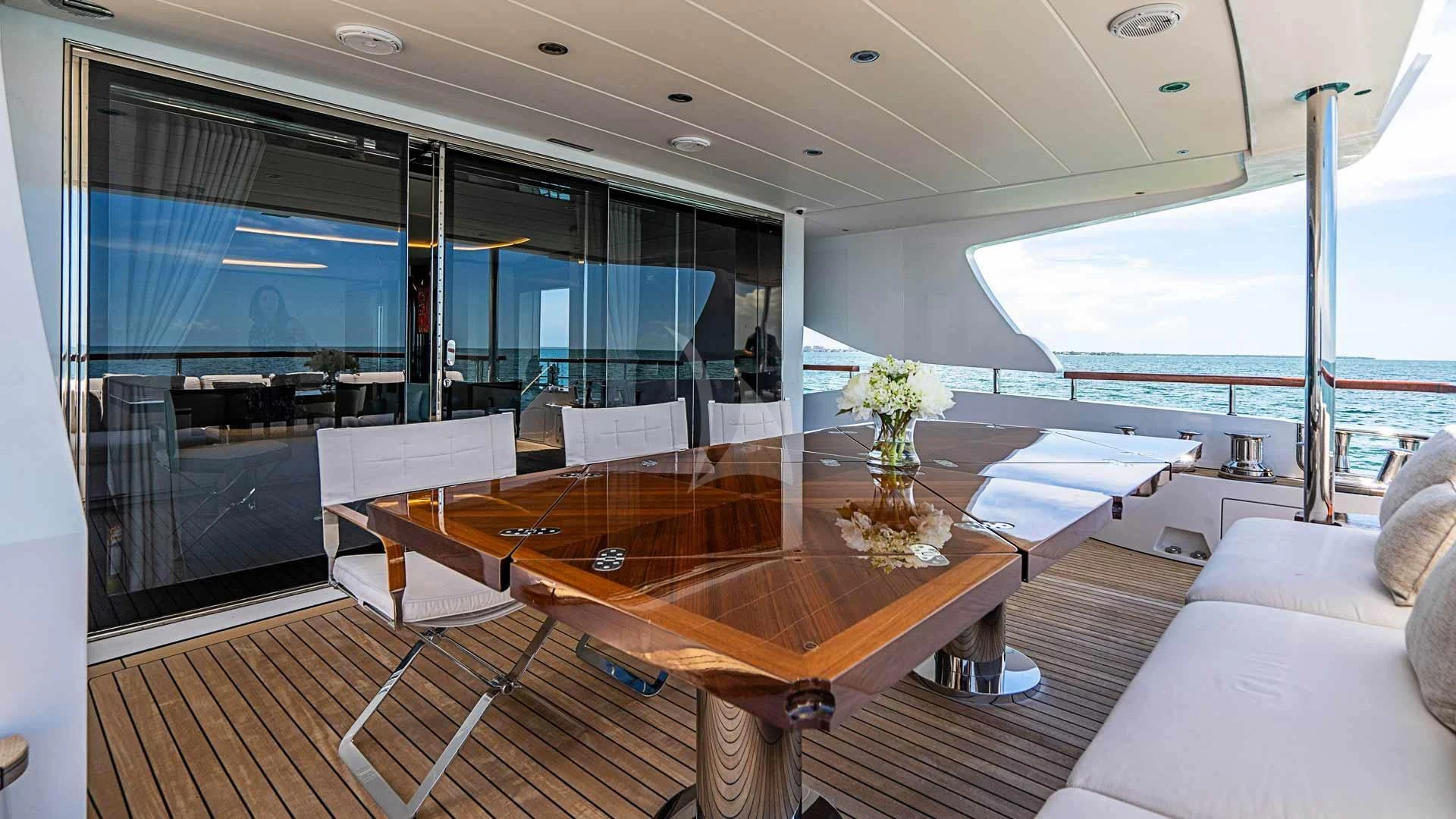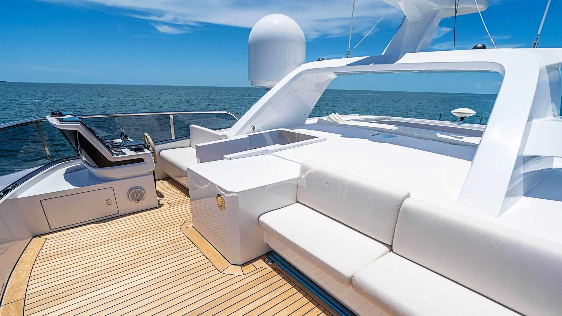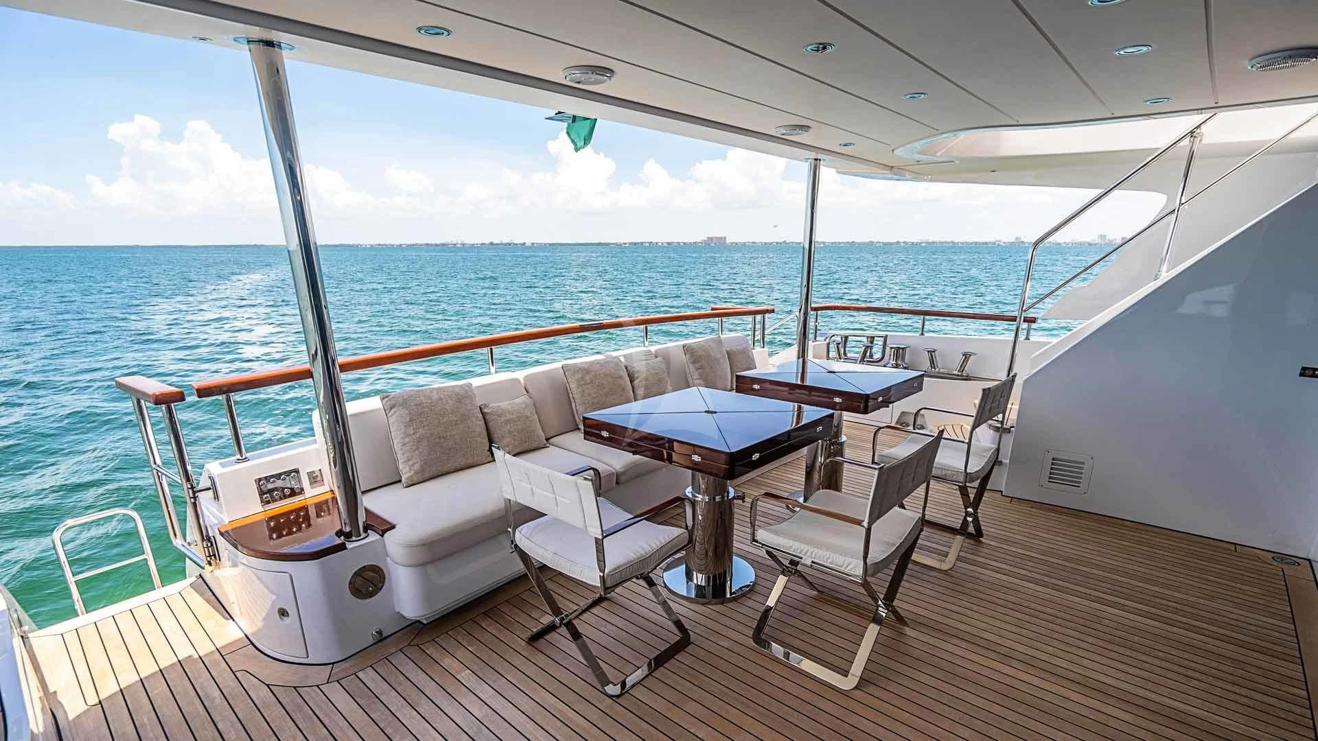 With her striking exterior styling and aggressive lines, BELLA VITA is a true head-turner. The yacht boasts a Jacuzzi on the foredeck, inviting guests to indulge in relaxation while enjoying panoramic views of the surrounding seas. Whether sunbathing on the sundeck or sipping refreshing drinks at the bar, guests will find ample opportunities to bask in the sun and savor the yacht's expansive exterior spaces.