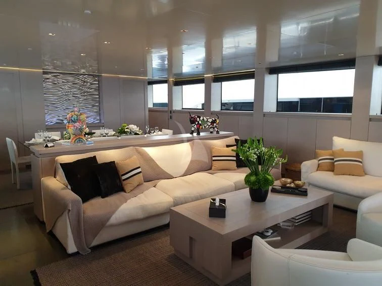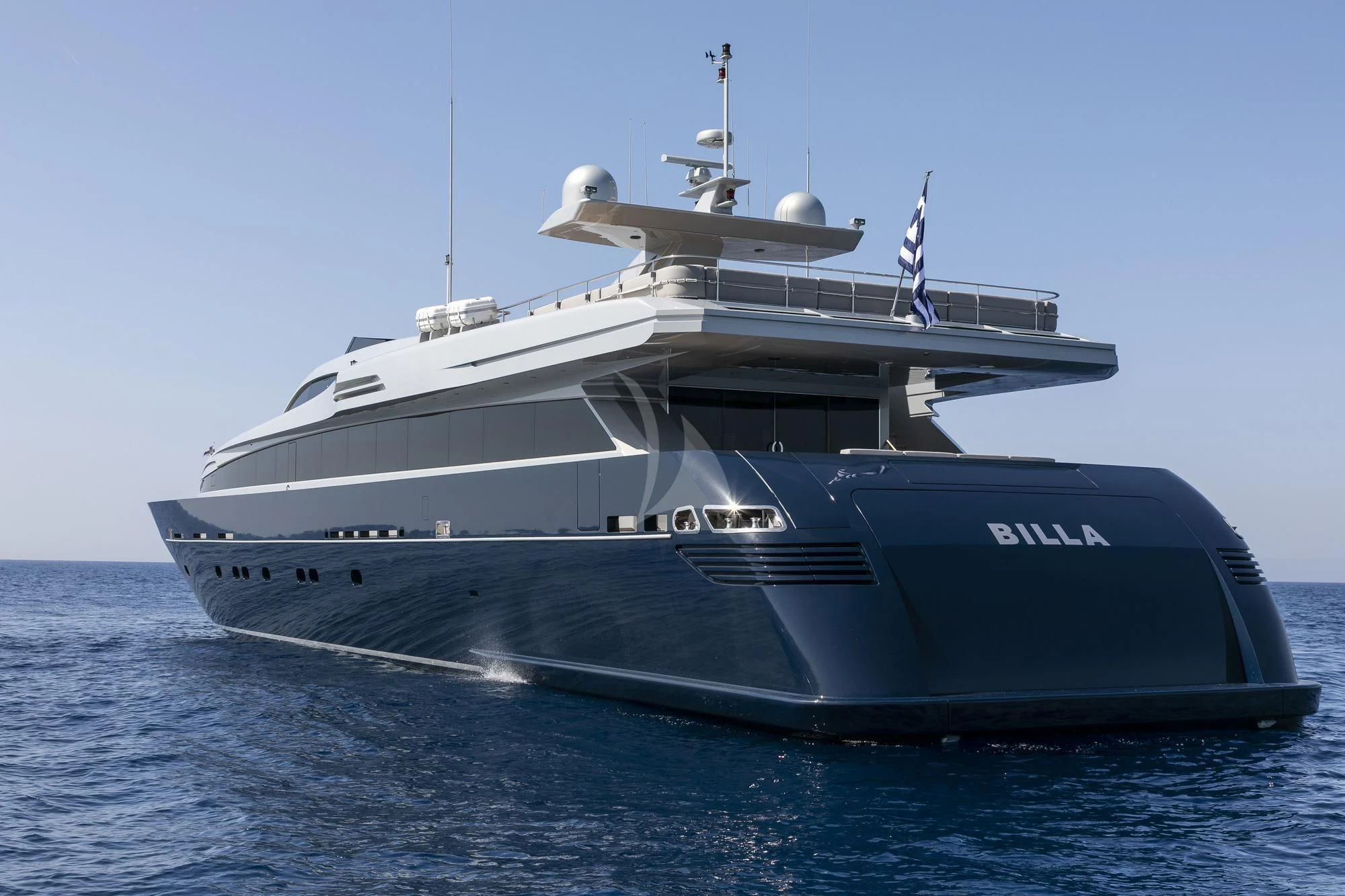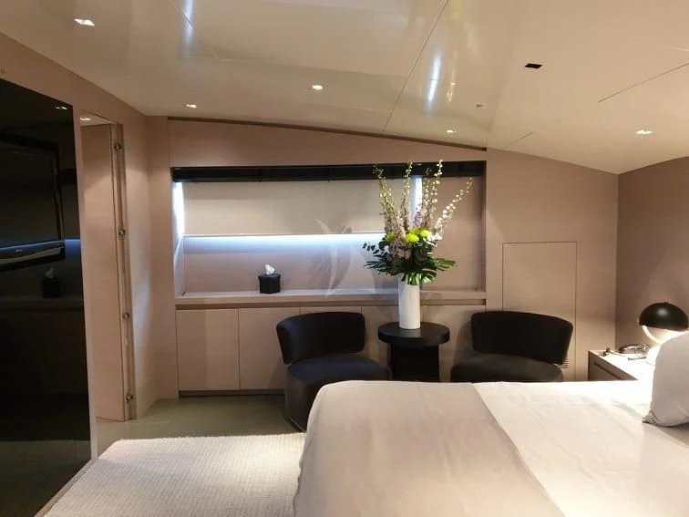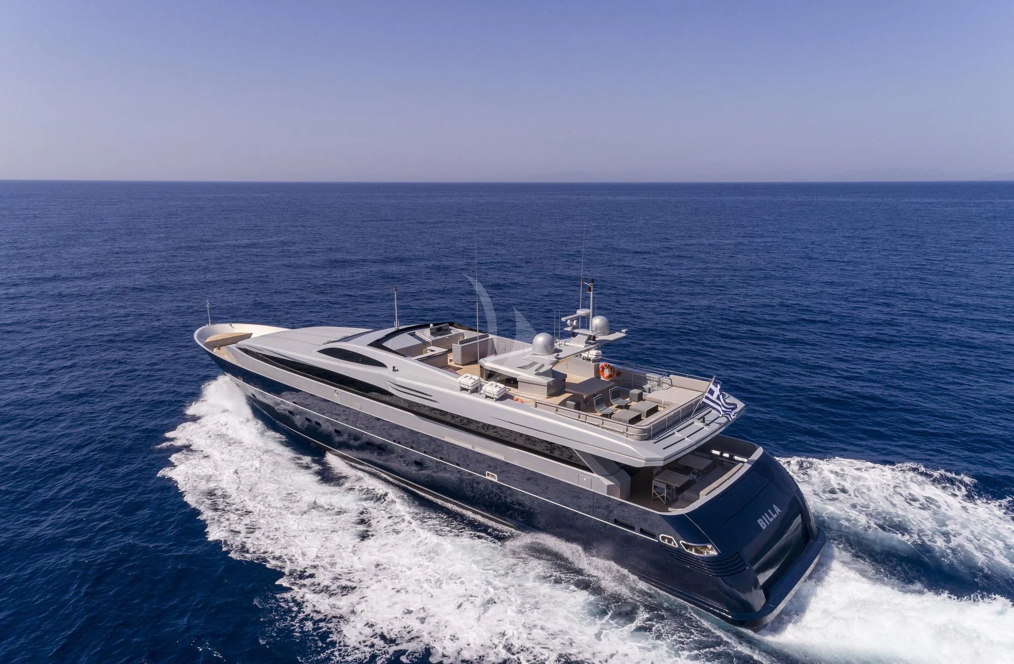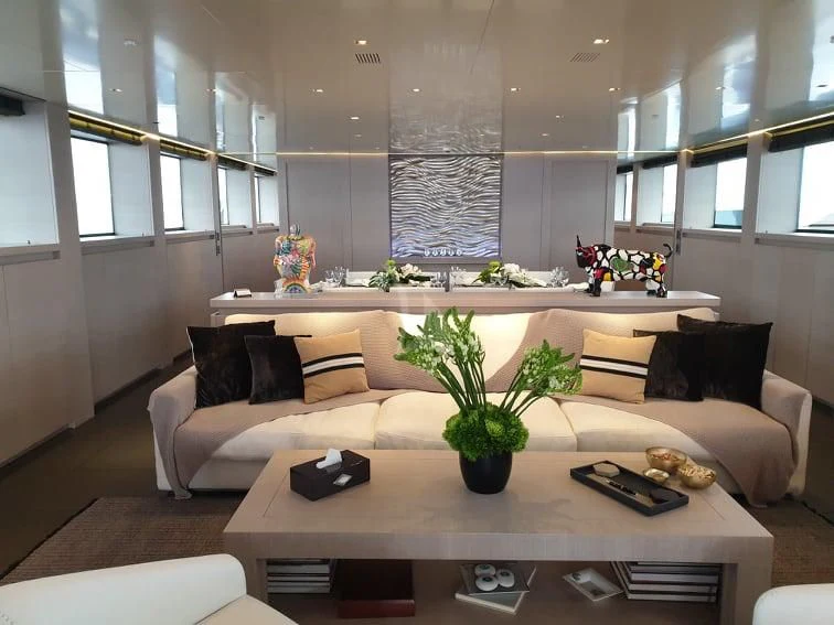 BILLA is known for her great performance, reaching 27 knots cruising speed and up to 31 knots maximum speed. A refit in 2020 has left this impressive yacht in excellent condition. Among many updates, she received new carpets throughout, new sundeck furniture and new home-entertainment systems. She has a highly modern style in her interior with plenty of stylish features. The main deck has an impressive salon and dining area as well as the master stateroom, forward. The rest of the charter party sleeps on the lower deck where two VIP staterooms and two twins take the total guest complement to 11.