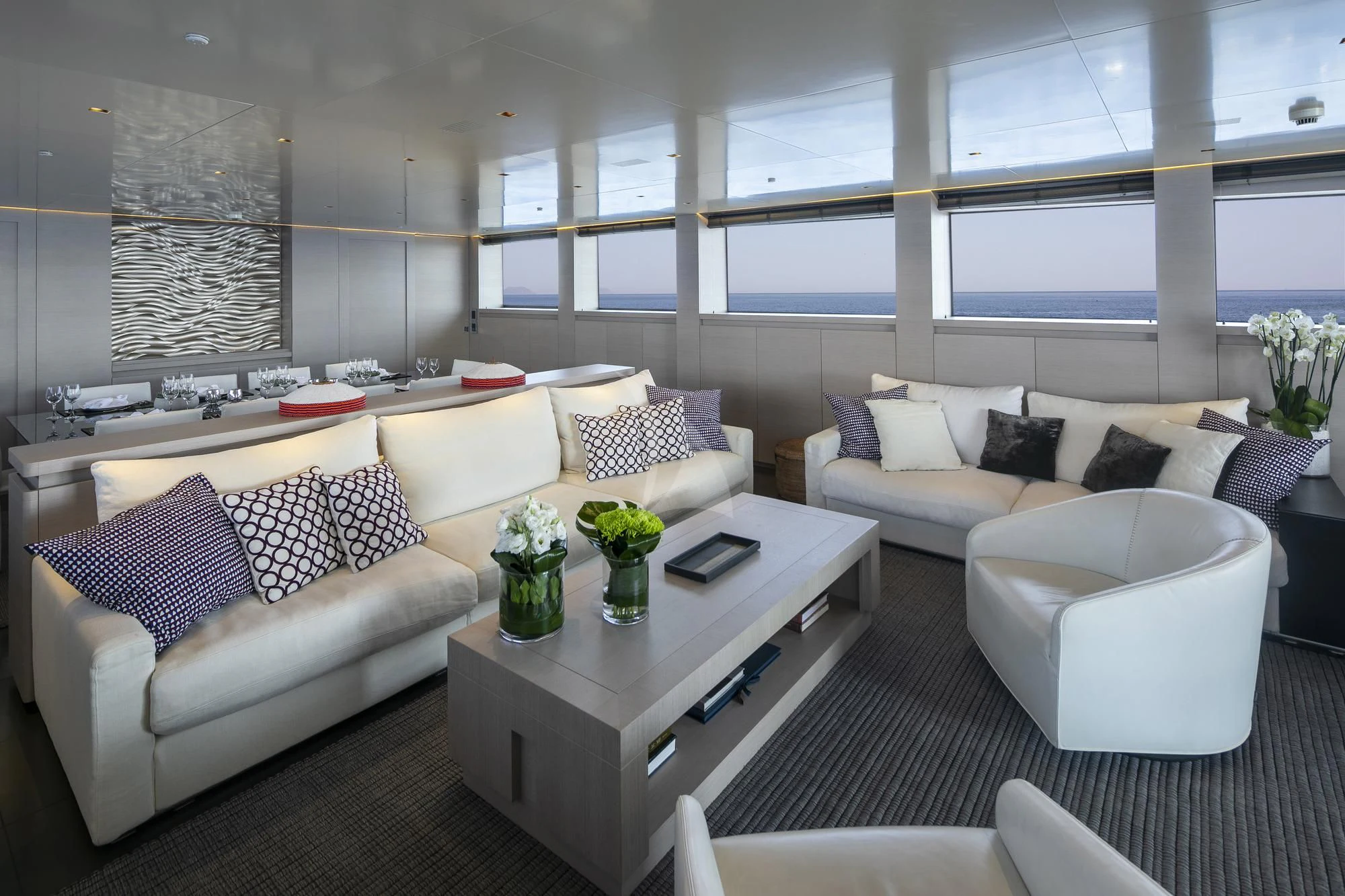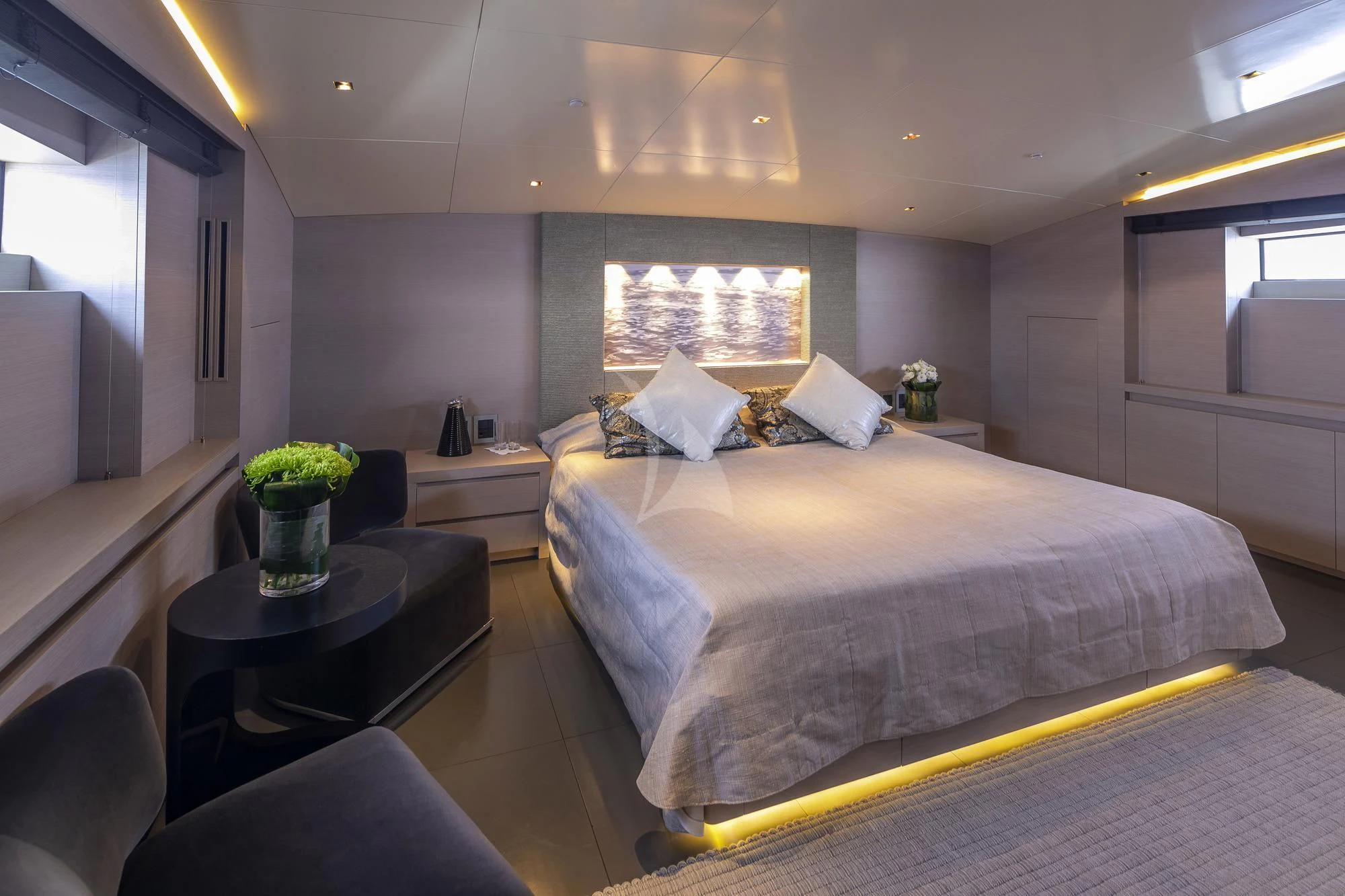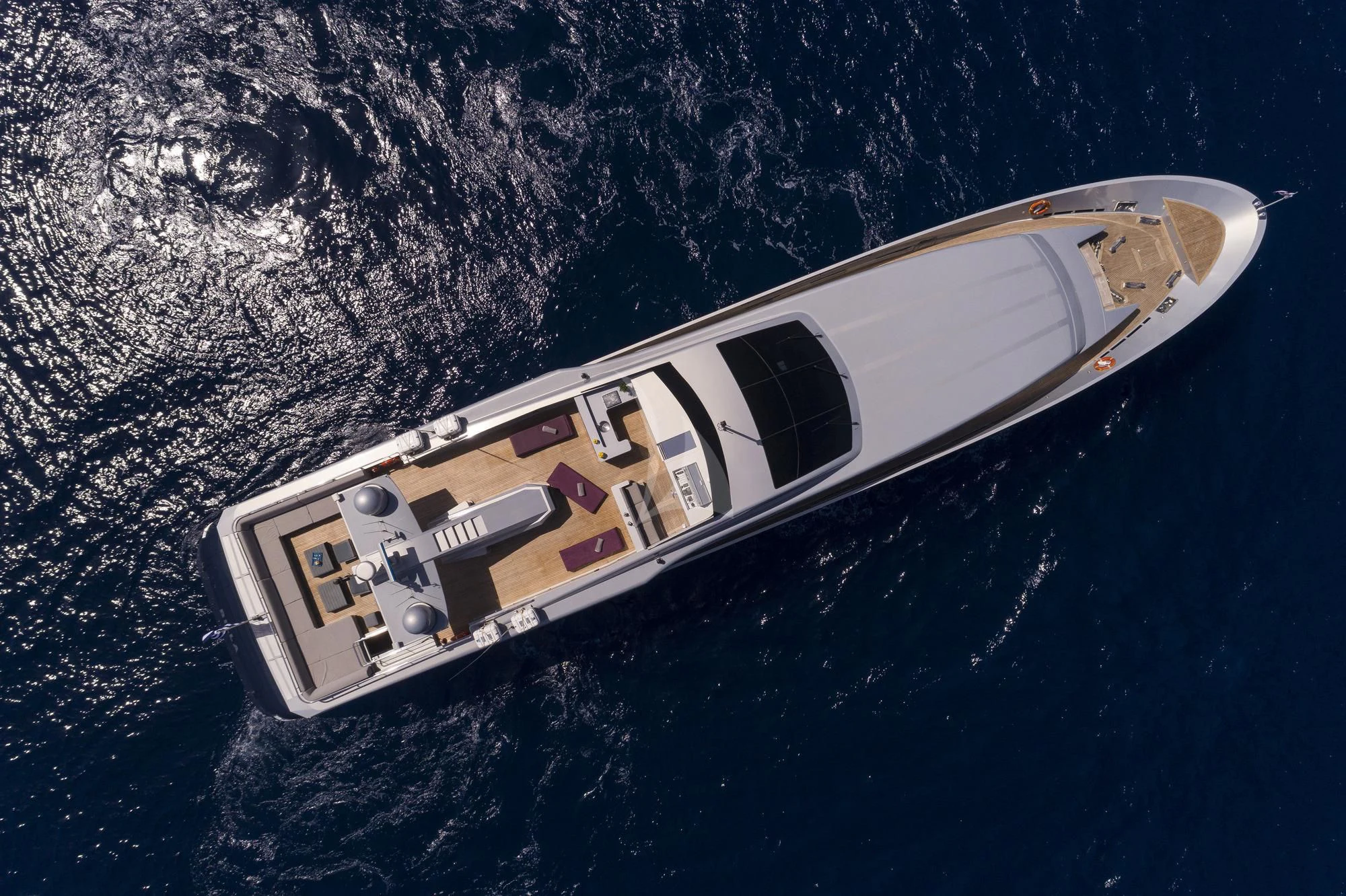 BILLA is known for her great performance, reaching 27 knots cruising speed and up to 31 knots maximum speed. A refit in 2020 has left this impressive yacht in excellent condition. Among many updates, she received new carpets throughout, new sundeck furniture and new home-entertainment systems. She has a highly modern style in her interior with plenty of stylish features. The main deck has an impressive salon and dining area as well as the master stateroom, forward. The rest of the charter party sleeps on the lower deck where two VIP staterooms and two twins take the total guest complement to 11.