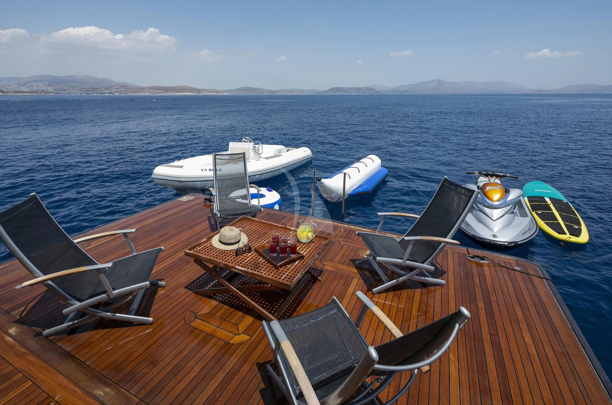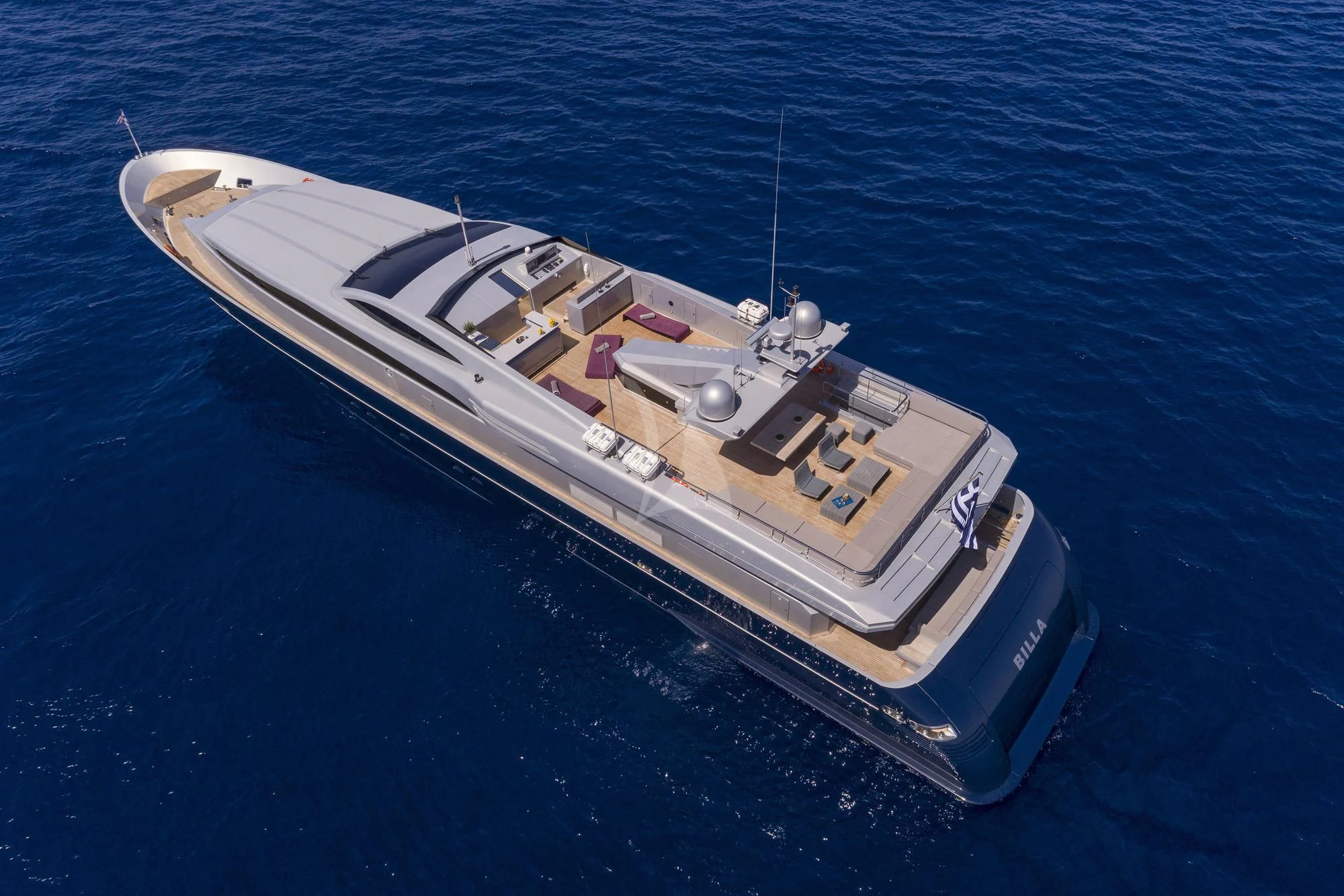 BILLA charters in the East Mediterranean where she offers an impressive range of destinations. As well as the many scenic islands of Greece and the historic coastlines of Turkey, she also cruises to Albania. At each location, her expert captain and crew can steer guests to the finest beaches, best restaurants and most compelling towns and attractions. Returning to the yacht, guests can make full use of the facilities. A selection of watersports equipment includes Sea-Doos, SeaBobs, towables and skis. There is also a tender to transport guests ashore whenever they desire. The spacious decks have plenty of well-designed areas for relaxation, dining and parties.