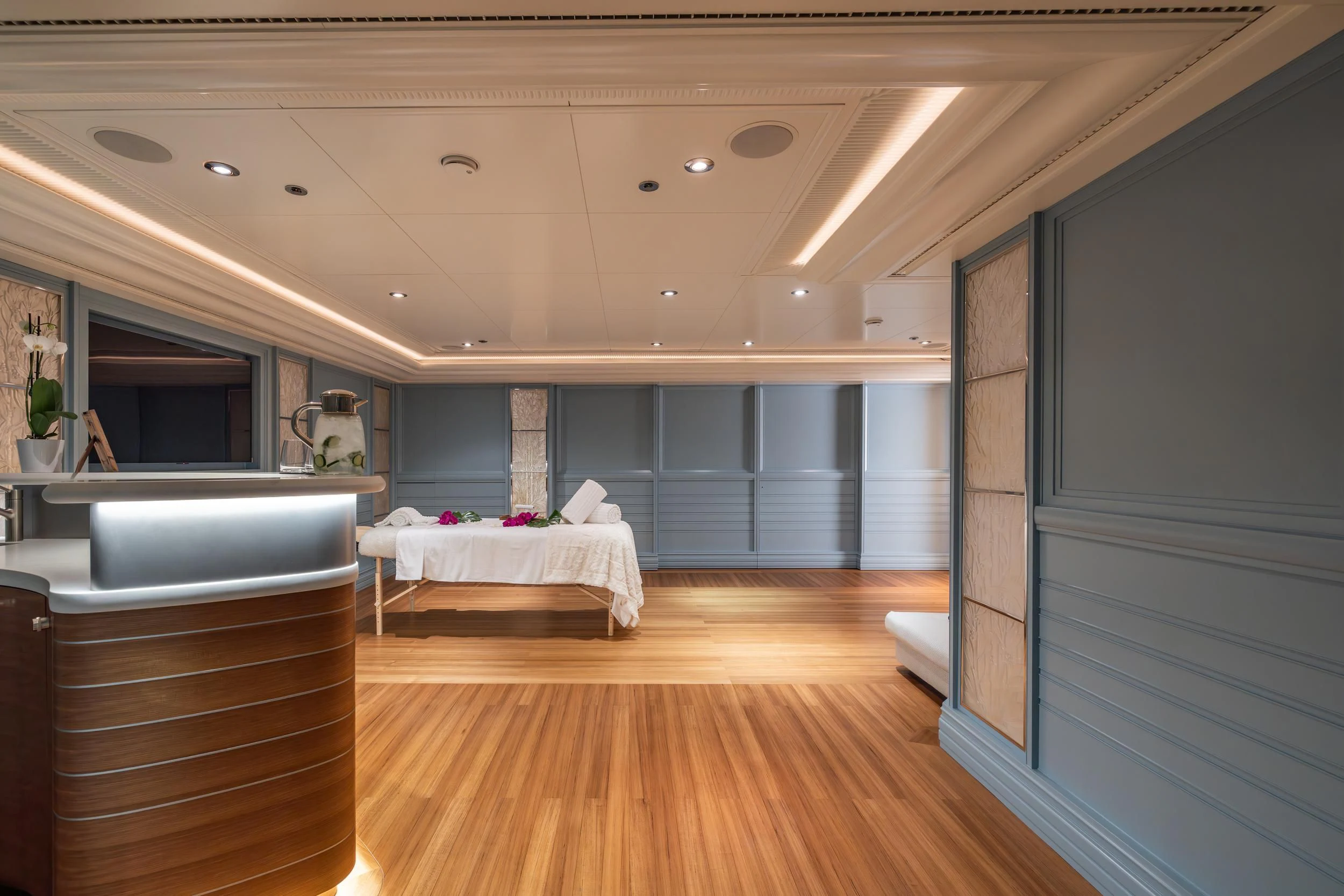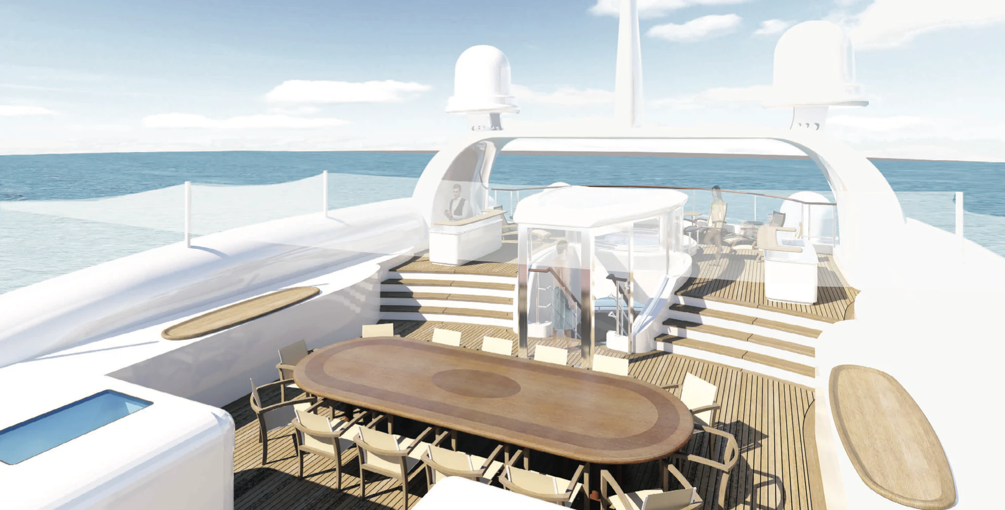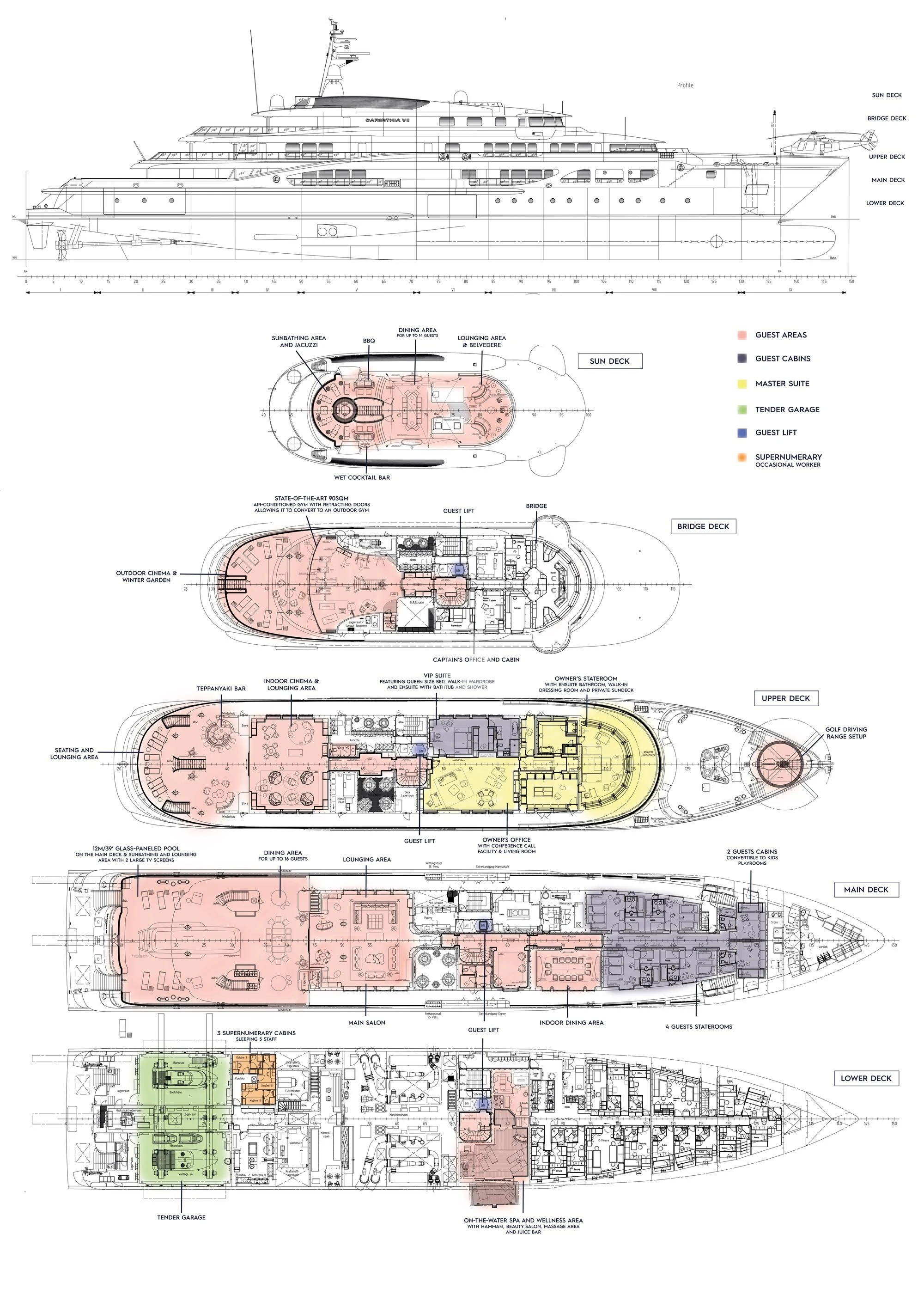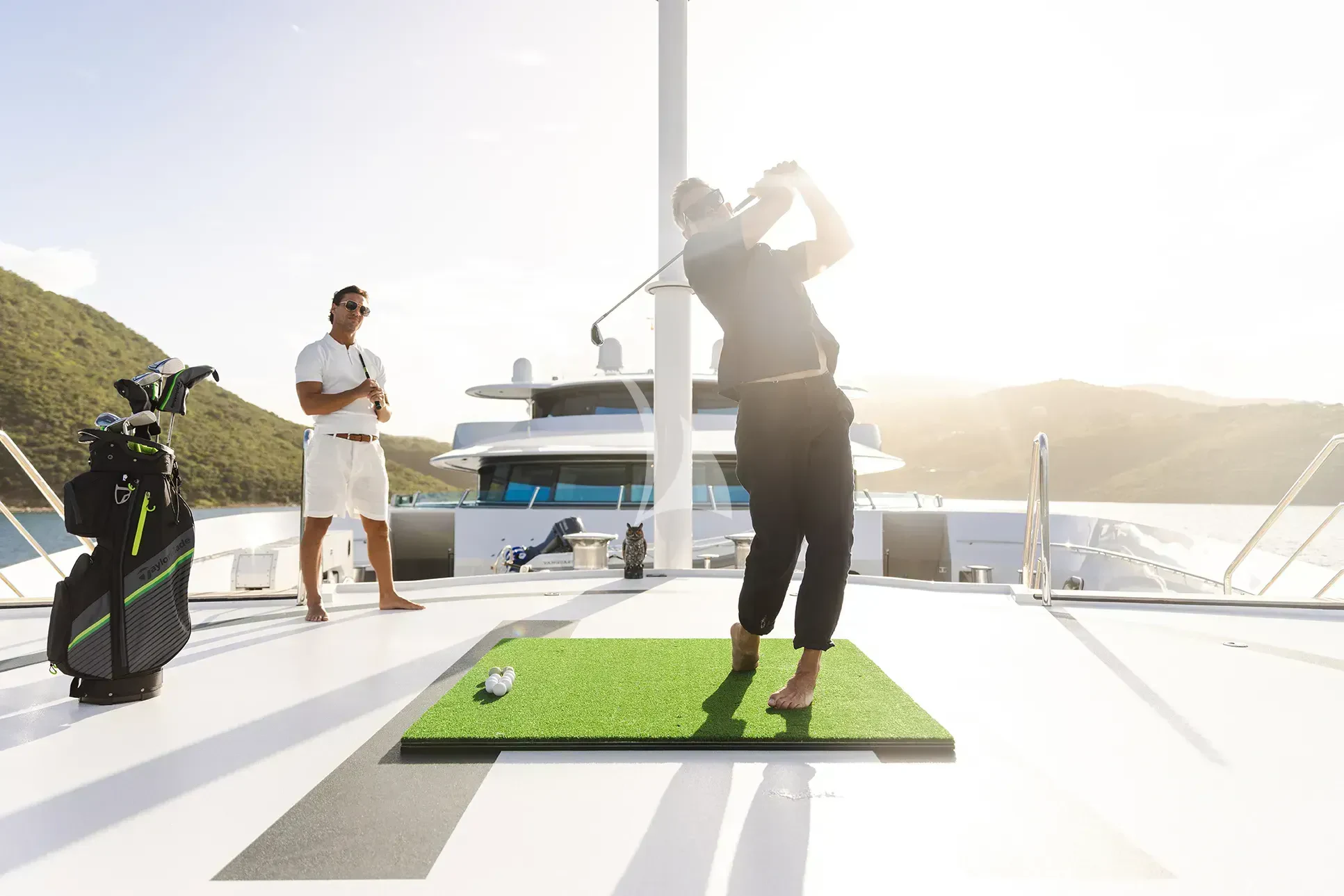 - Golf driving range on the helideck which can also be used as an additional outdoor area for yoga sessions, exercise etc
