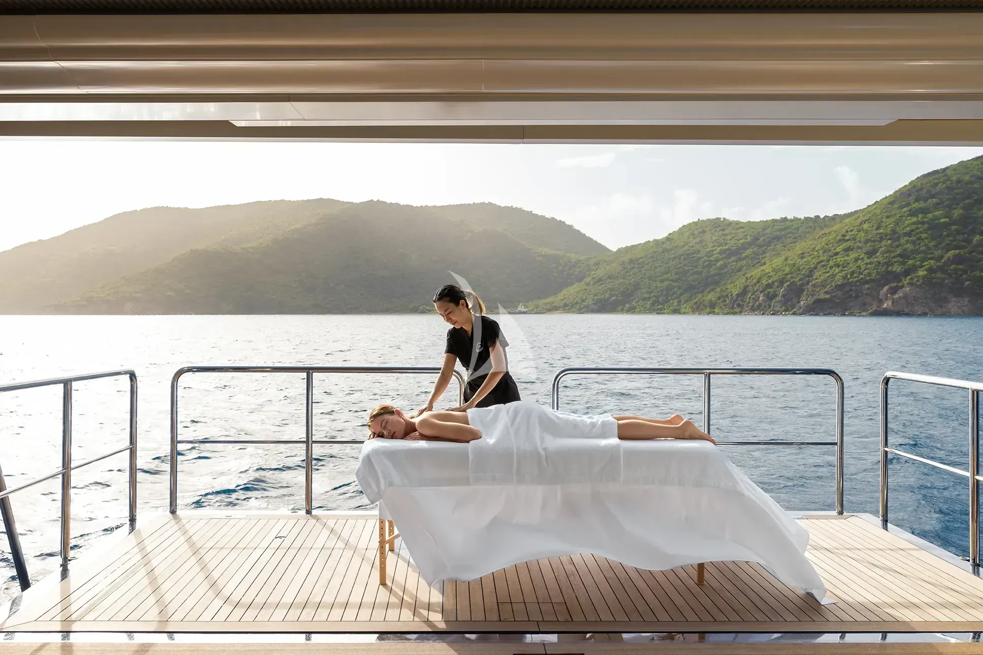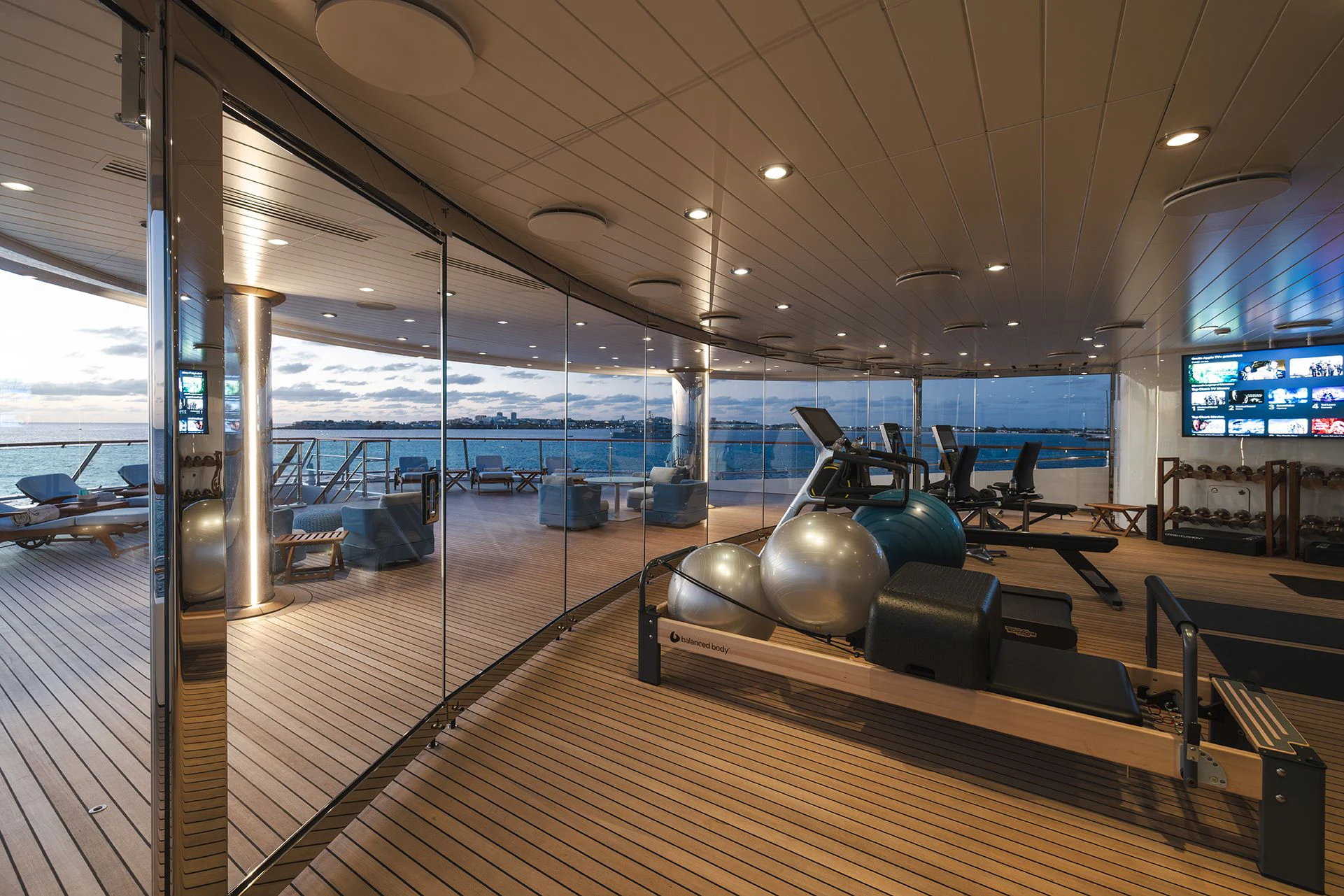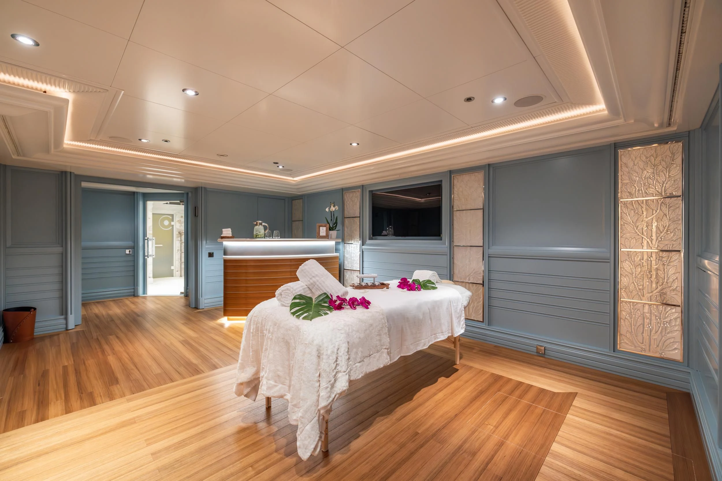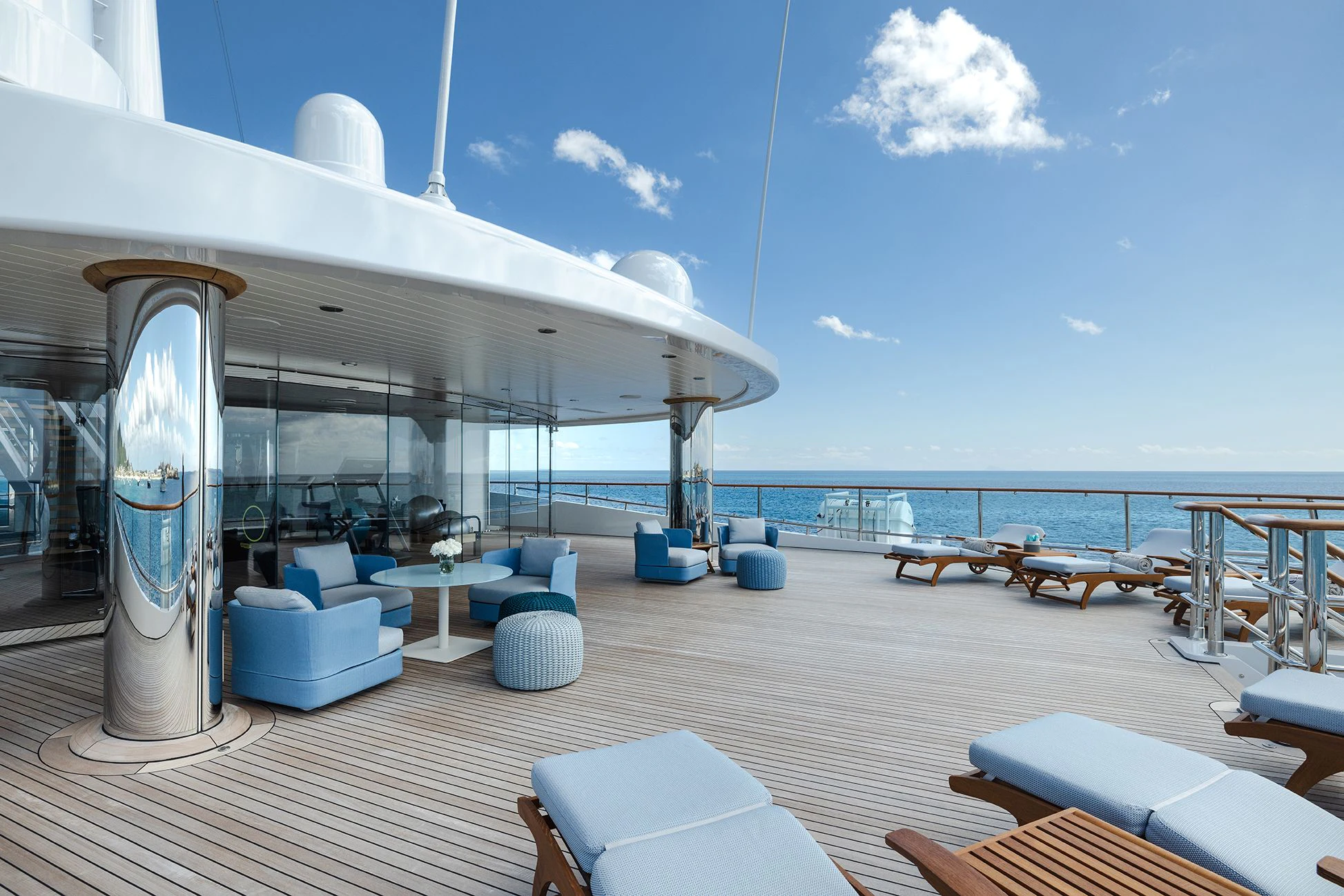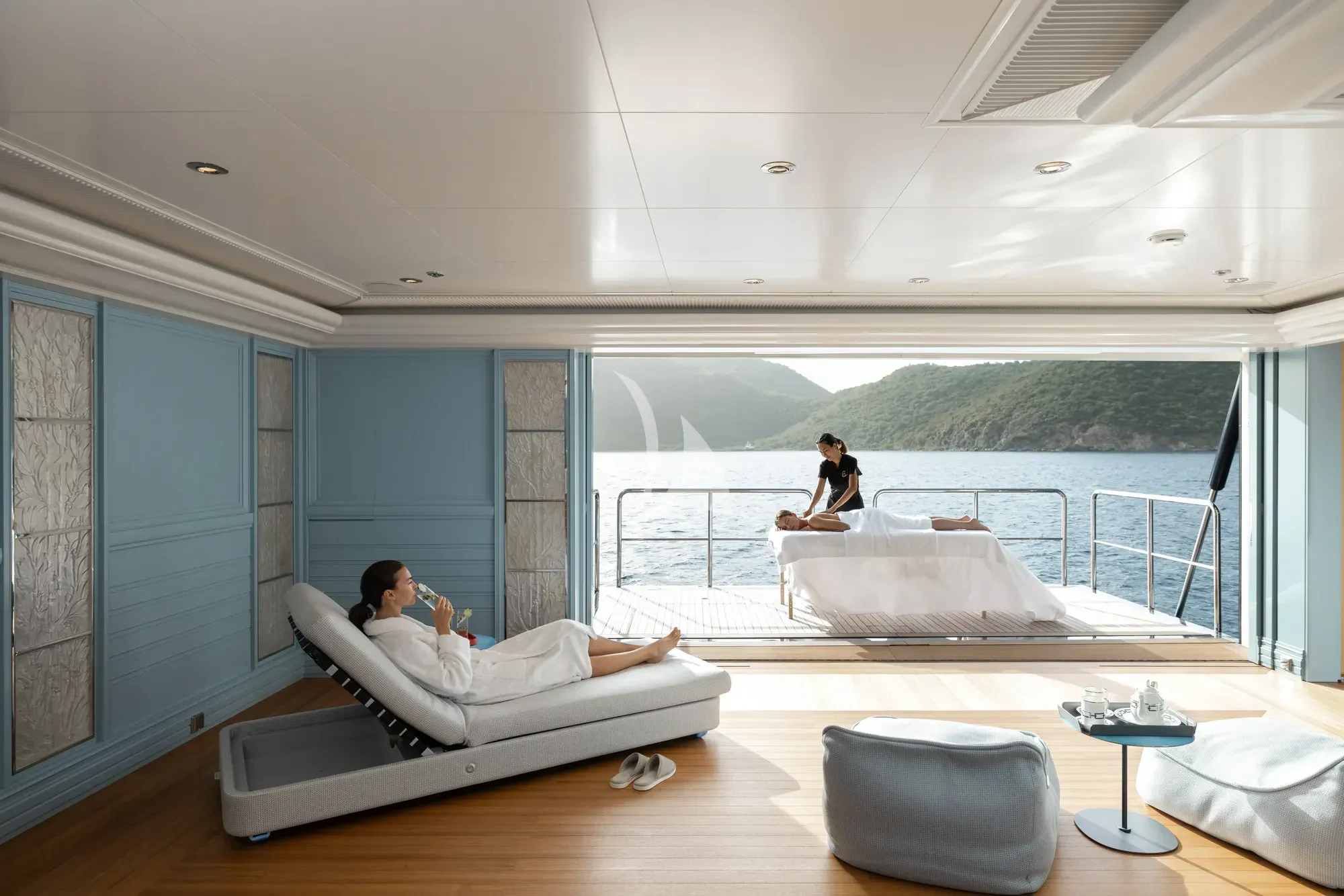 - Golf driving range on the helideck which can also be used as an additional outdoor area for yoga sessions, exercise etc