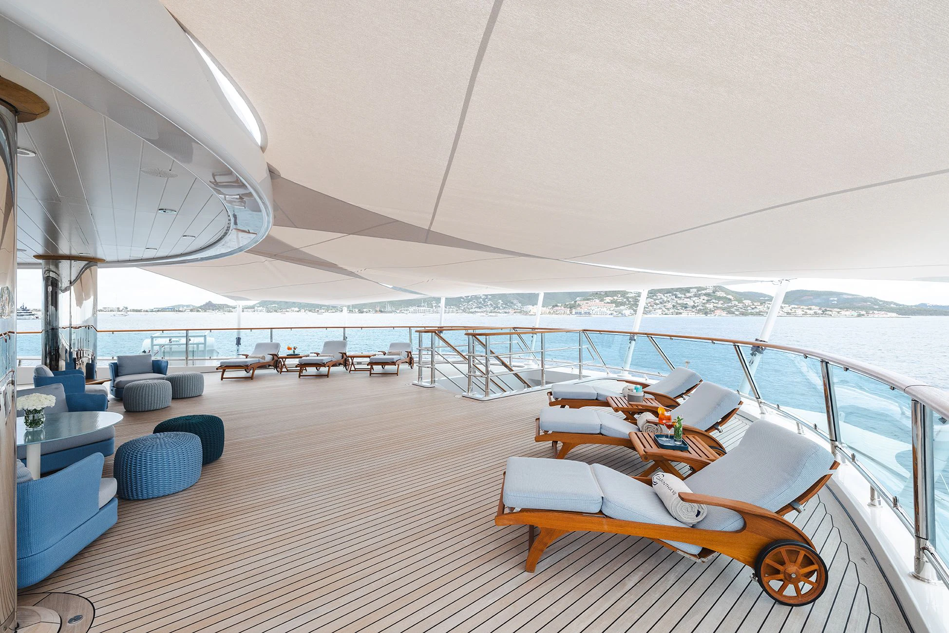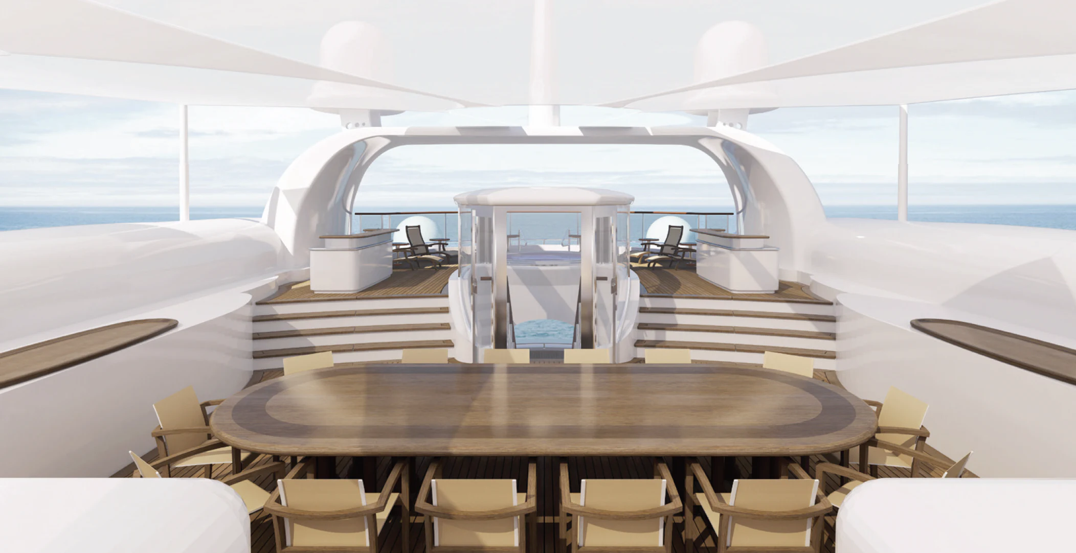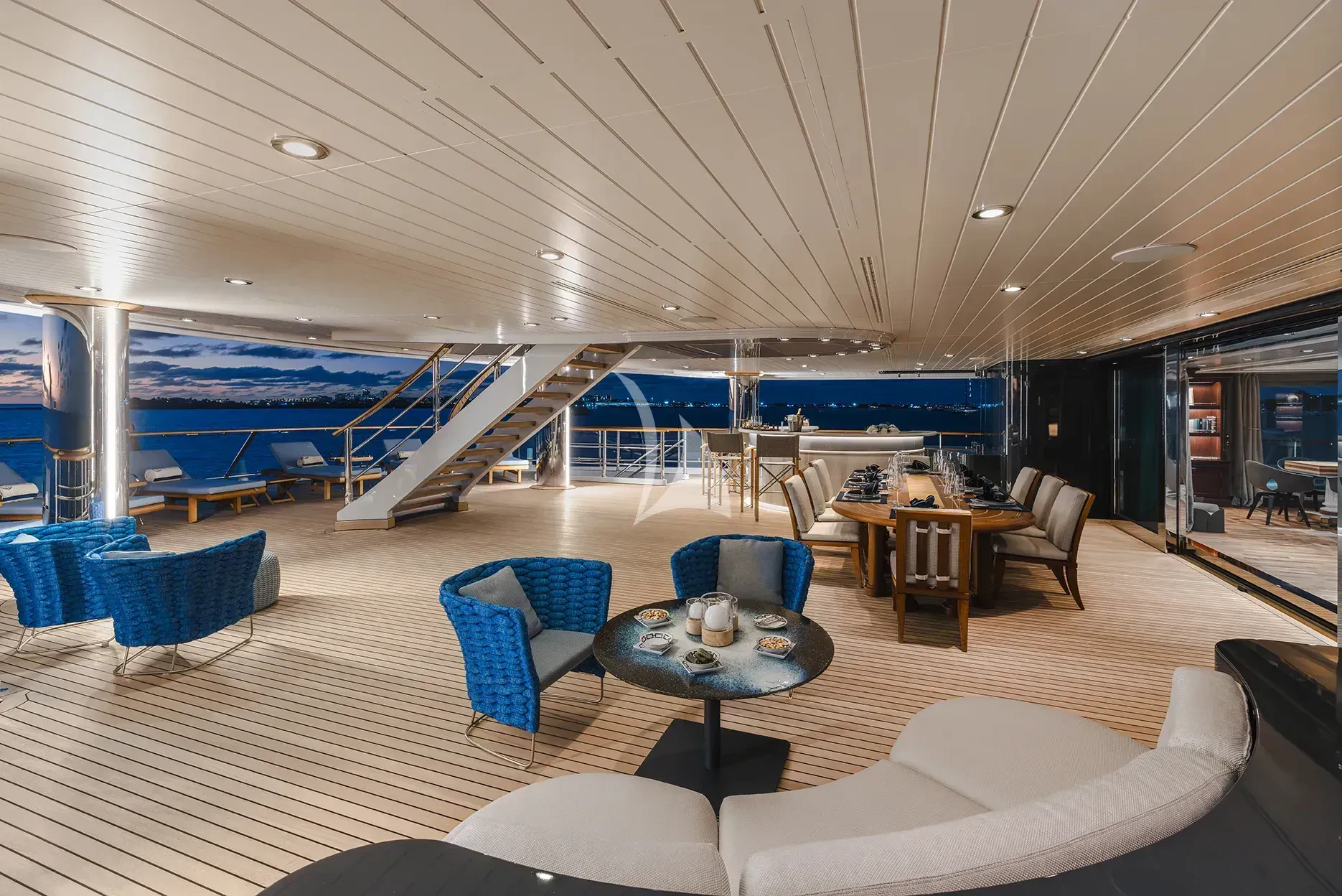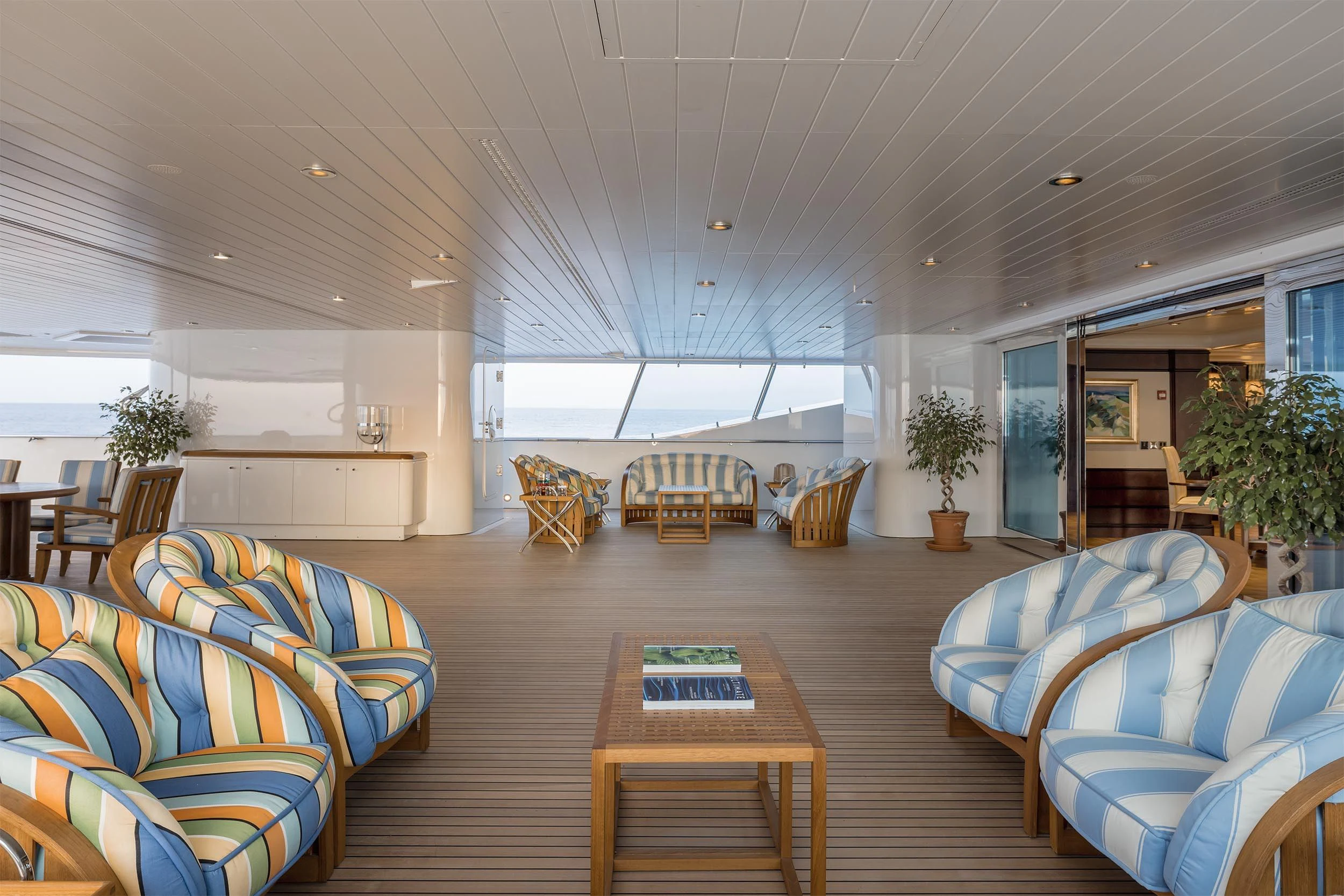- Golf driving range on the helideck which can also be used as an additional outdoor area for yoga sessions, exercise etc