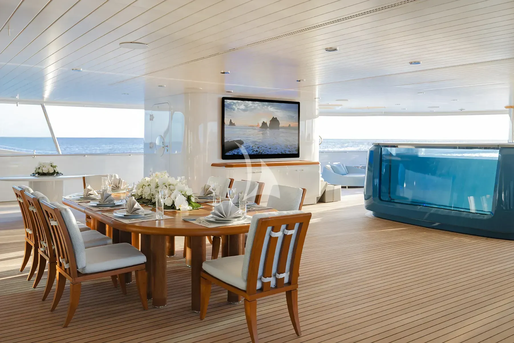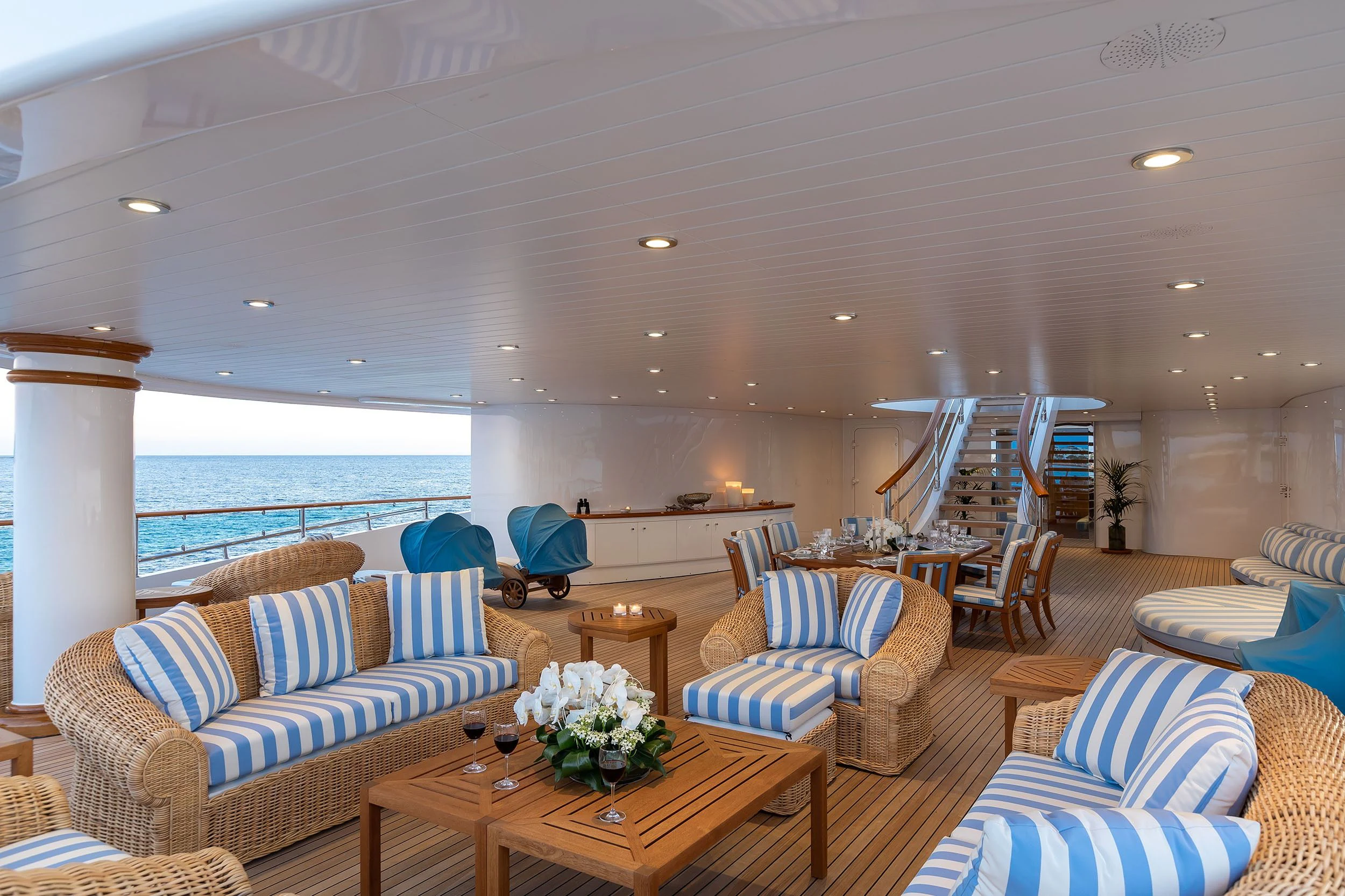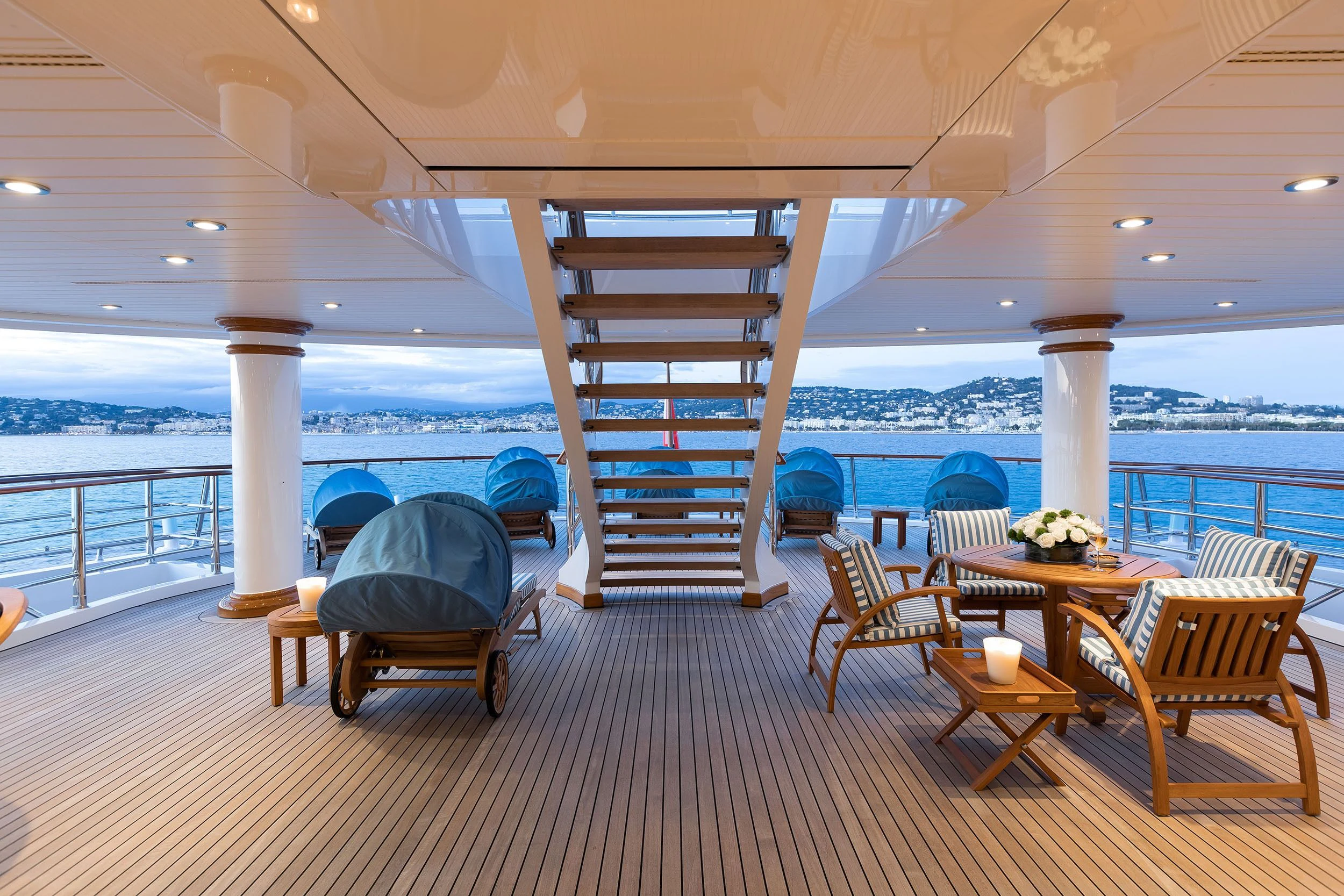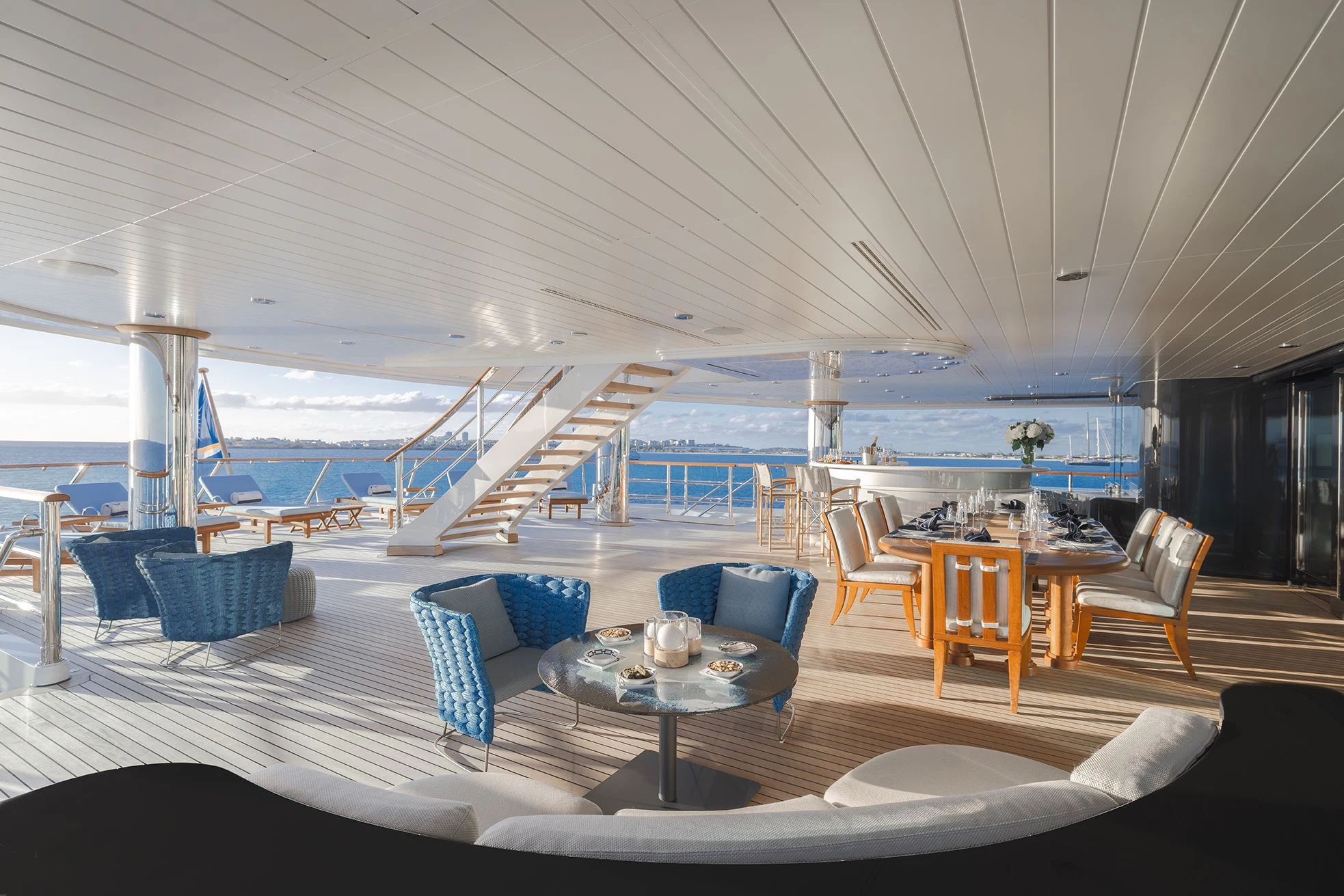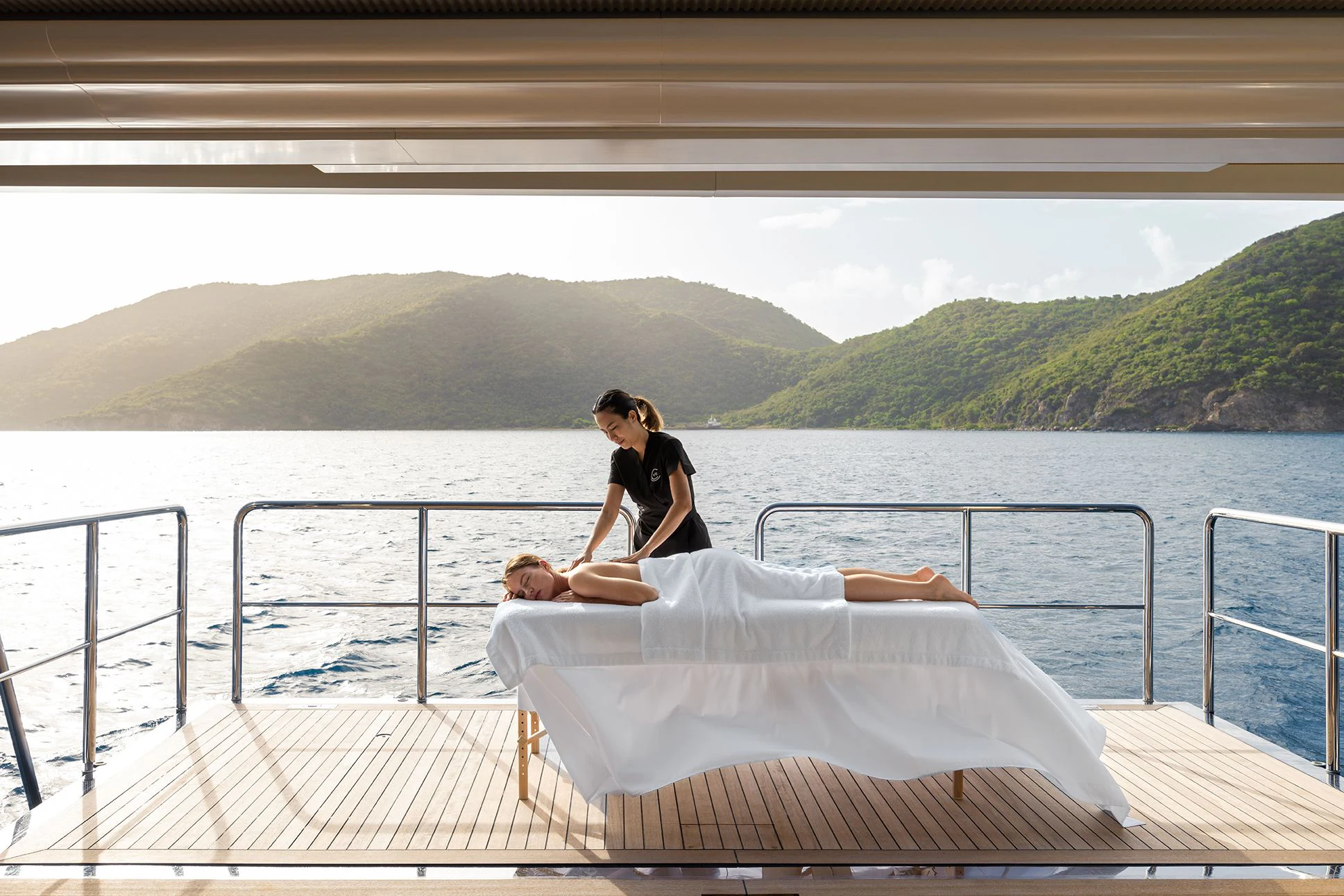 - Golf driving range on the helideck which can also be used as an additional outdoor area for yoga sessions, exercise etc