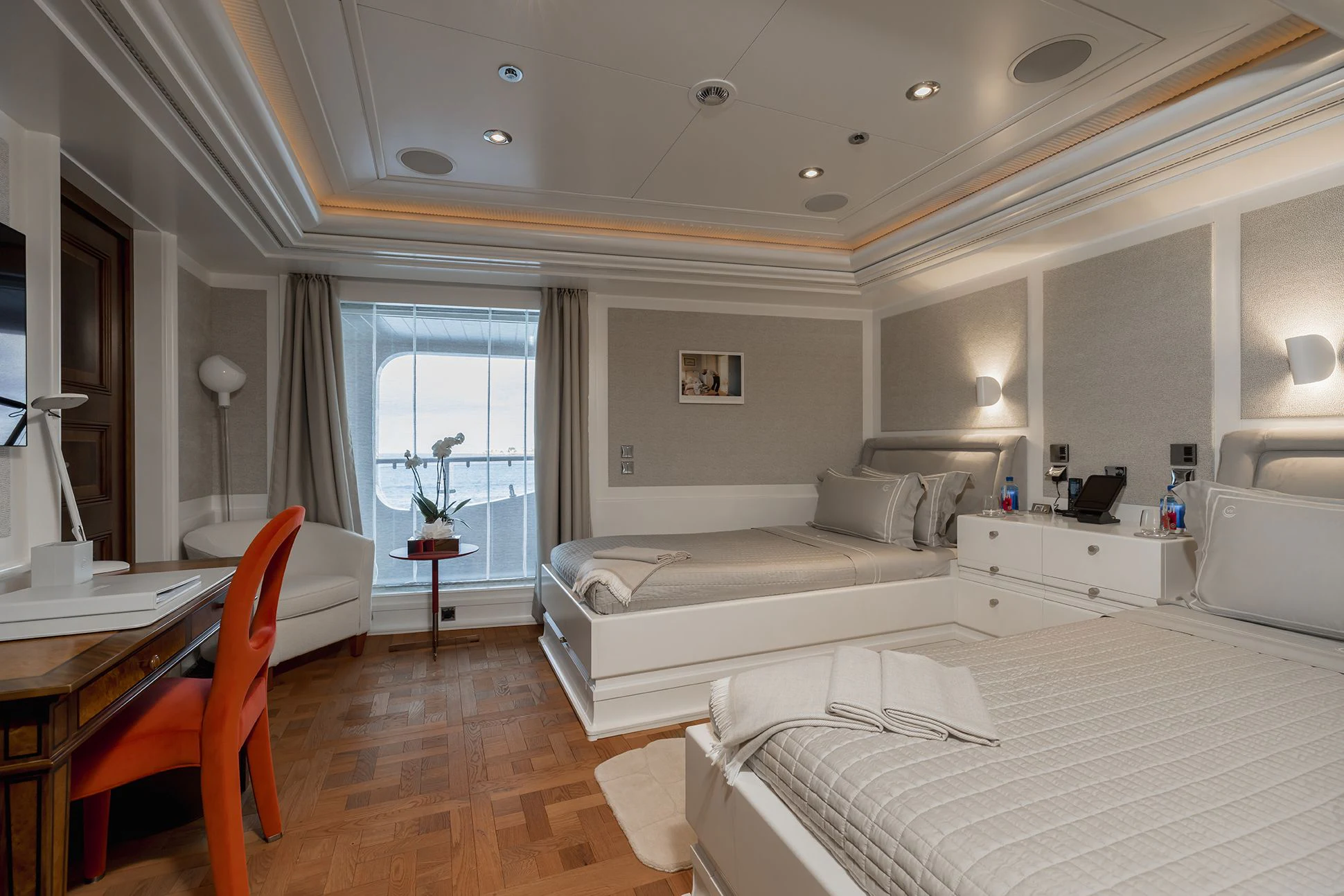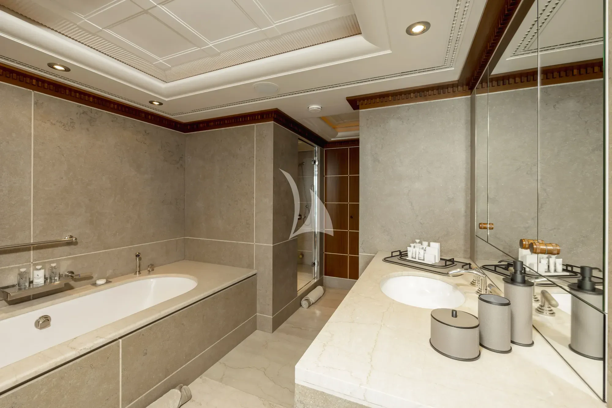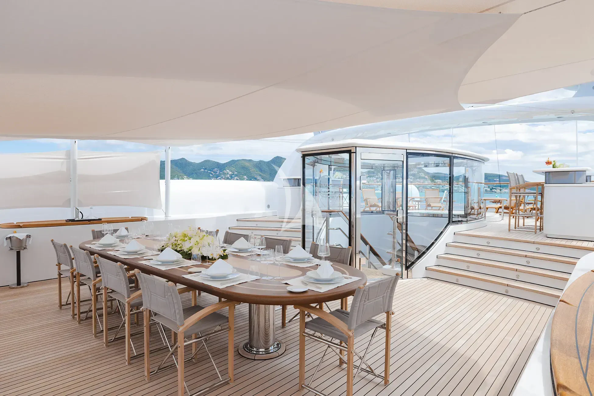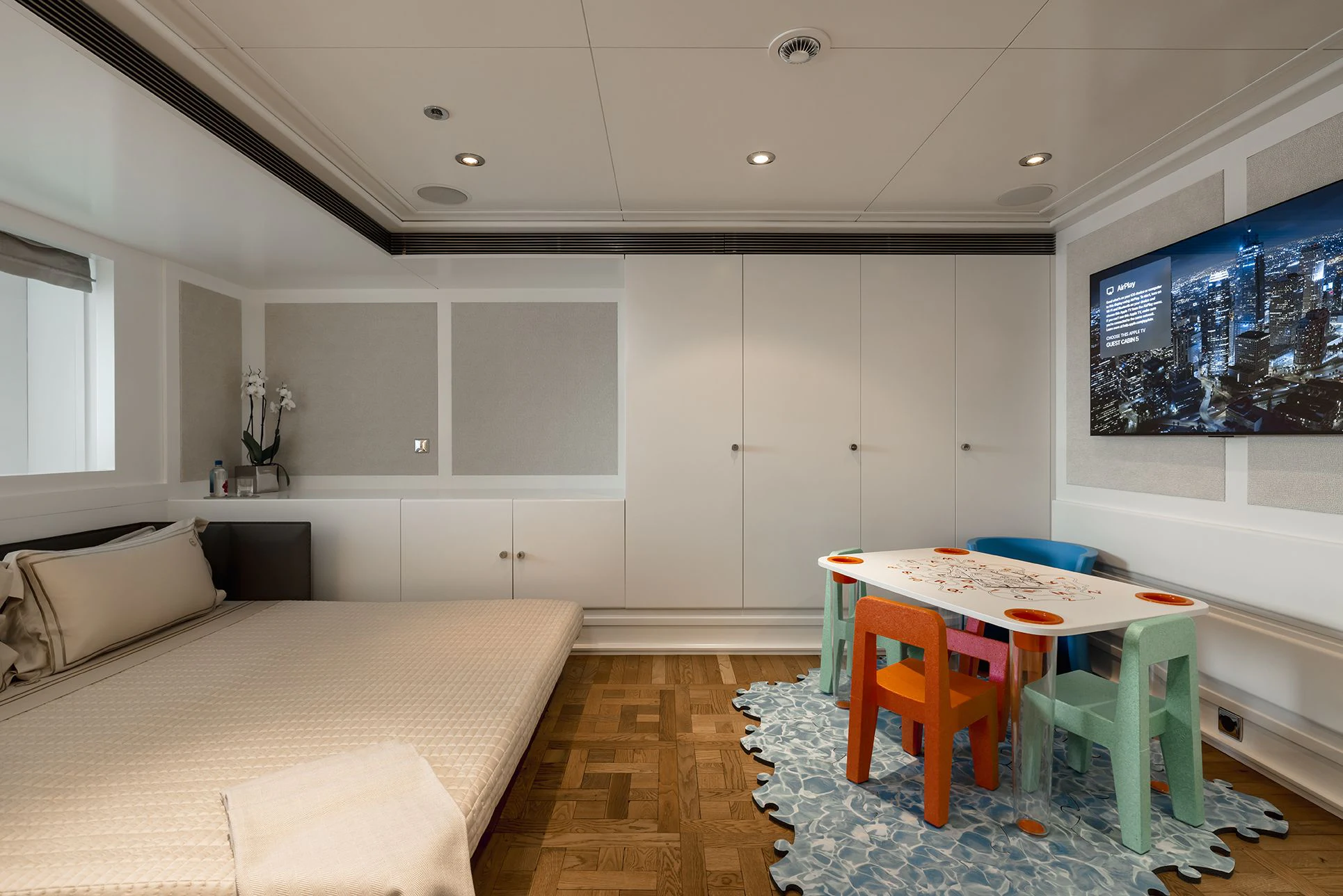 - Golf driving range on the helideck which can also be used as an additional outdoor area for yoga sessions, exercise etc