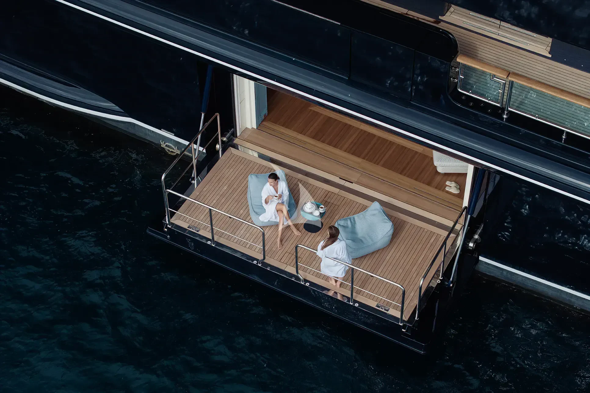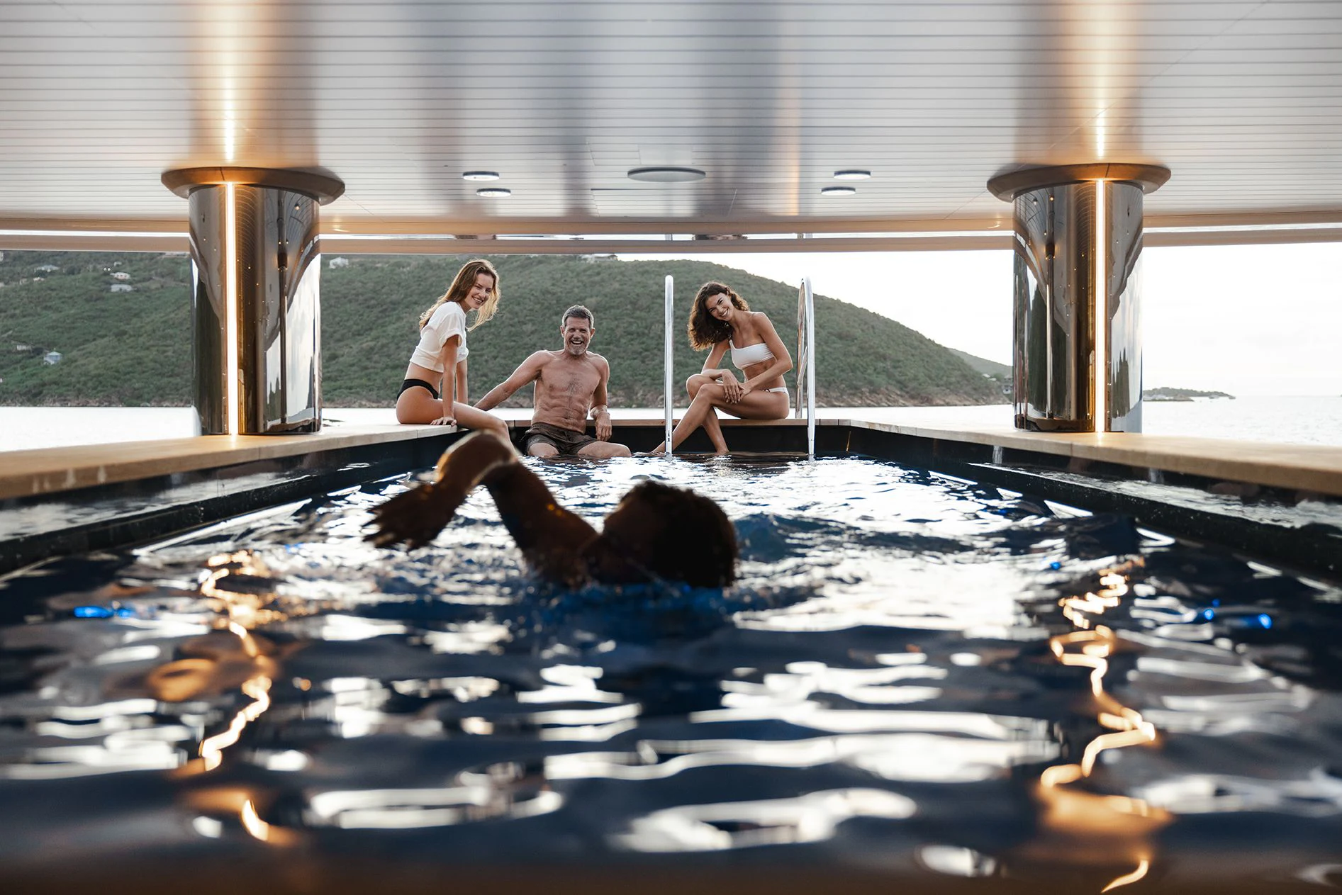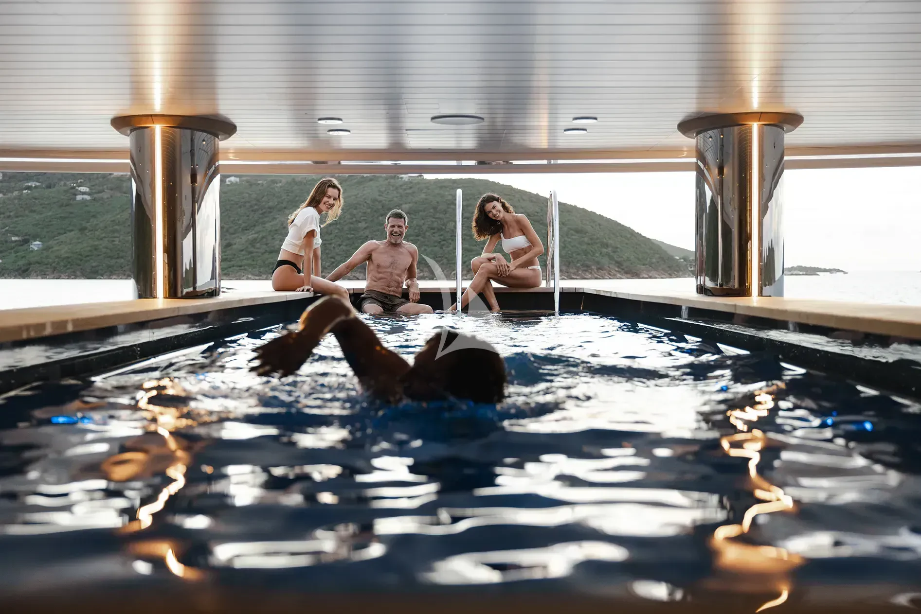 - Searaft 100m2 inflatable extension to the bathing platform offering 12m2 jelly fish pool, including dockage for the Windy chase tender and the seabobs