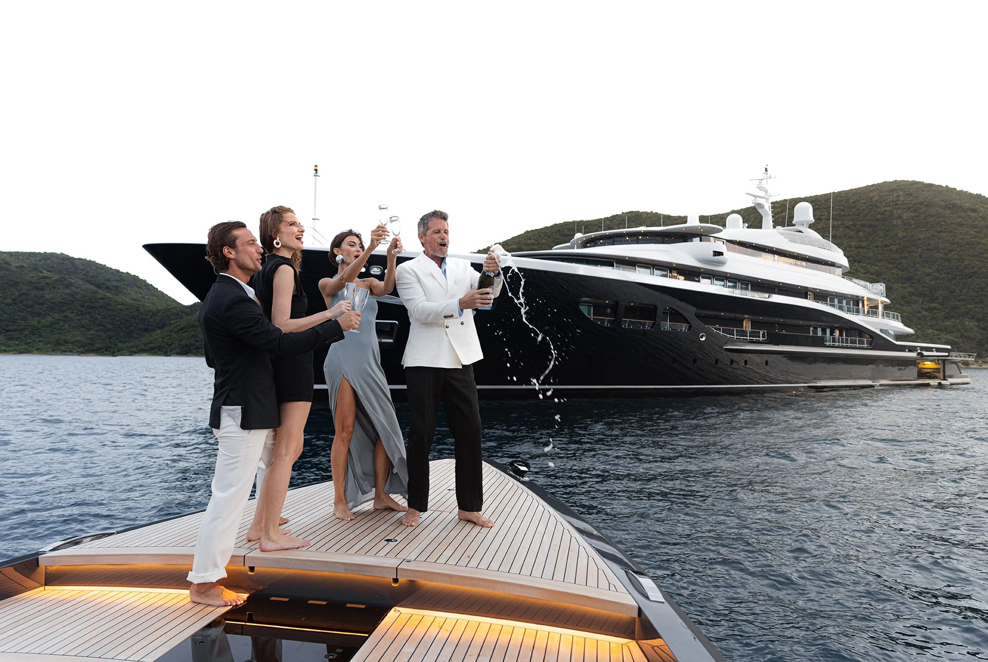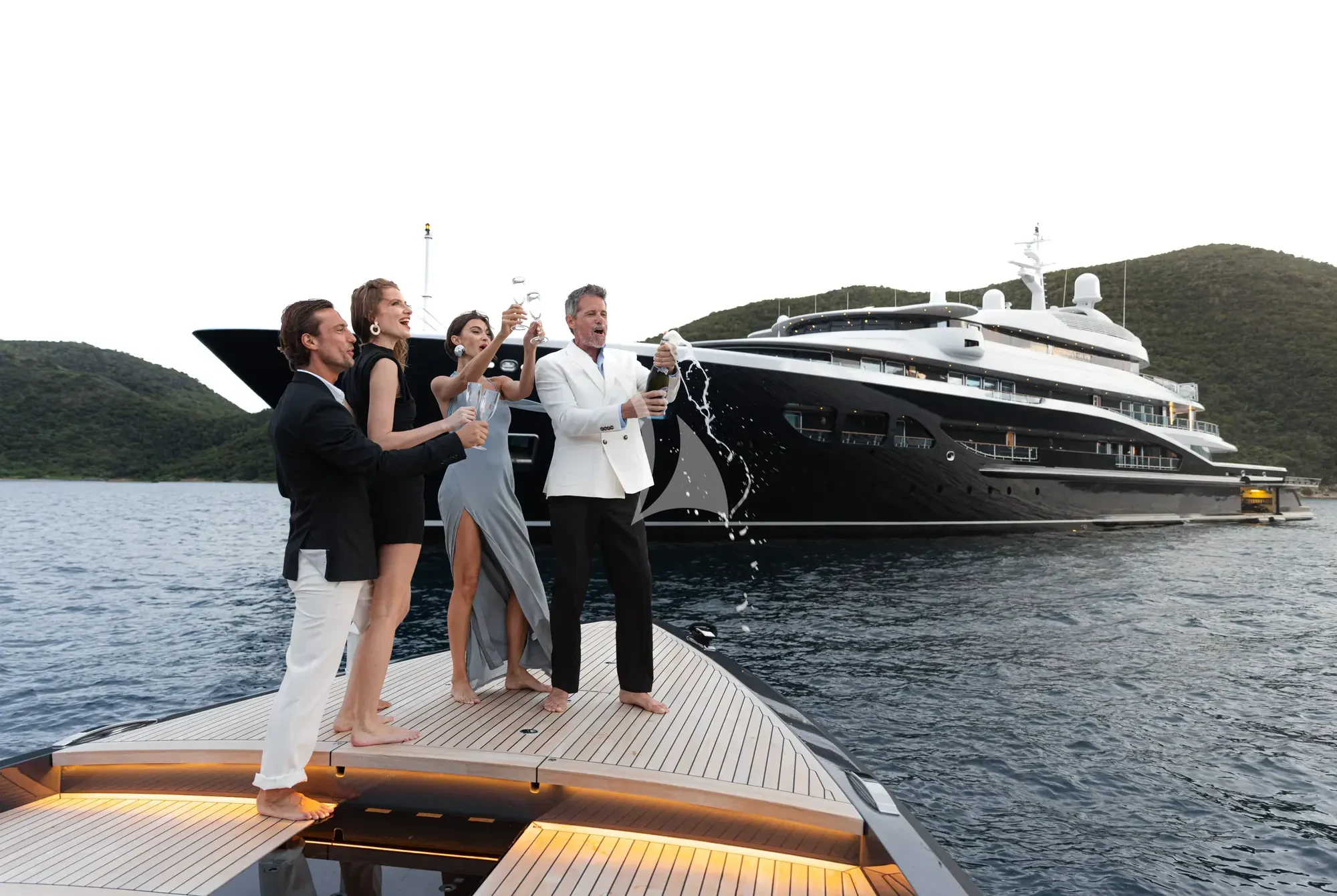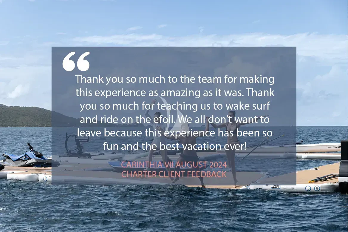 - Searaft 100m2 inflatable extension to the bathing platform offering 12m2 jelly fish pool, including dockage for the Windy chase tender and the seabobs