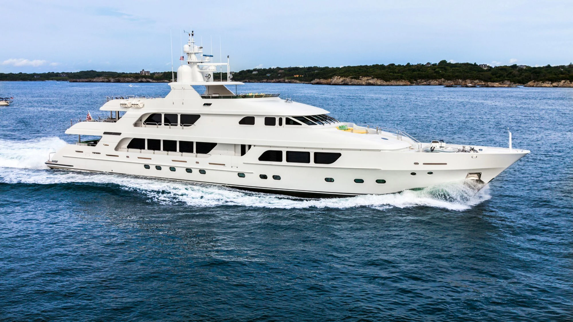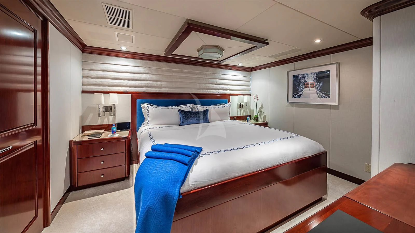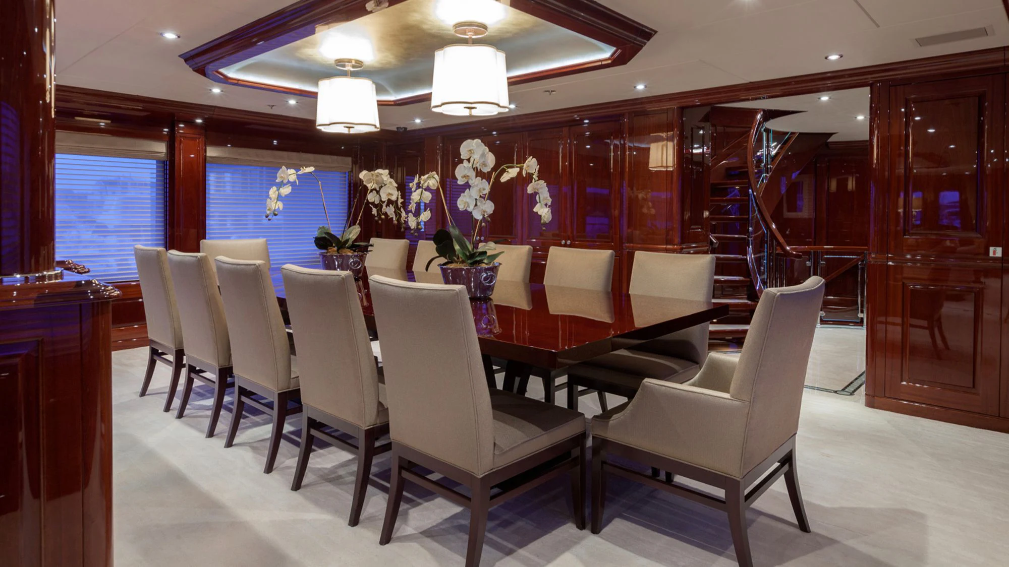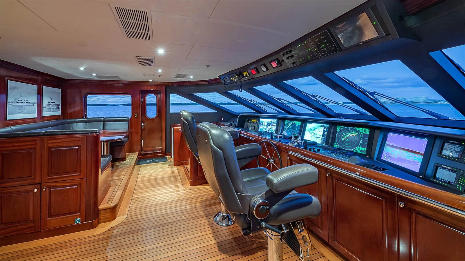 CARTE BLANCHE welcomes 12 guests and has an experienced crew to ensure that every guest has the best holiday imaginable. The superyacht features six beautifully appointed staterooms, including an on-deck master suite. The master is a retreat featuring large windows, a plush king bed, private office, two large walk-in closets and his-and-hers en-suite baths with a solid marble Jacuzzi tub on her side and a shower on his. CARTE BLANCHE’s lower deck VIP is as impressive as the master with its full-beam width and marble tub and shower. The additional staterooms aboard include two double-bed stateroom and two twin staterooms with Pullmans — each stateroom is complete with an en-suite bathroom.