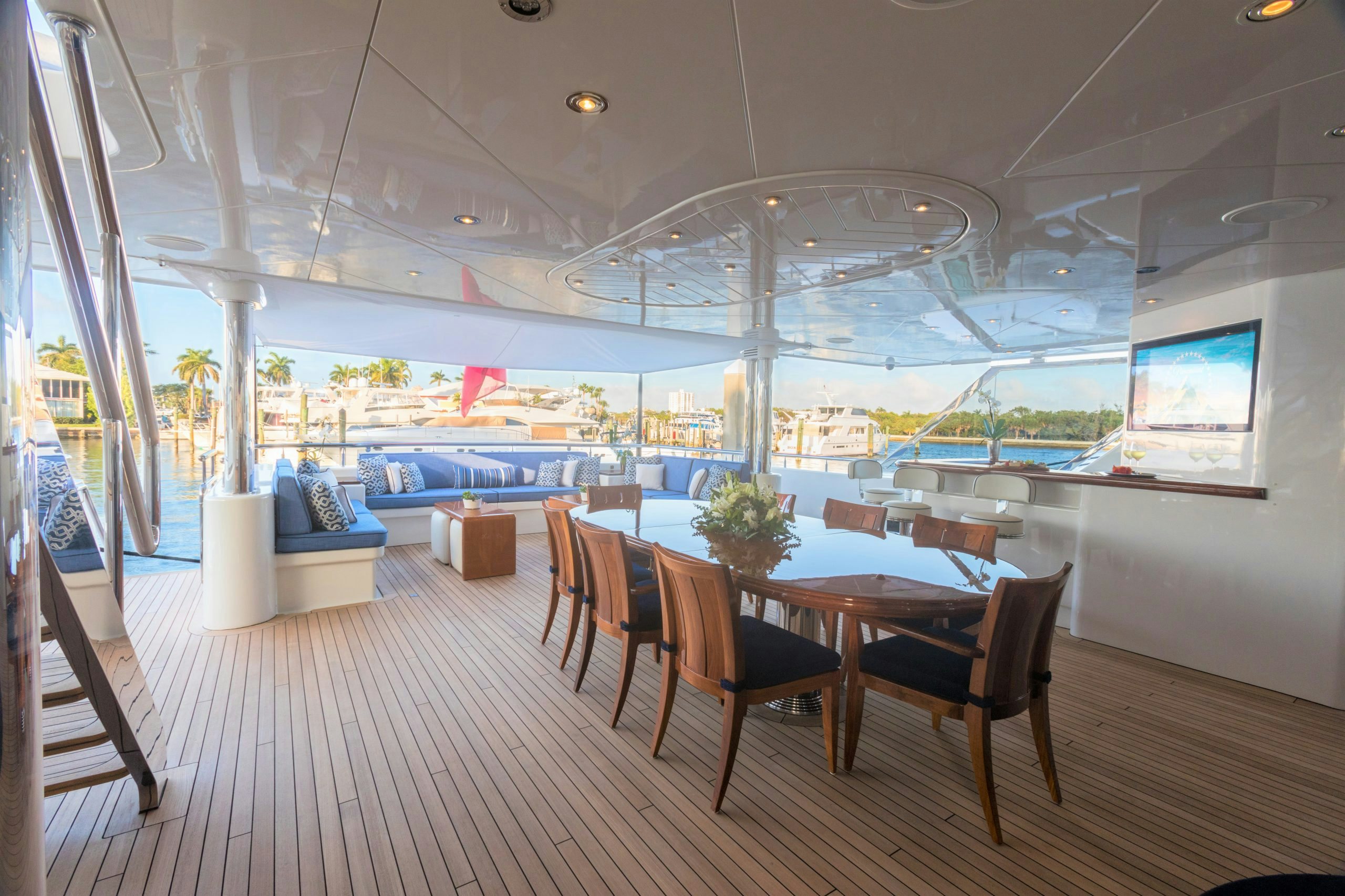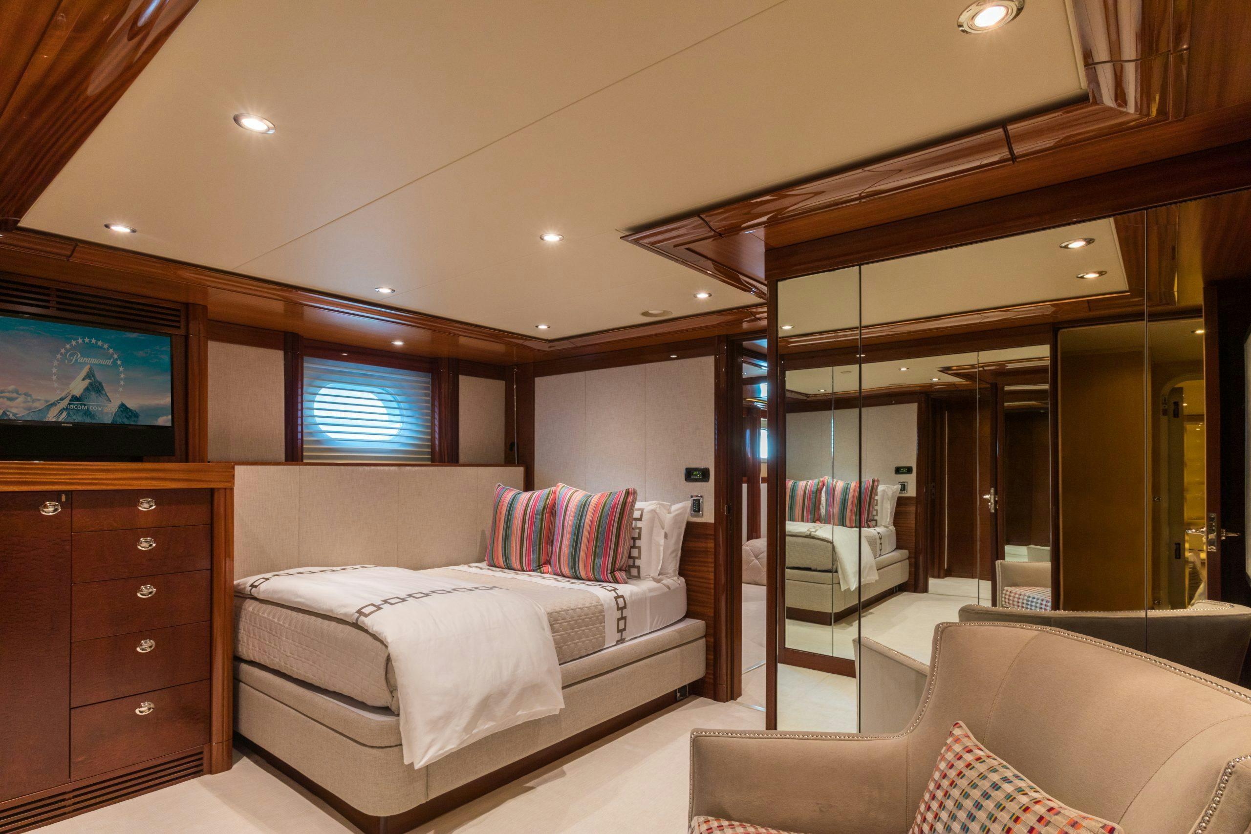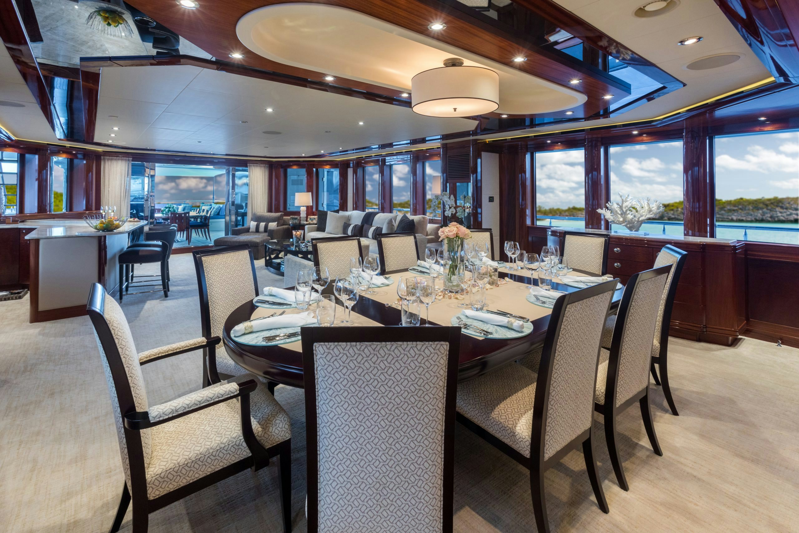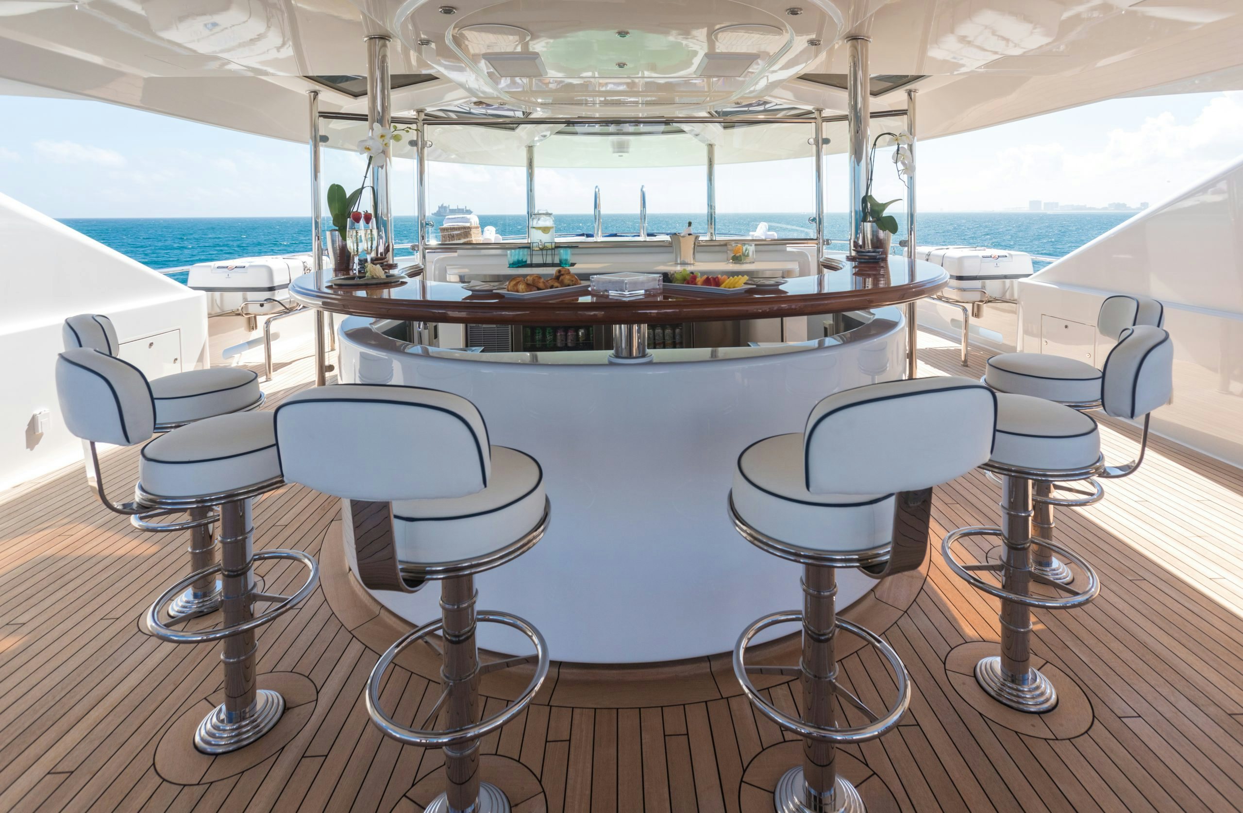 Luxury charter yacht CHASING DAYLIGHT welcomes up to 12 guests in the sumptuous comfort of six staterooms. Each stateroom is beautifully appointed, creating an oasis to rest up for the next day ahead. The superyacht’s king-bed master stateroom is located on the main deck to offer added privacy. On the bridge deck, the motor yacht features a king VIP with a private balcony, which is the ideal place for morning coffee or to read a book. The yacht’s additional staterooms on the lower level include two king-bed staterooms, a convertible twin/queen stateroom and a double-bed stateroom with a Pullman.