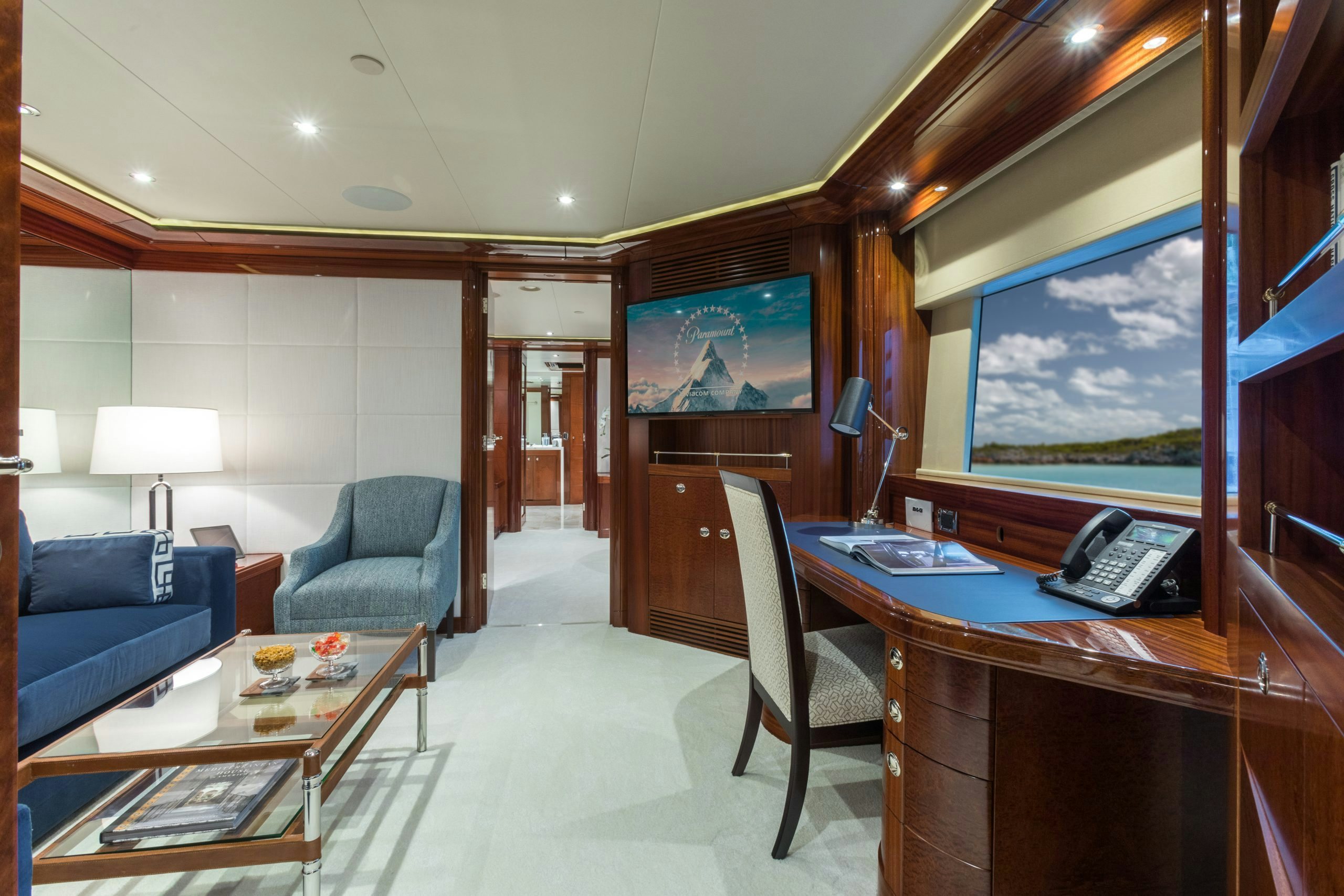 Guests will feel right at home in CHASING DAYLIGHT’s contemporary styled interior. Expansive windows enrich the interior with natural light and allow guests to take in sea views while enjoying the interior’s comforts. The superyacht’s main salon and skylounge both provide desirable spaces for guests to unwind and socialize. An elevator servicing all levels ensures easy movement throughout the yacht.