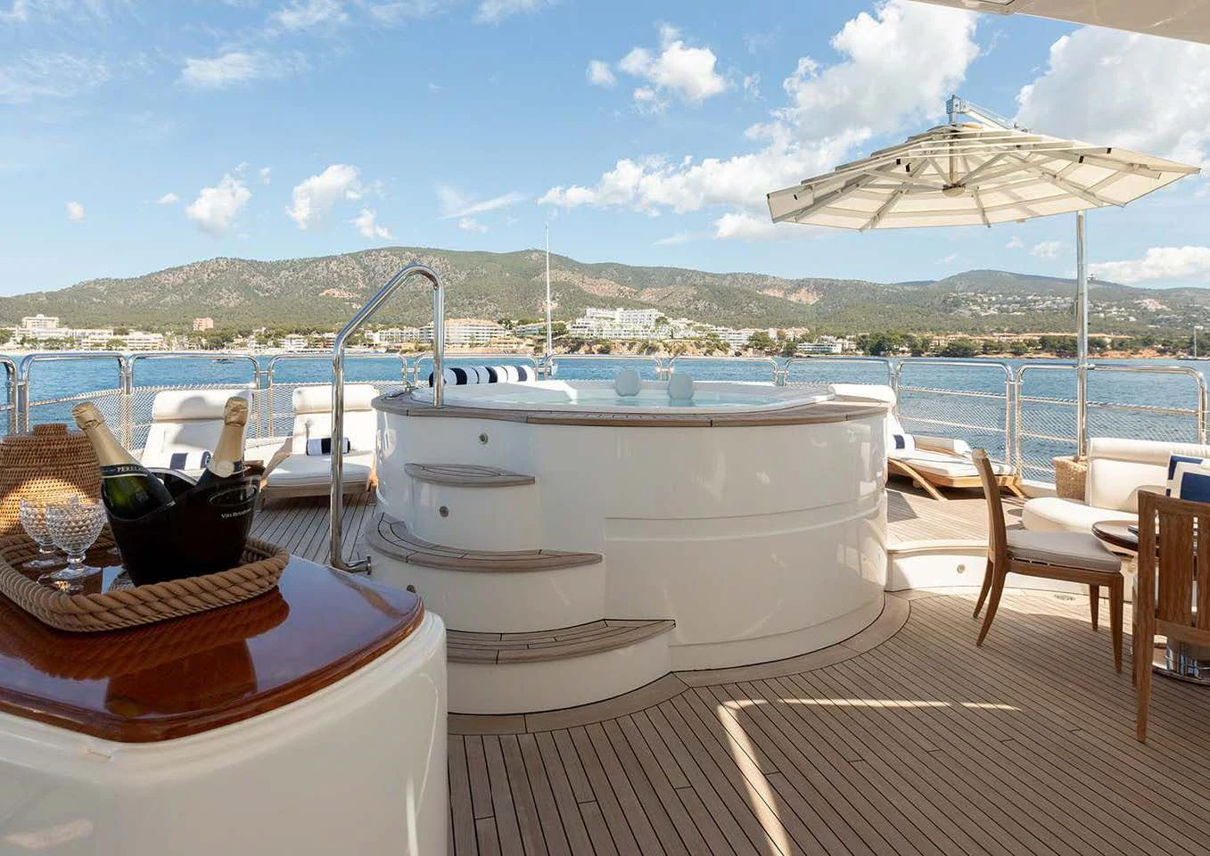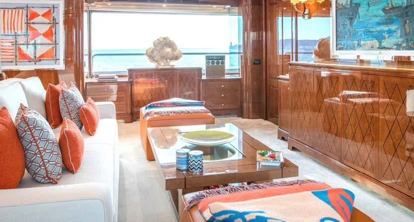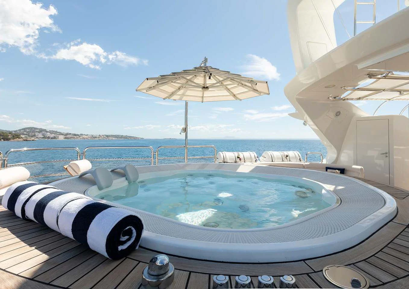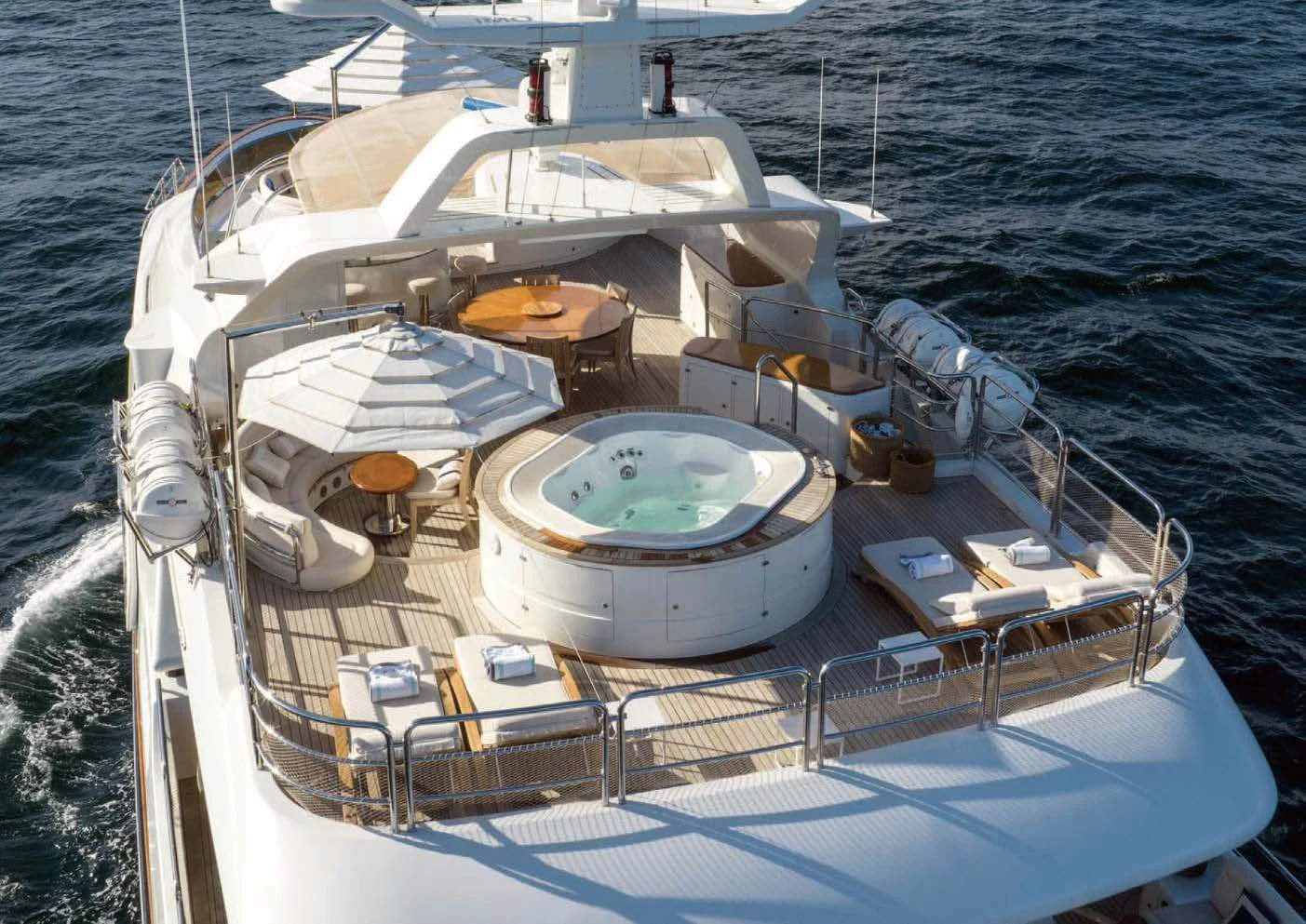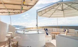 An on-deck master suite with 180-degree panoramic views, Zero Speed stabilizers, VSAT Internet access and a spacious sun deck with a day head are just some of her bespoke assets.
