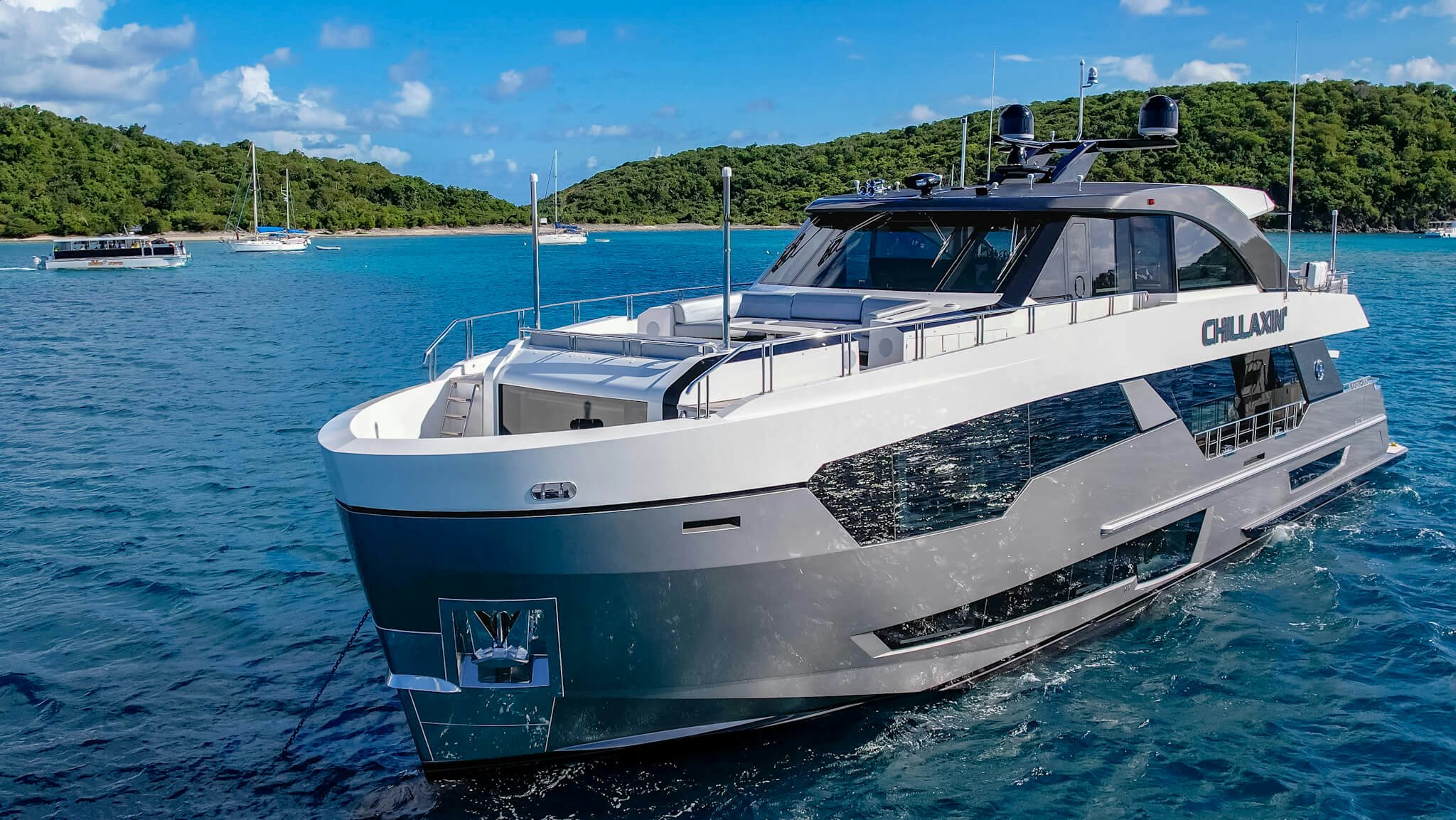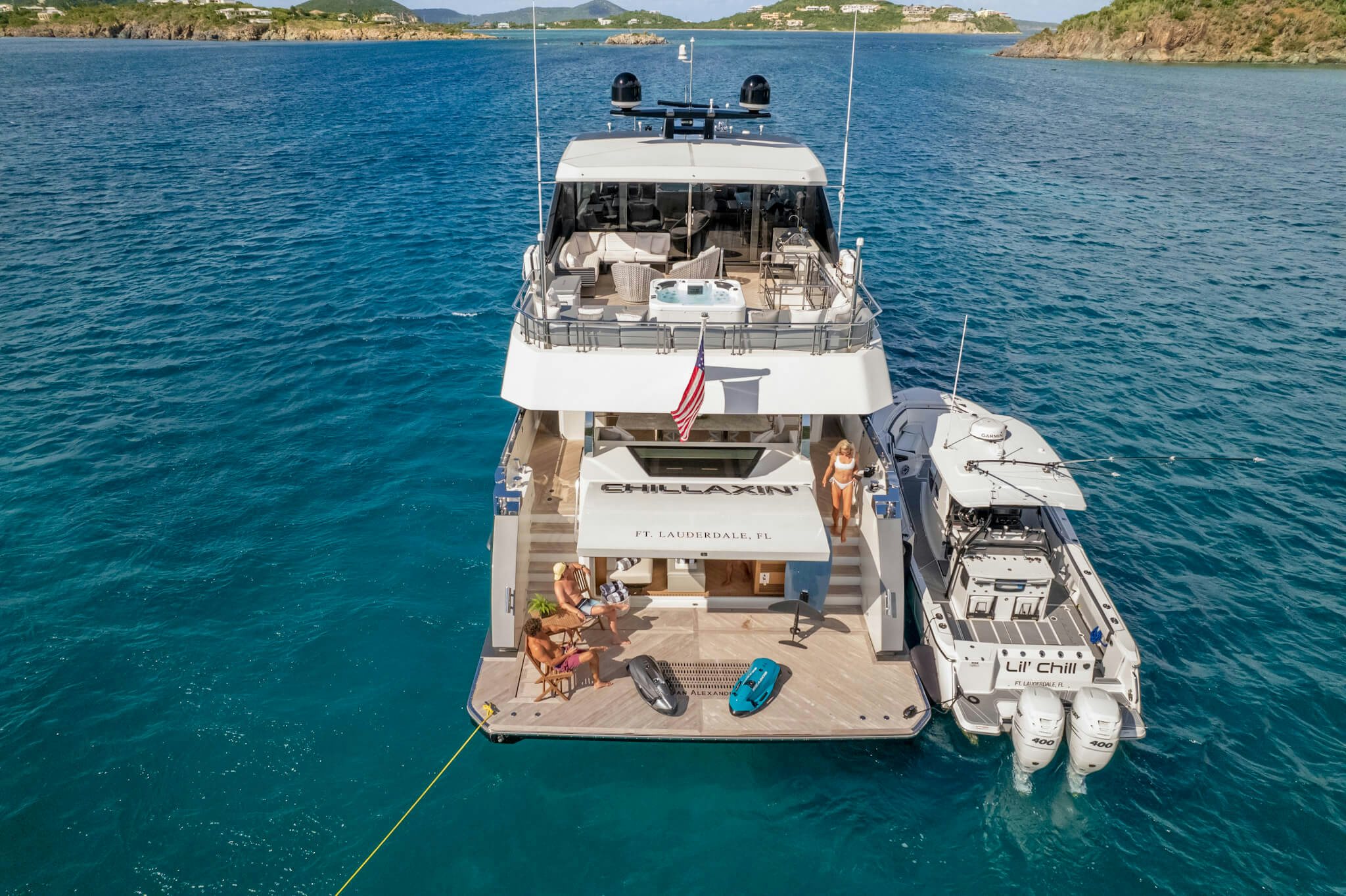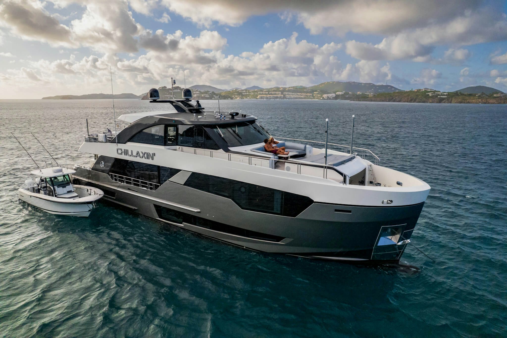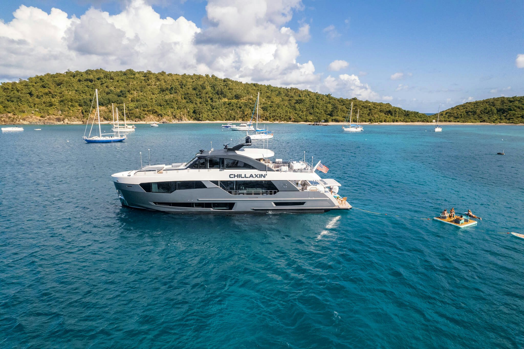 Built in 2021 by Ocean Alexander, the 28m Revolution CHILLAXIN is the ultimate yacht for charter. She is unlike other yachts in her class, boasting extreme volume and a refined design that offer guests an elevated charter experience. From the inside out, her guest areas are expansive and multifunctional without sacrificing power, performance or efficiency. The luxury yacht’s build is sleek, safe and powerful, featuring stabilizers to ensure guest comfort. The yacht is very well maintained, and her owner has spared no expense, recently adding additional water makers and ice makers.