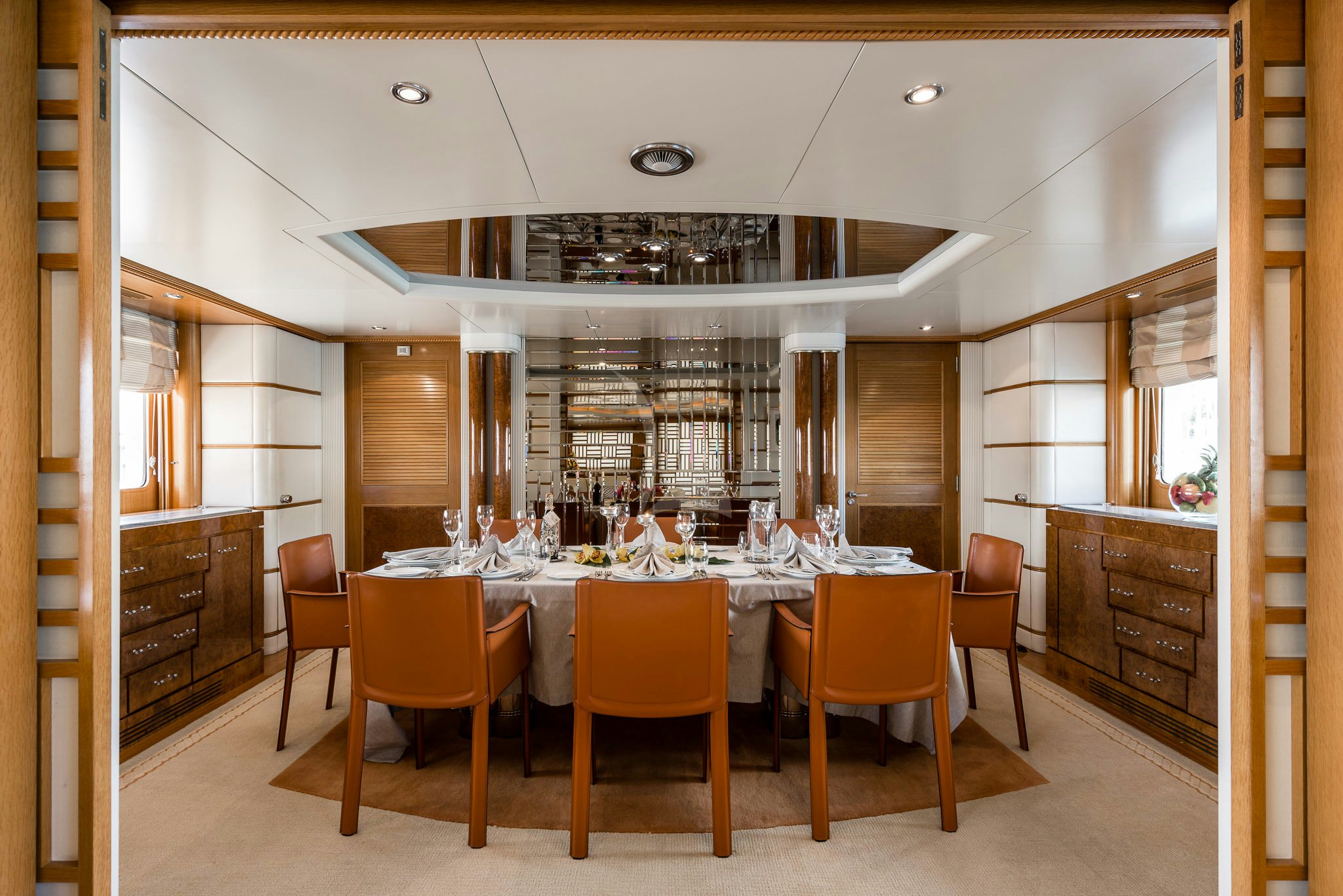 Having been refitted in 2014 by award-winning design studio Terence Disdale Design, DESAMIS B presents a striking and refreshingly modern image. Styled to match the elegant decor of the main decks with a continuation of the sublime lighting features, the five staterooms have a distinct atmosphere of Mediterranean luxury which promises to induce relaxation. Up to 11 guests can be accommodated among the full-beam (7.92-meter) master stateroom—which features his-and-hers en-suite bathrooms—and the double, triple, and single cabins. There is also room for up to eight crew members, ensuring that guests onboard DESAMIS B will enjoy an unforgettable trip with no detail overlooked.