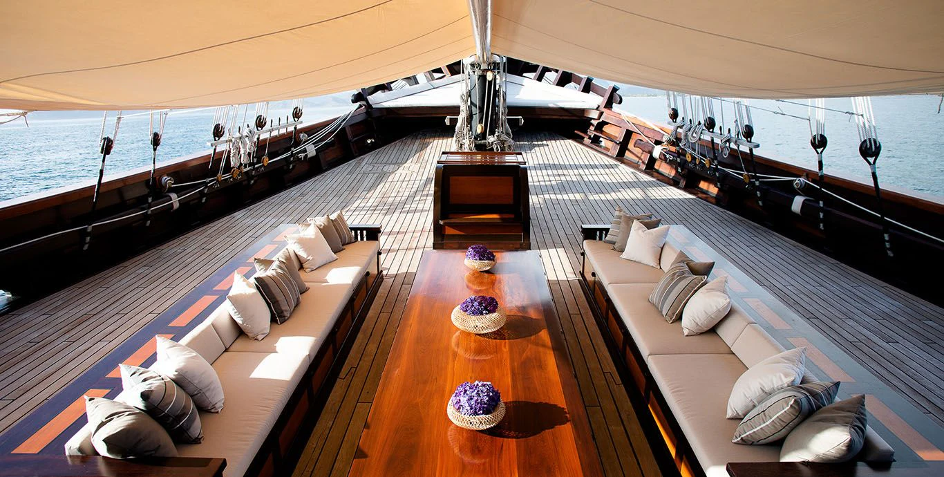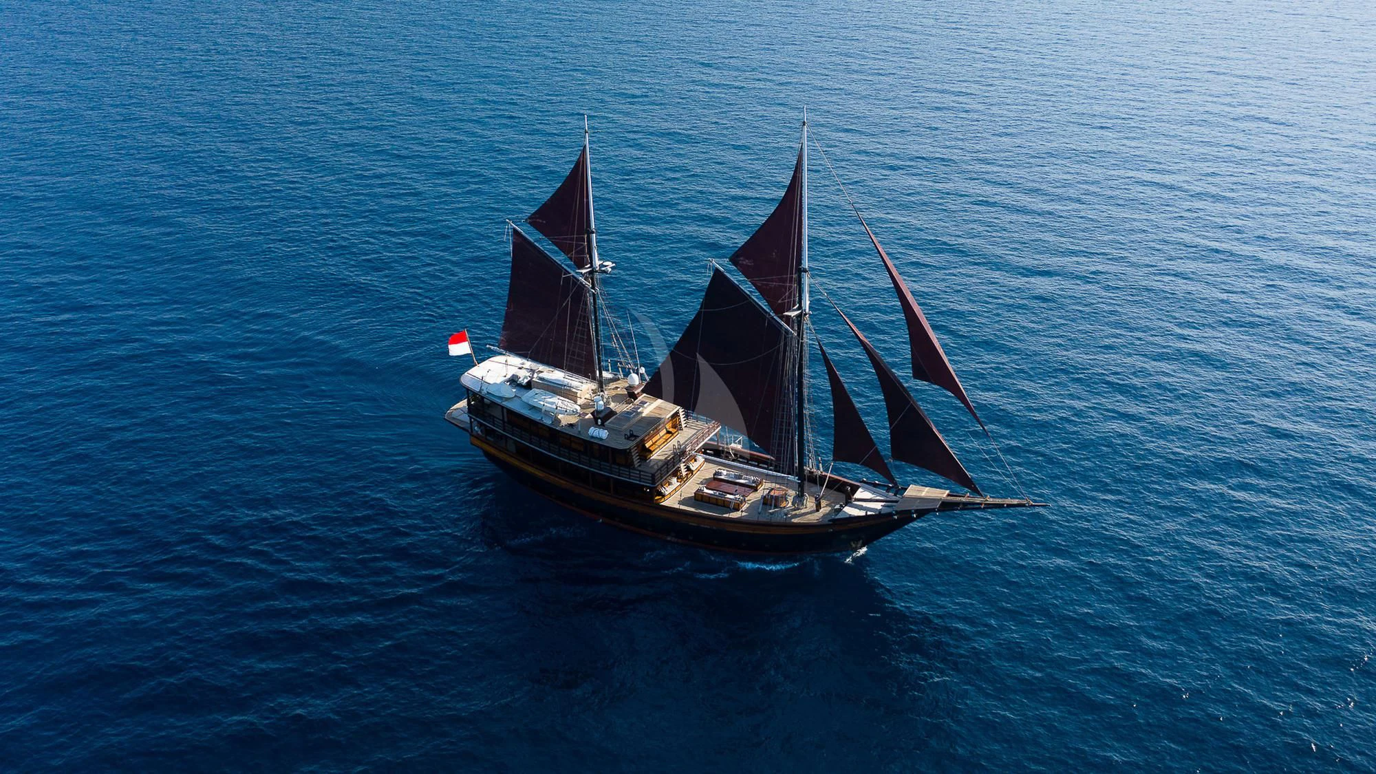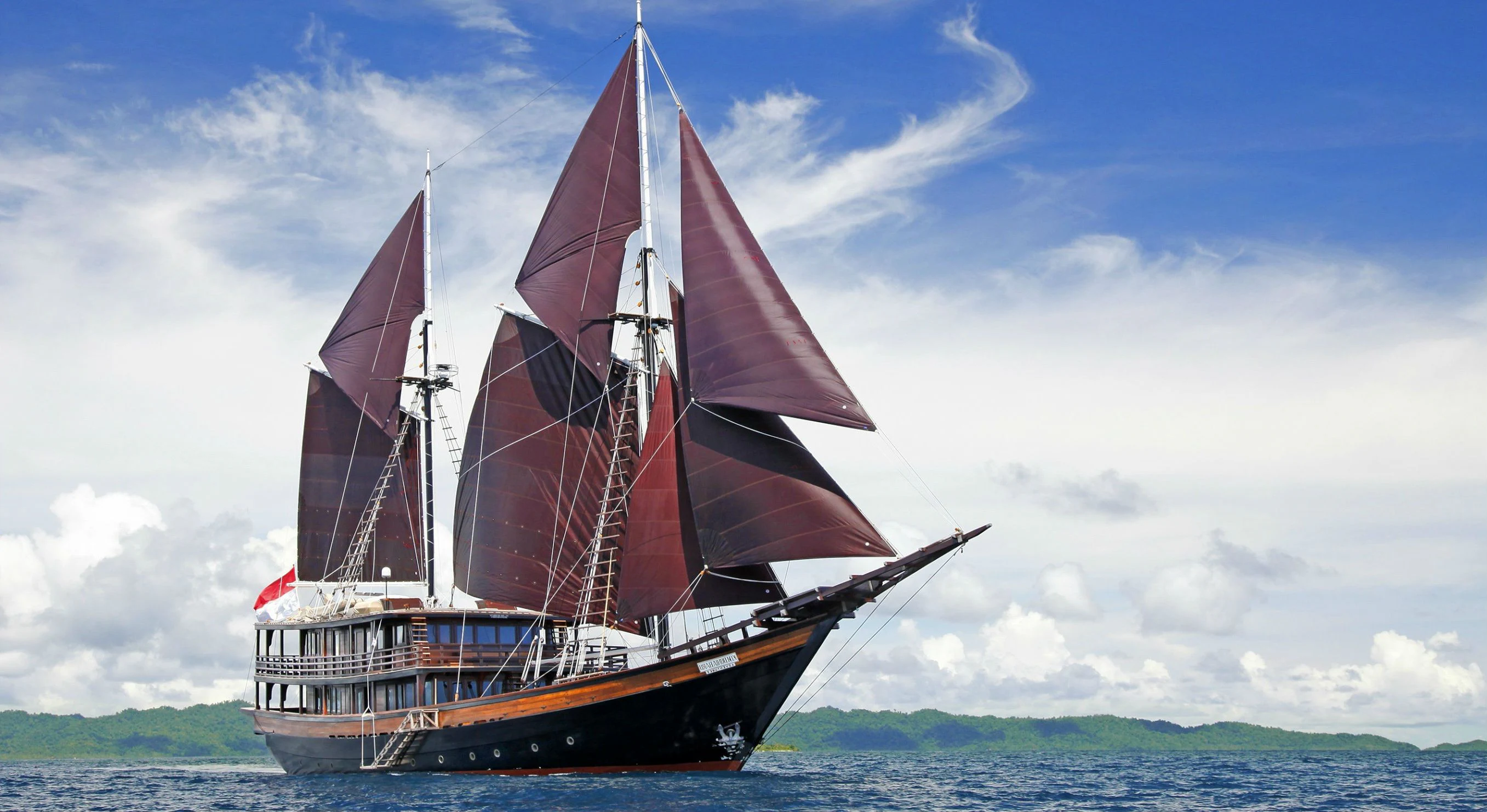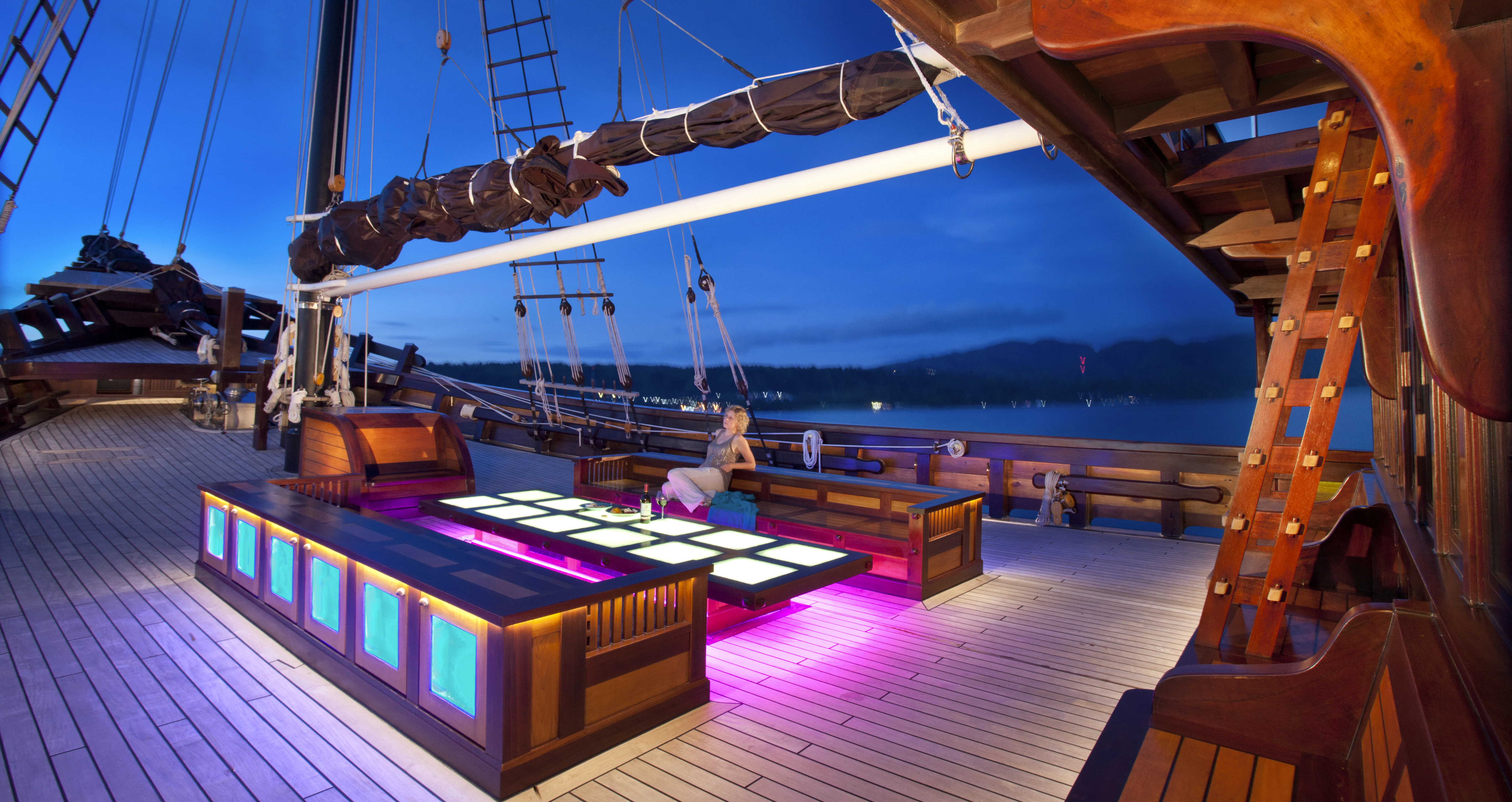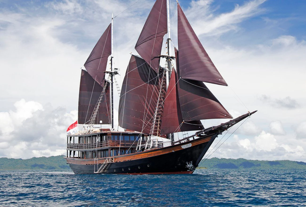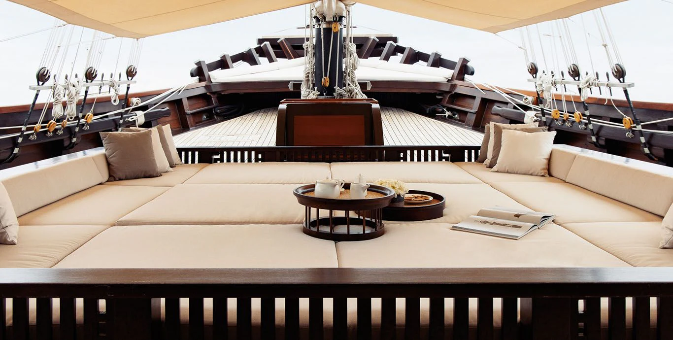 DUNIA BARU yacht combines a classic Indonesian phinisi design and the finest Indonesian wood craftsmanship with the latest technology, including worldwide communication and broadband wireless Internet and an advanced sound and lighting system to set the mood throughout the yacht.