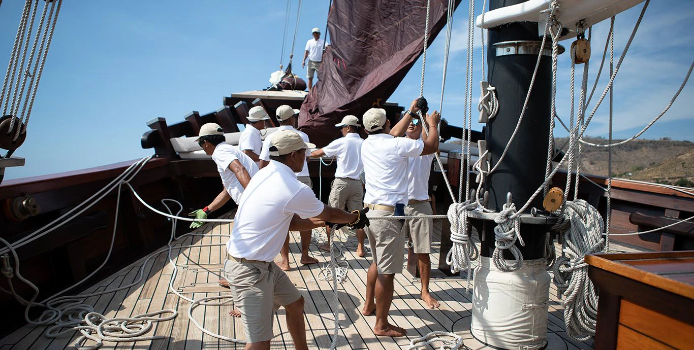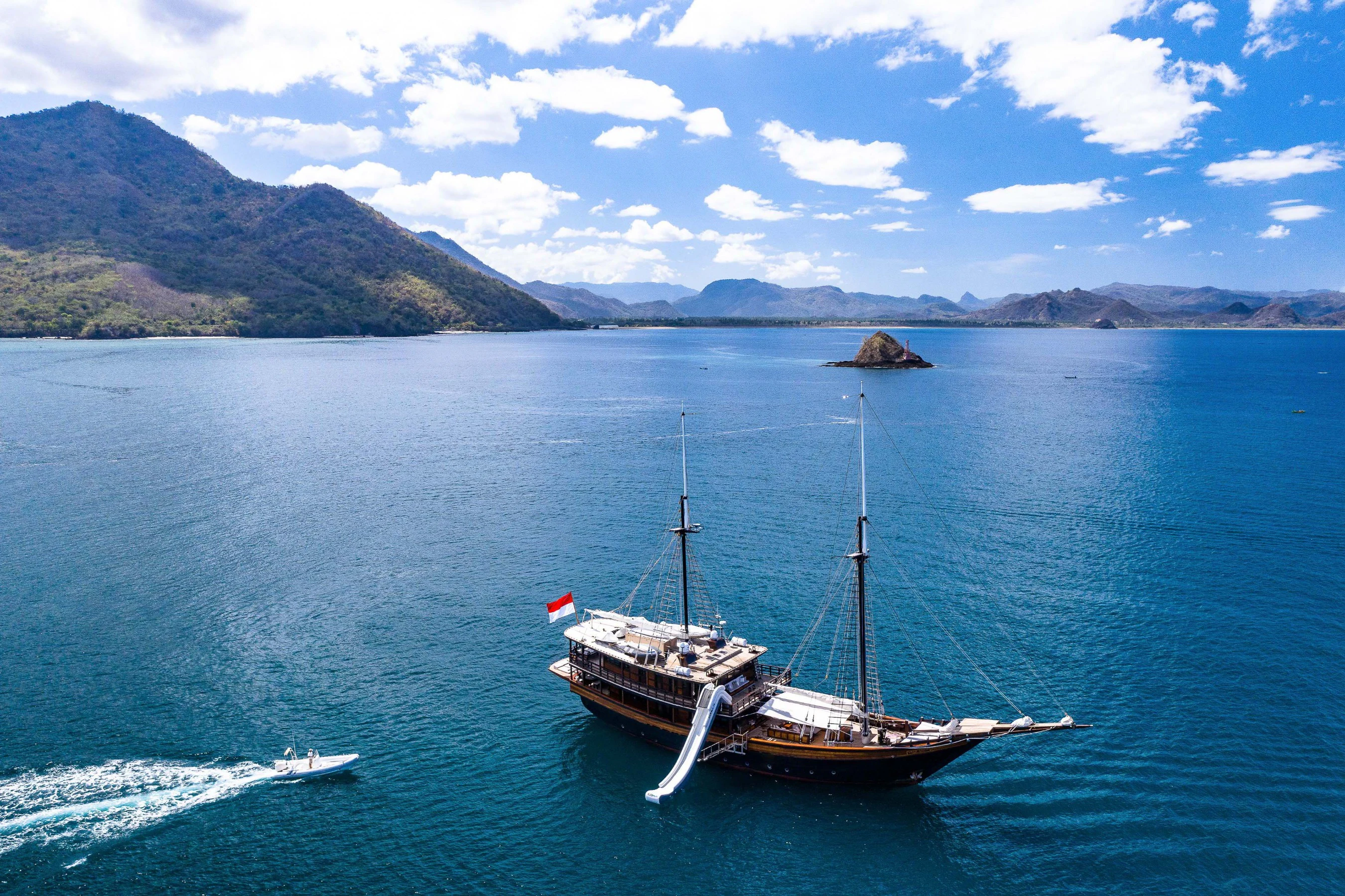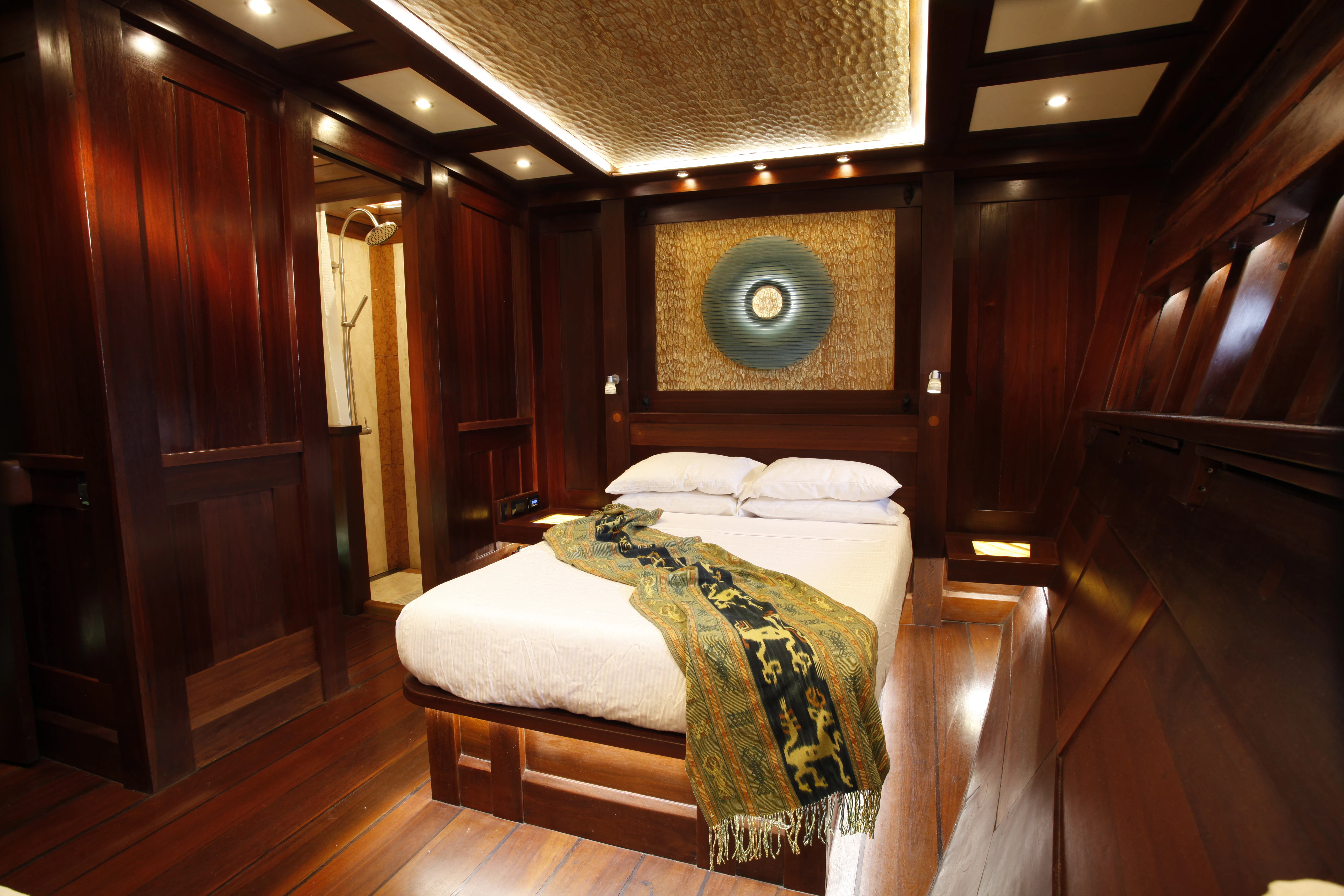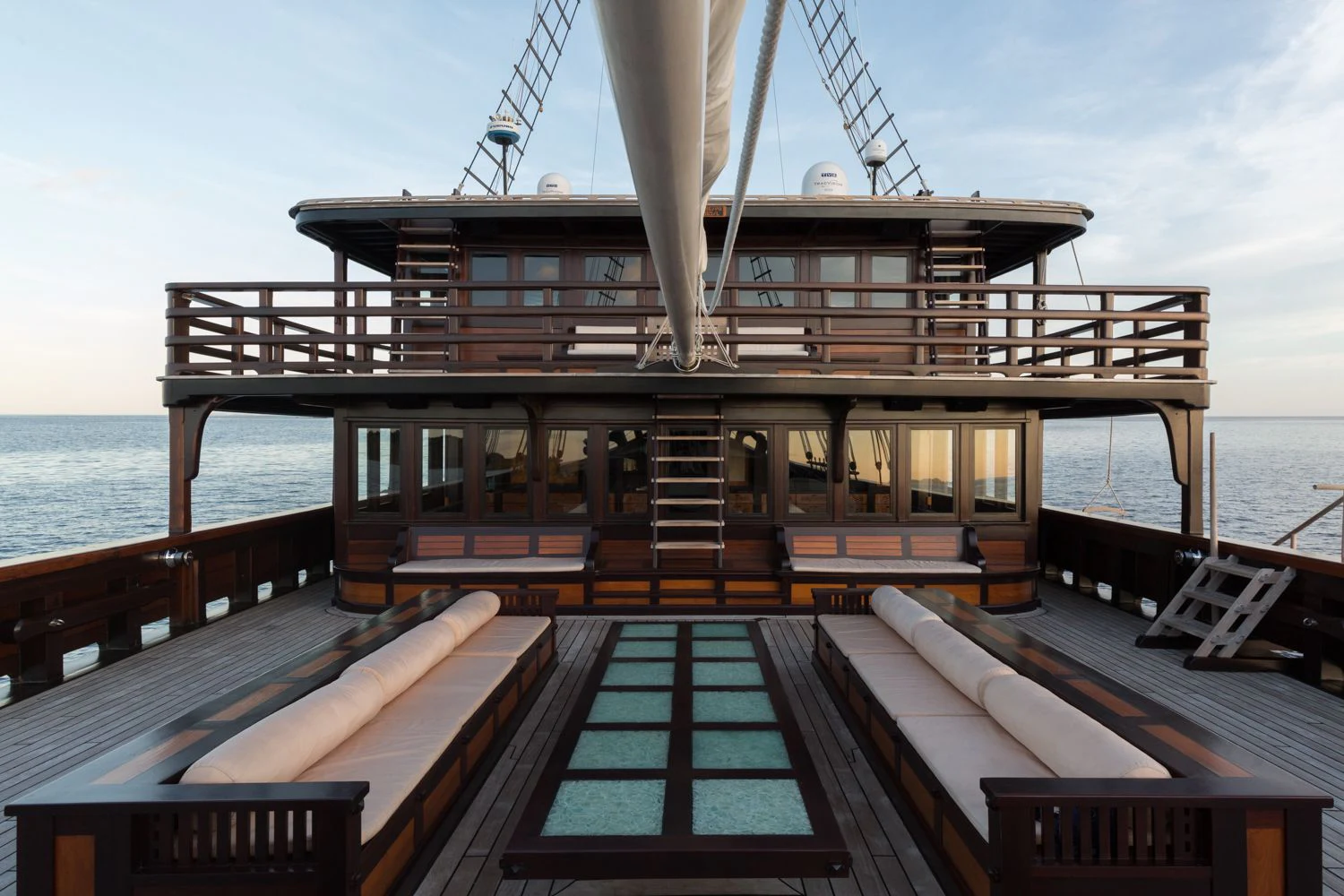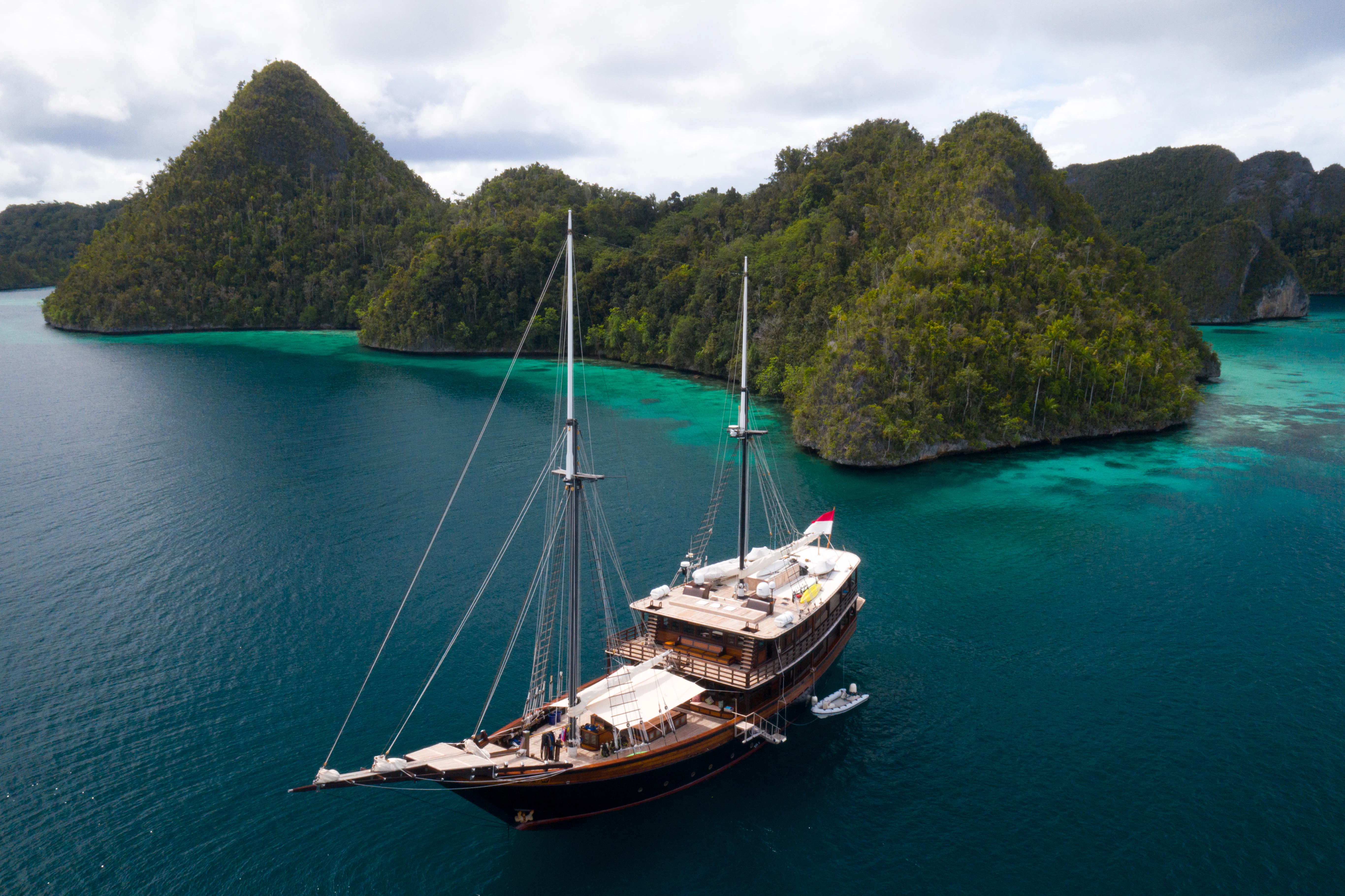 DUNIA BARU yacht combines a classic Indonesian phinisi design and the finest Indonesian wood craftsmanship with the latest technology, including worldwide communication and broadband wireless Internet and an advanced sound and lighting system to set the mood throughout the yacht.