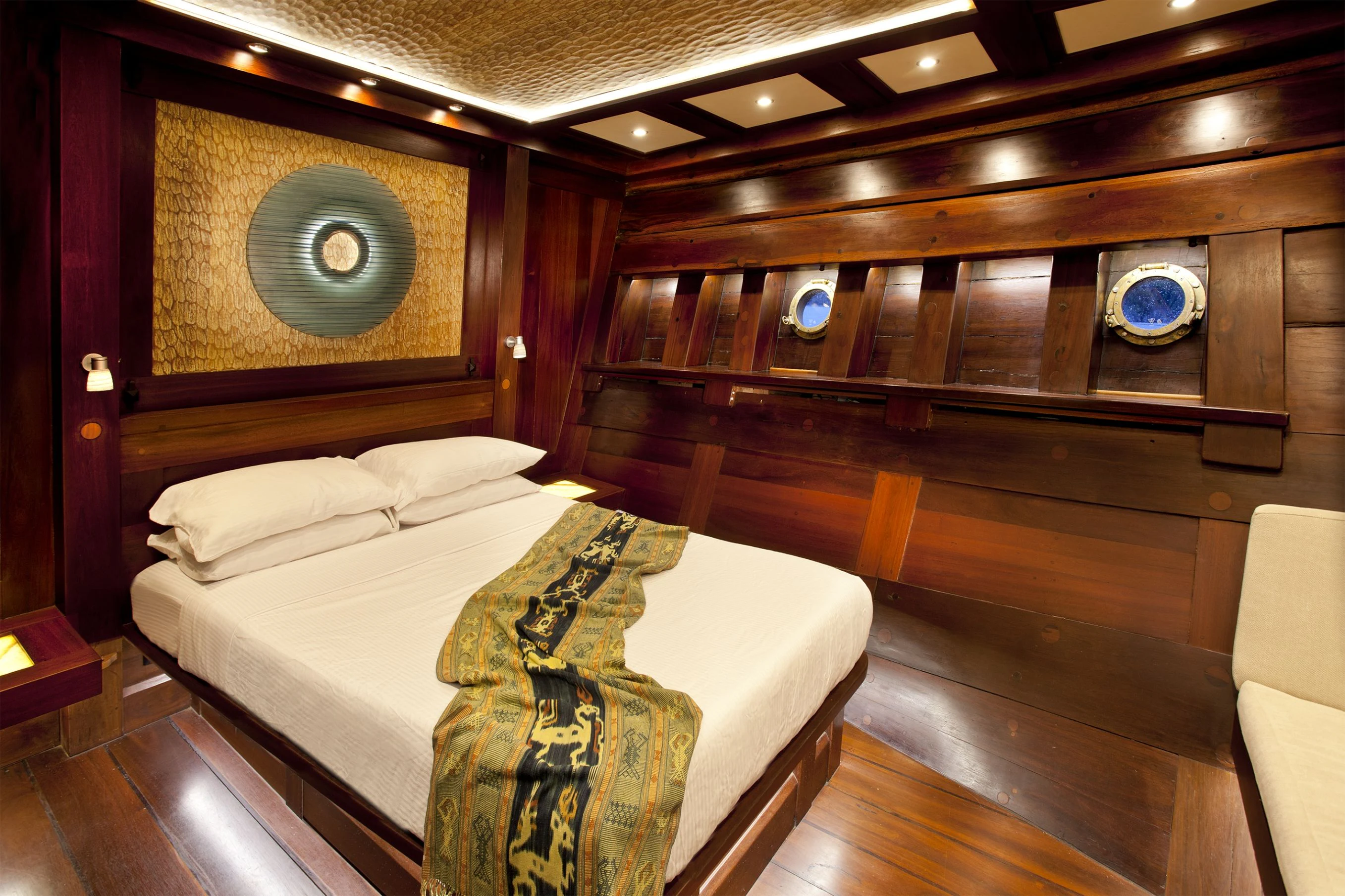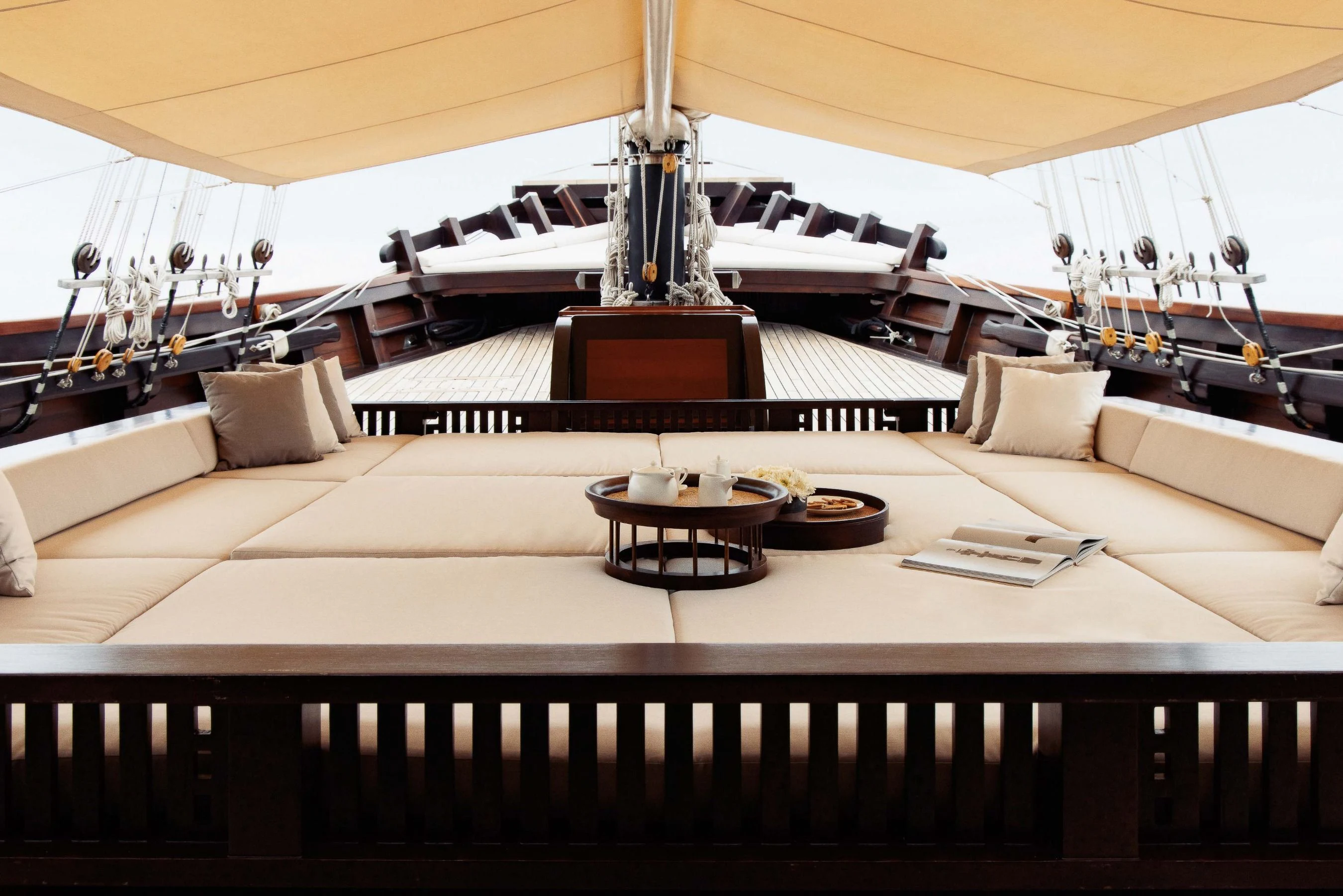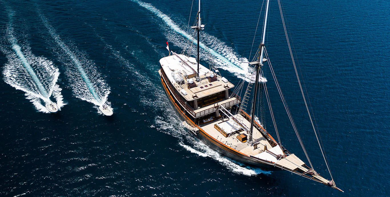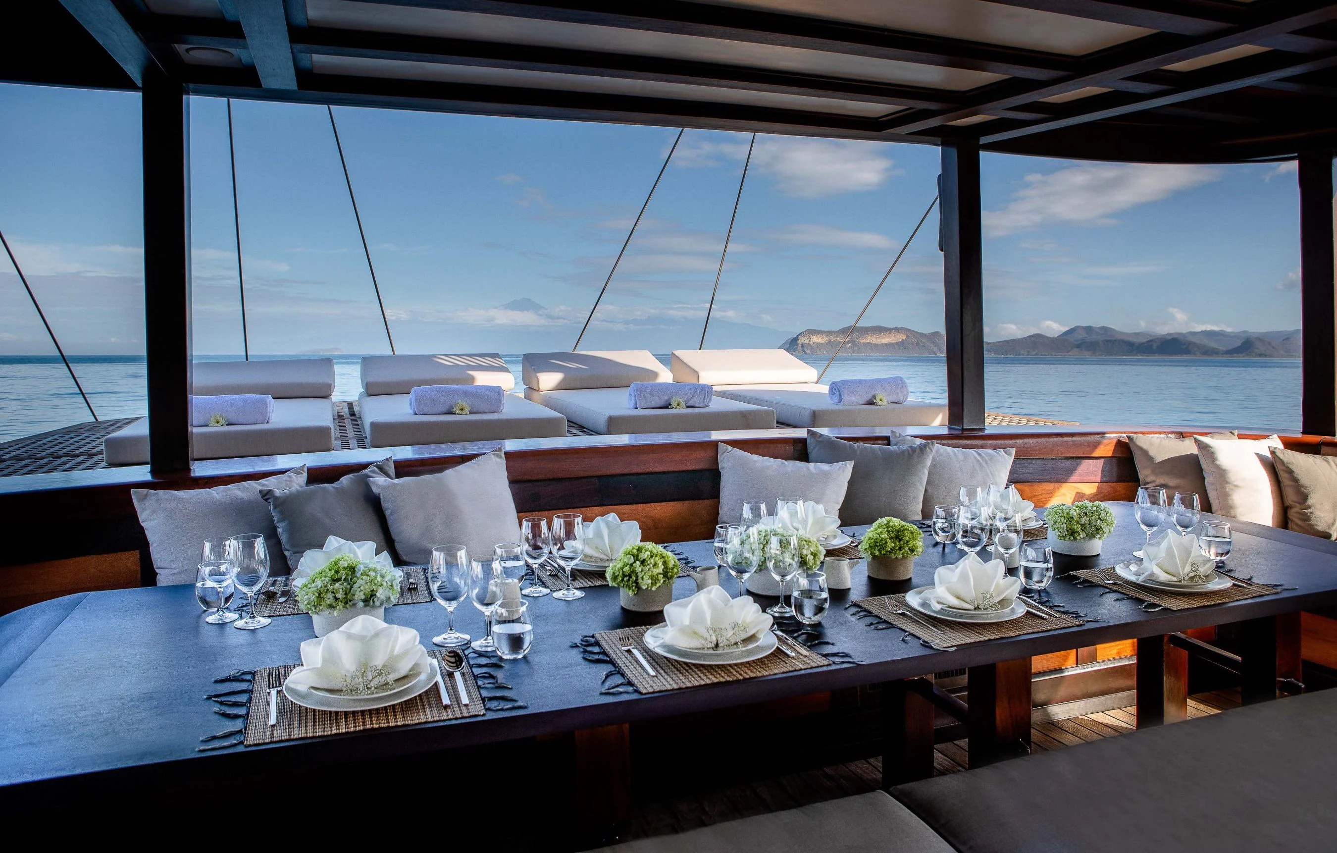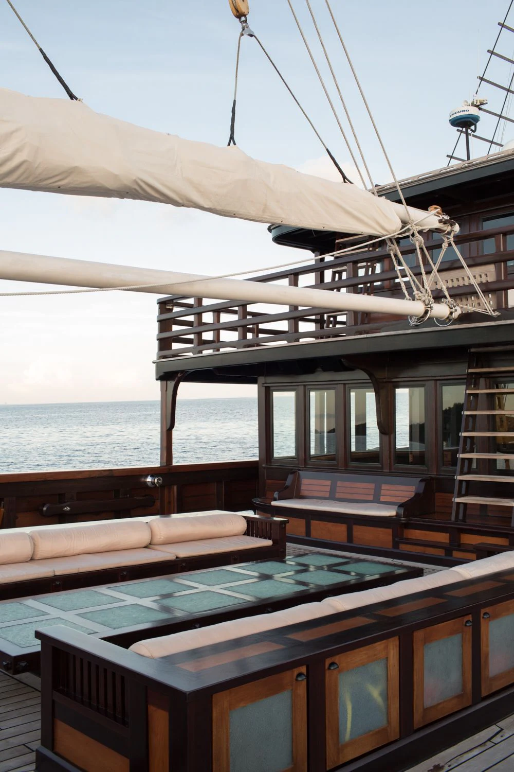 DUNIA BARU yacht combines a classic Indonesian phinisi design and the finest Indonesian wood craftsmanship with the latest technology, including worldwide communication and broadband wireless Internet and an advanced sound and lighting system to set the mood throughout the yacht.