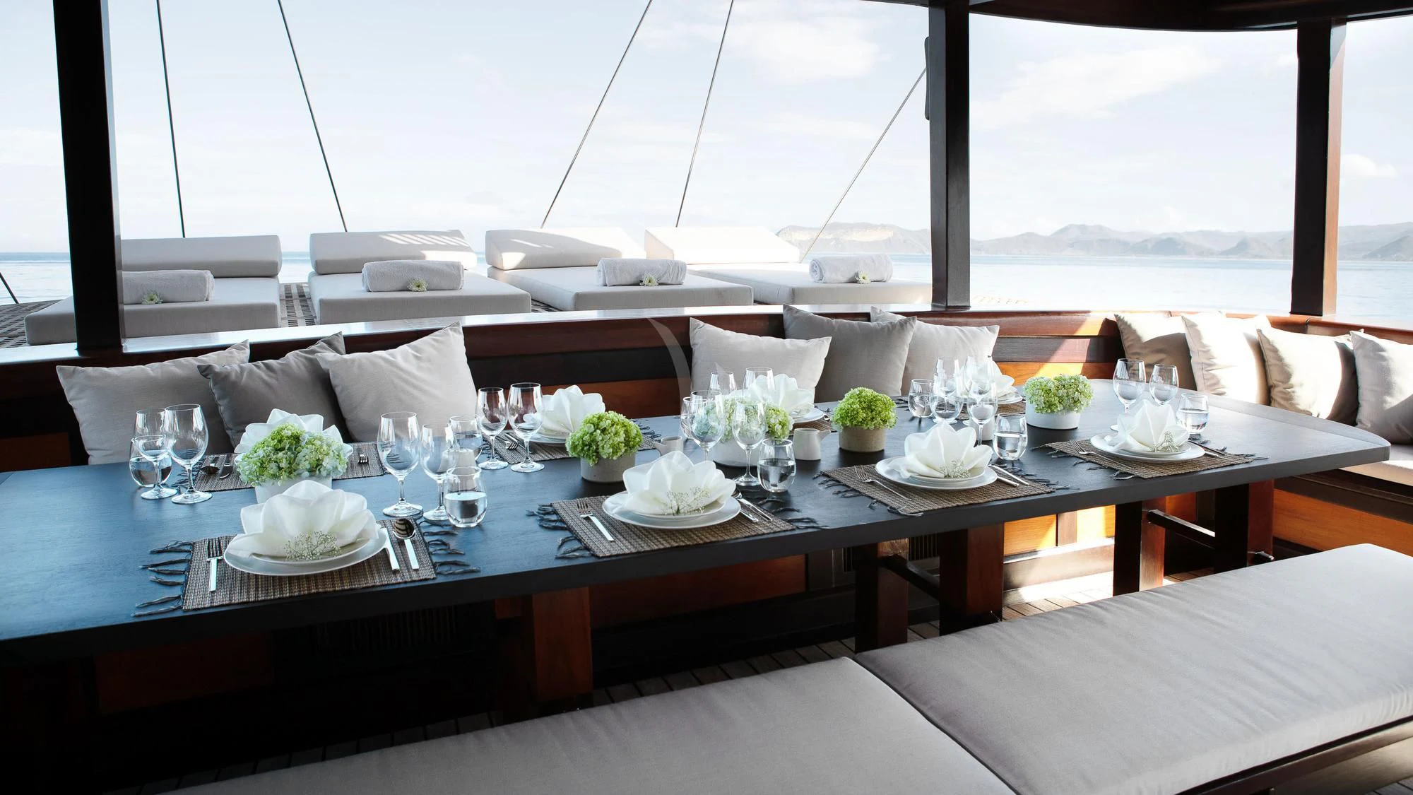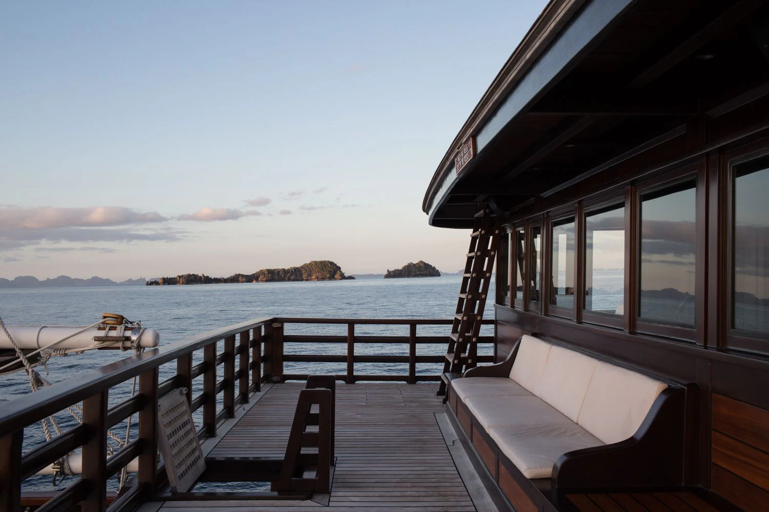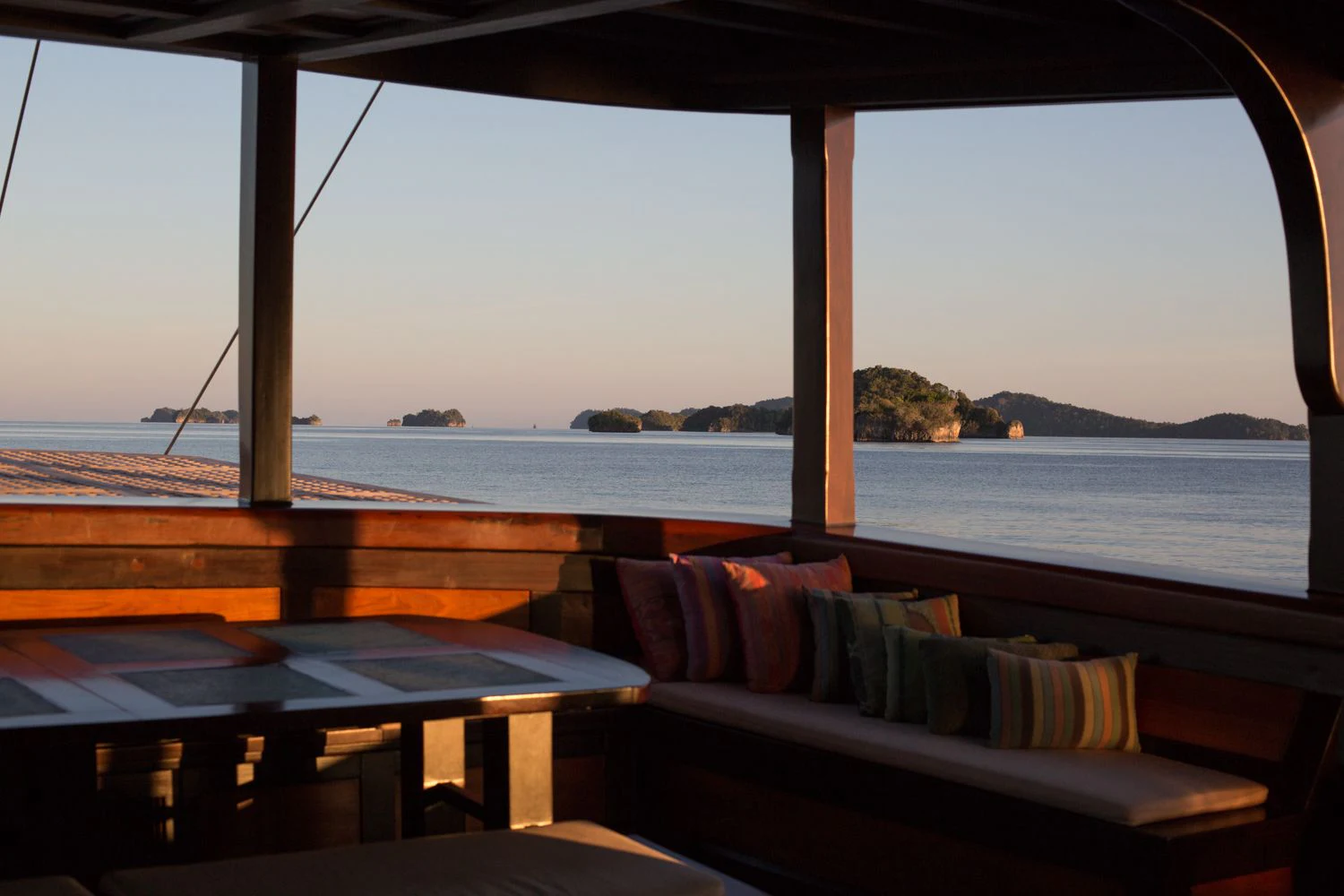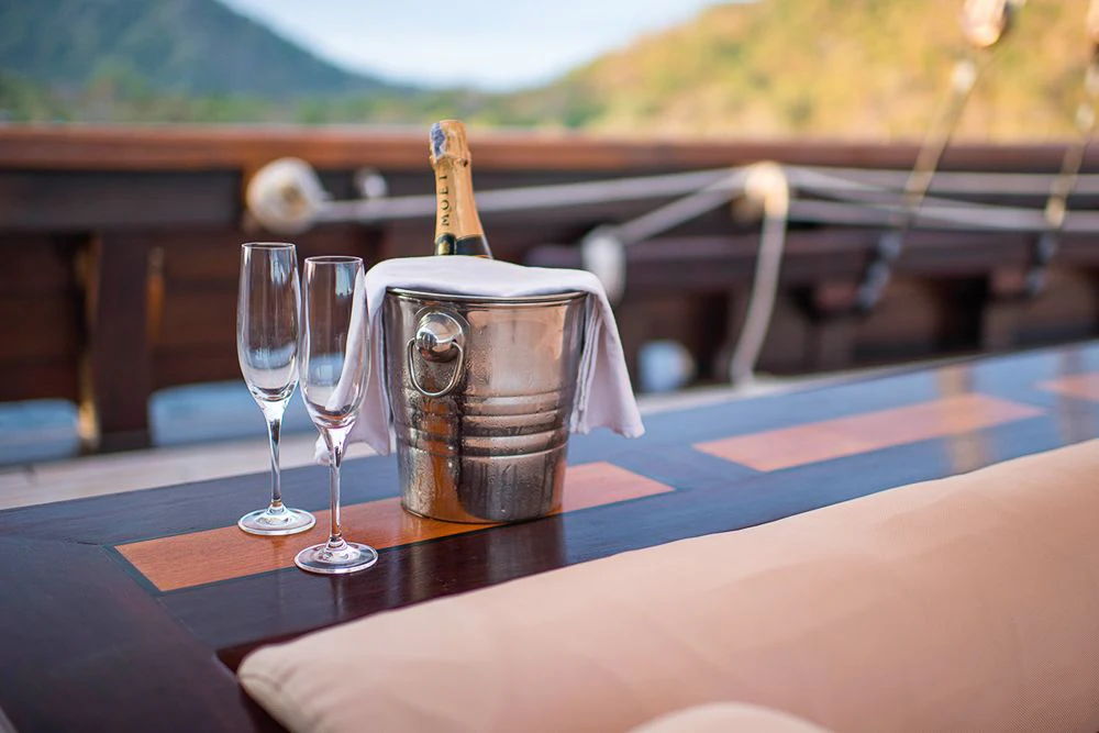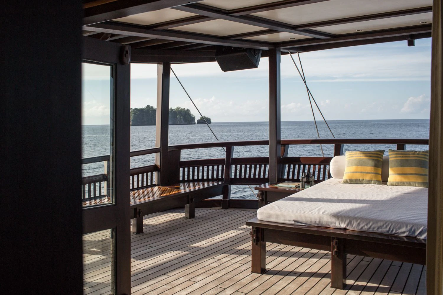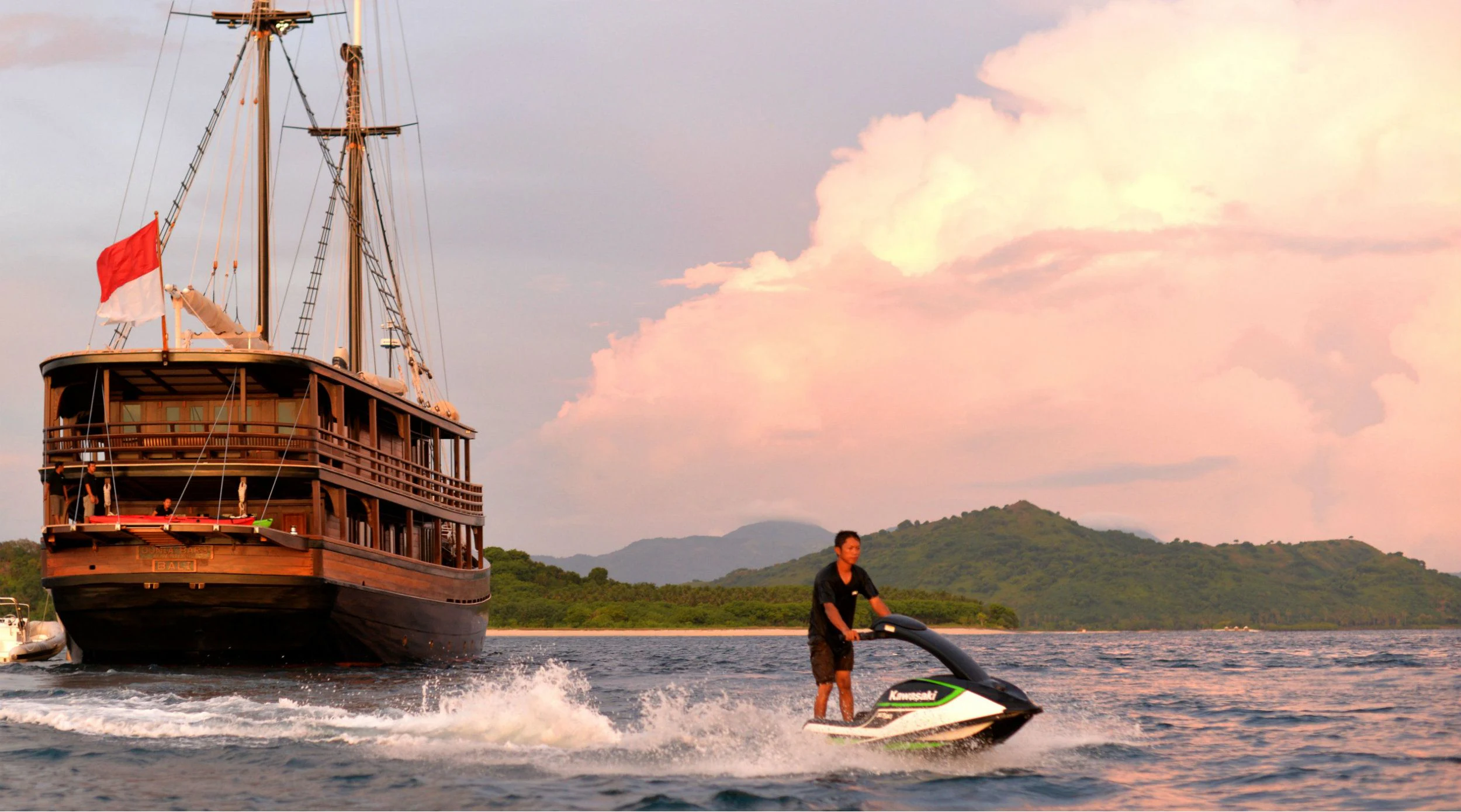 DUNIA BARU yacht combines a classic Indonesian phinisi design and the finest Indonesian wood craftsmanship with the latest technology, including worldwide communication and broadband wireless Internet and an advanced sound and lighting system to set the mood throughout the yacht.