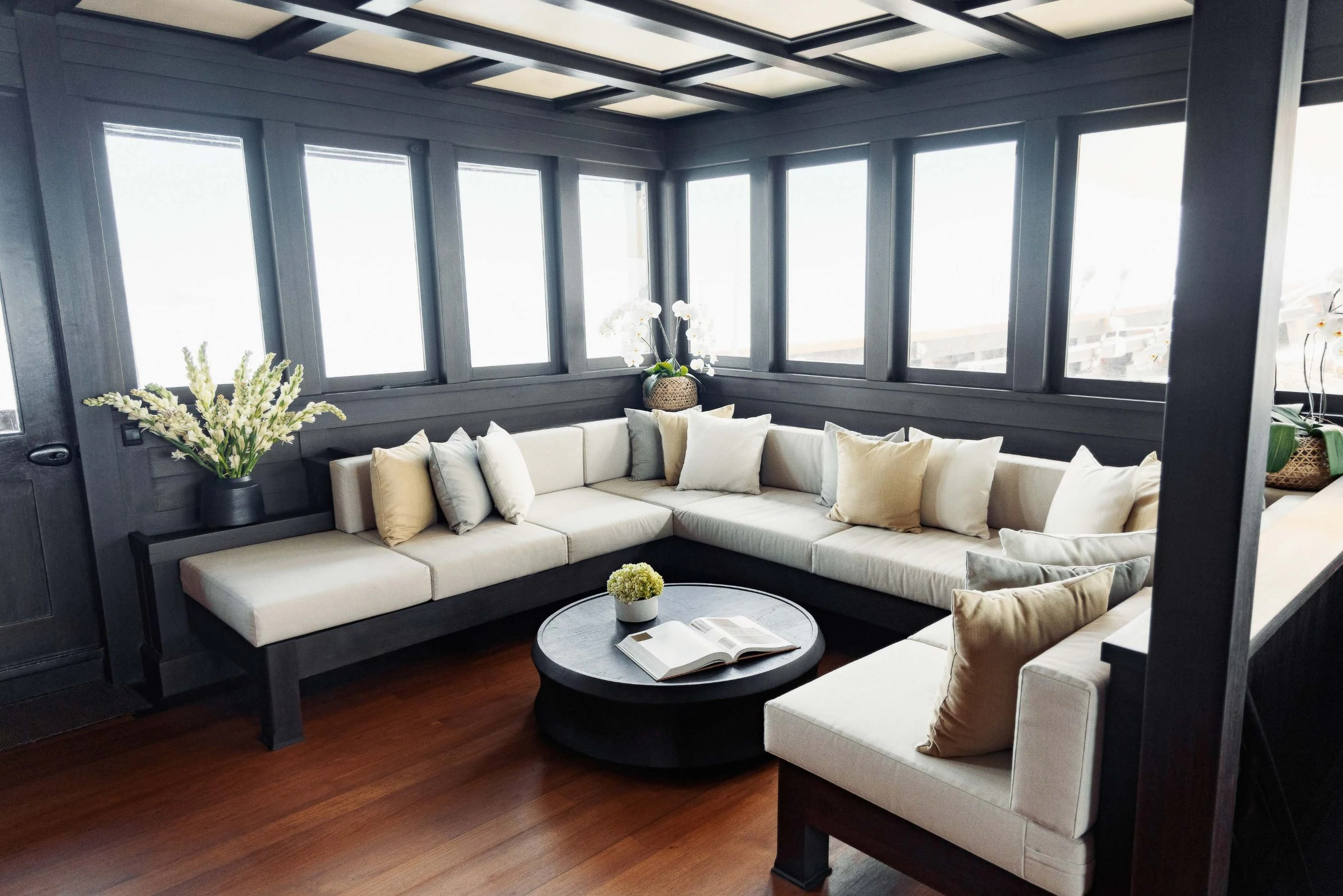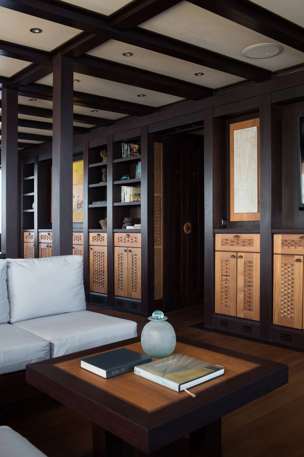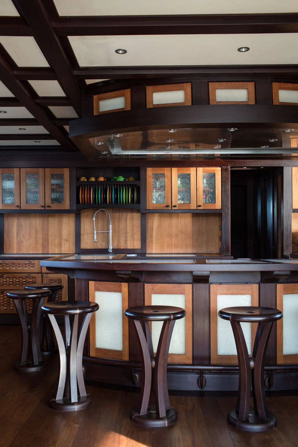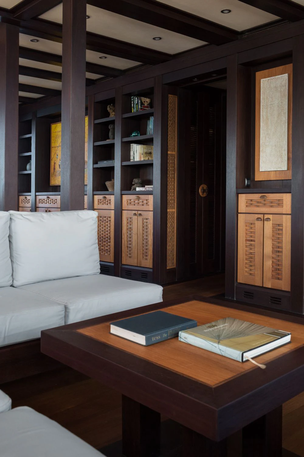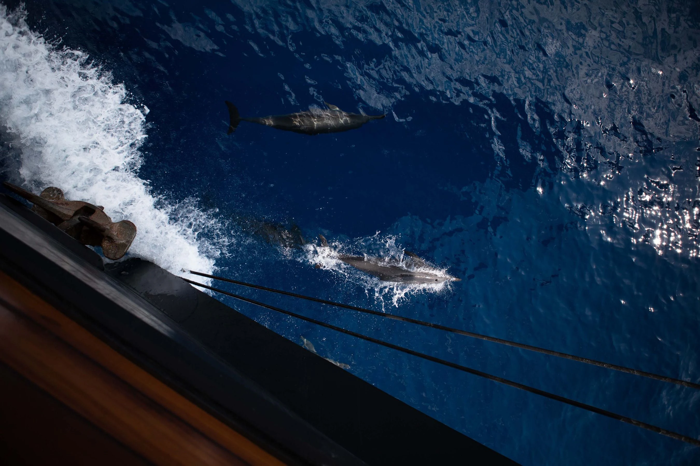 The lounge has a dining table for eight on port and a salon with comfortable sofas on starboard side. Underwater LED lights create amazing visual effects and attract all sorts of sea life.
