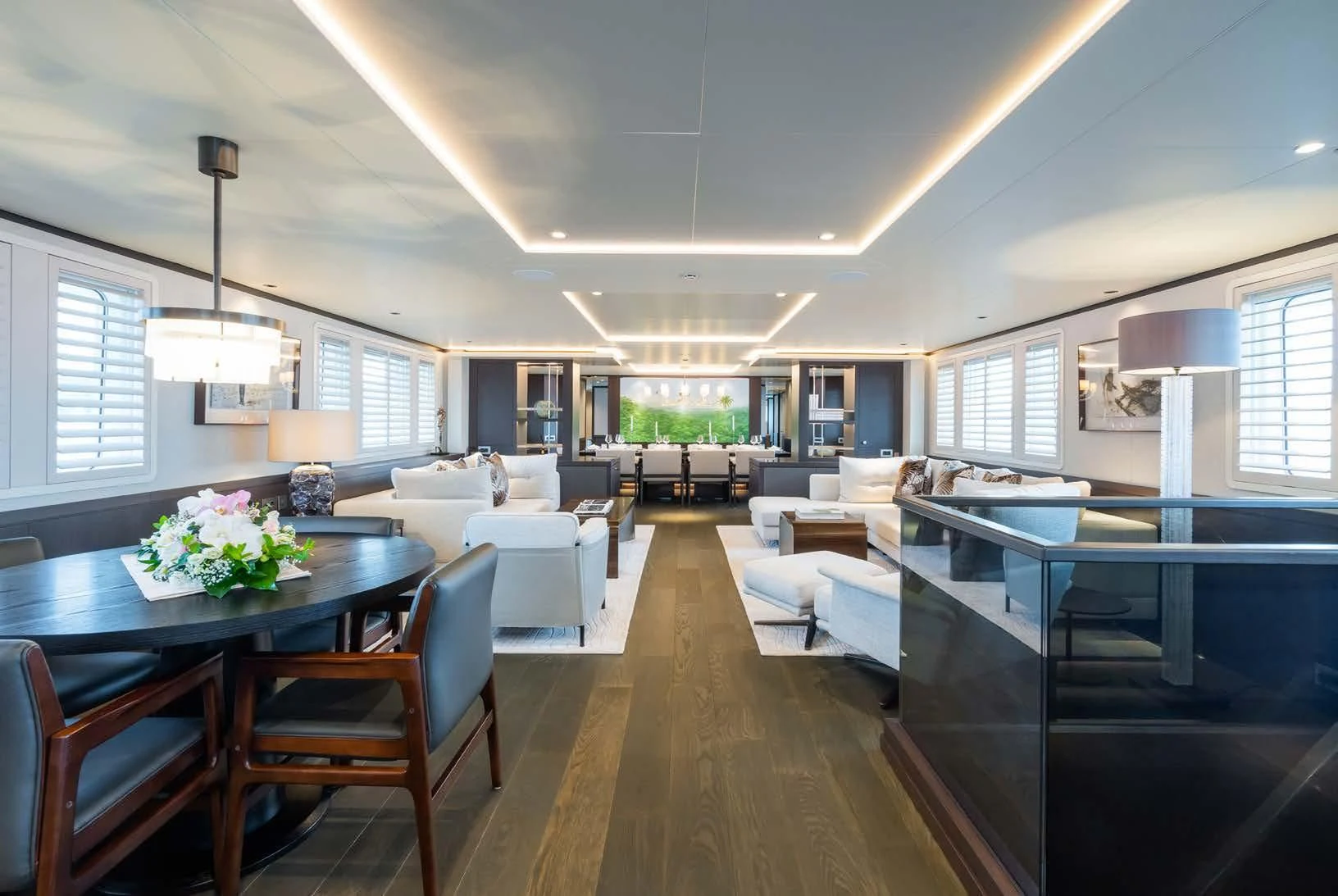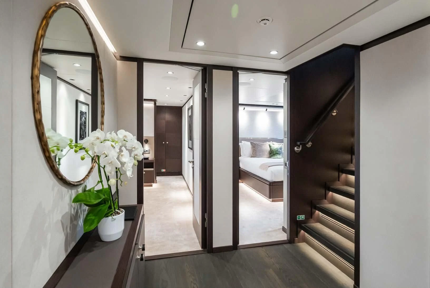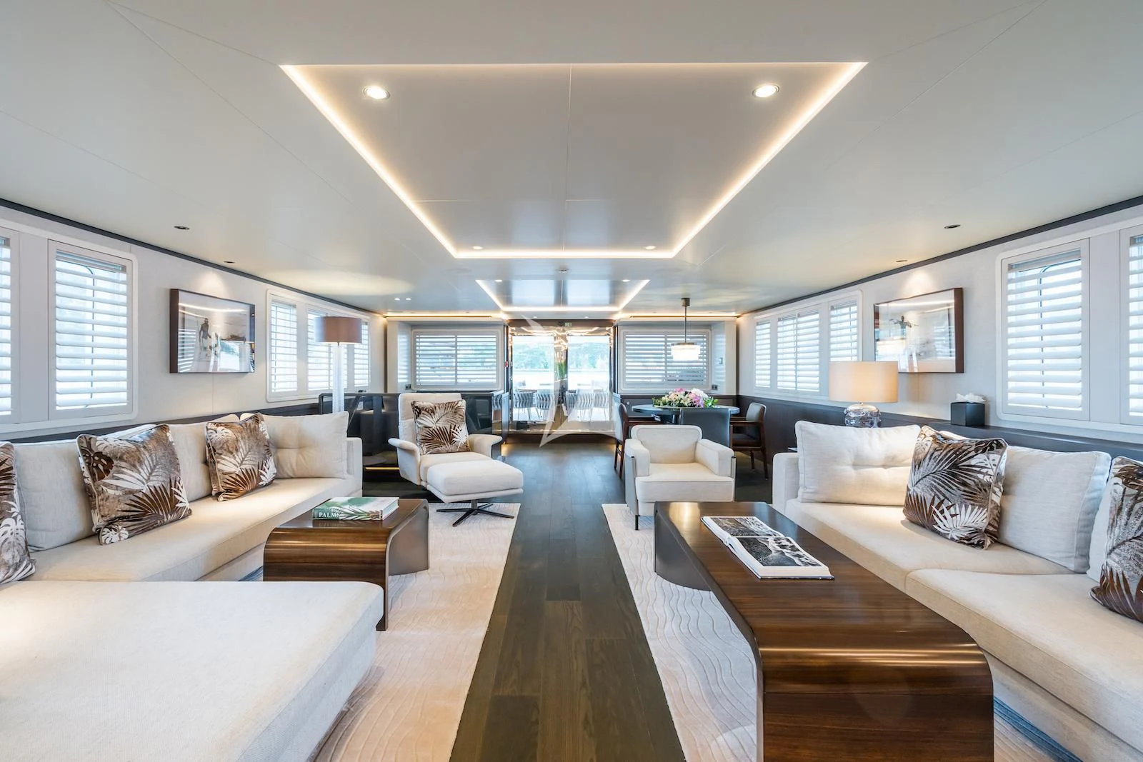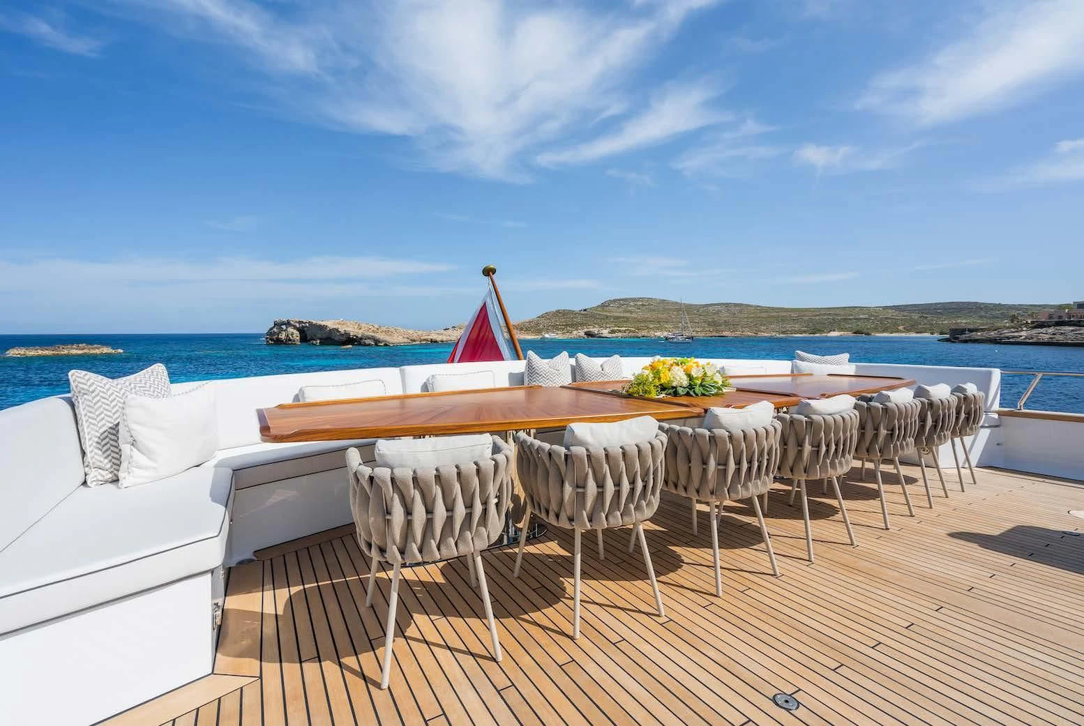 Social and entertaining areas are optimized on board EMERALD. Her deck areas are large and offer space for dining, sunbathing and lounging with friends. A Jacuzzi is ideal for lazy afternoons in the sun or for a soak under the stars. The crew of 10 is on hand at all times to serve up refreshments and cocktails. The interior of the yacht is highly sophisticated and stylish. Dramatic dark woods combine with pale soft-furnishings for a monochrome effect. A refit in 2023 took the yacht to even higher levels of excellence.