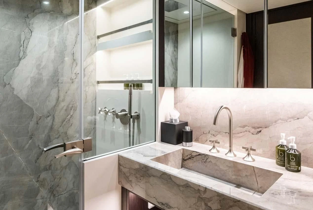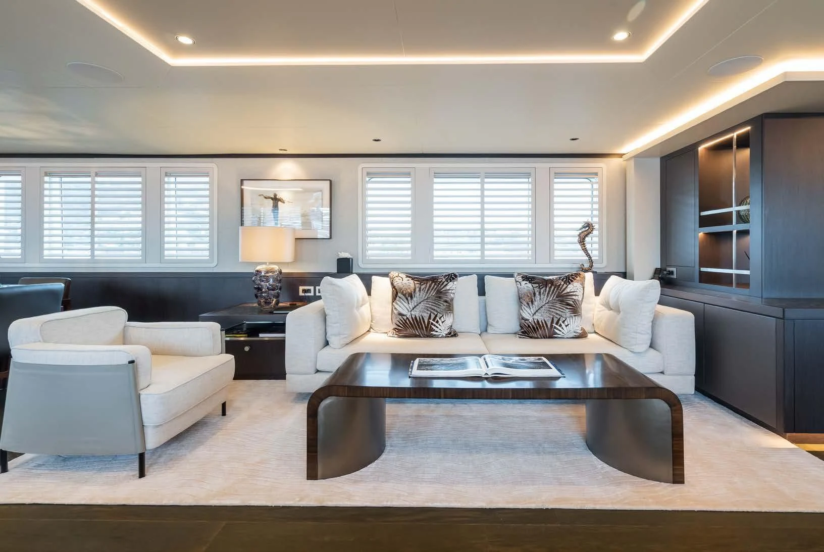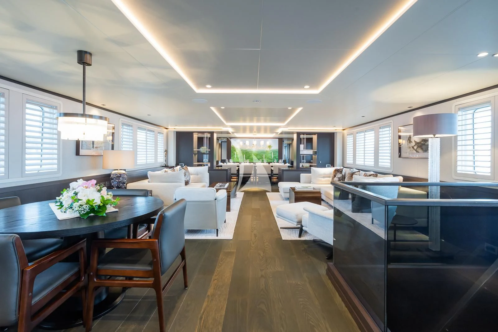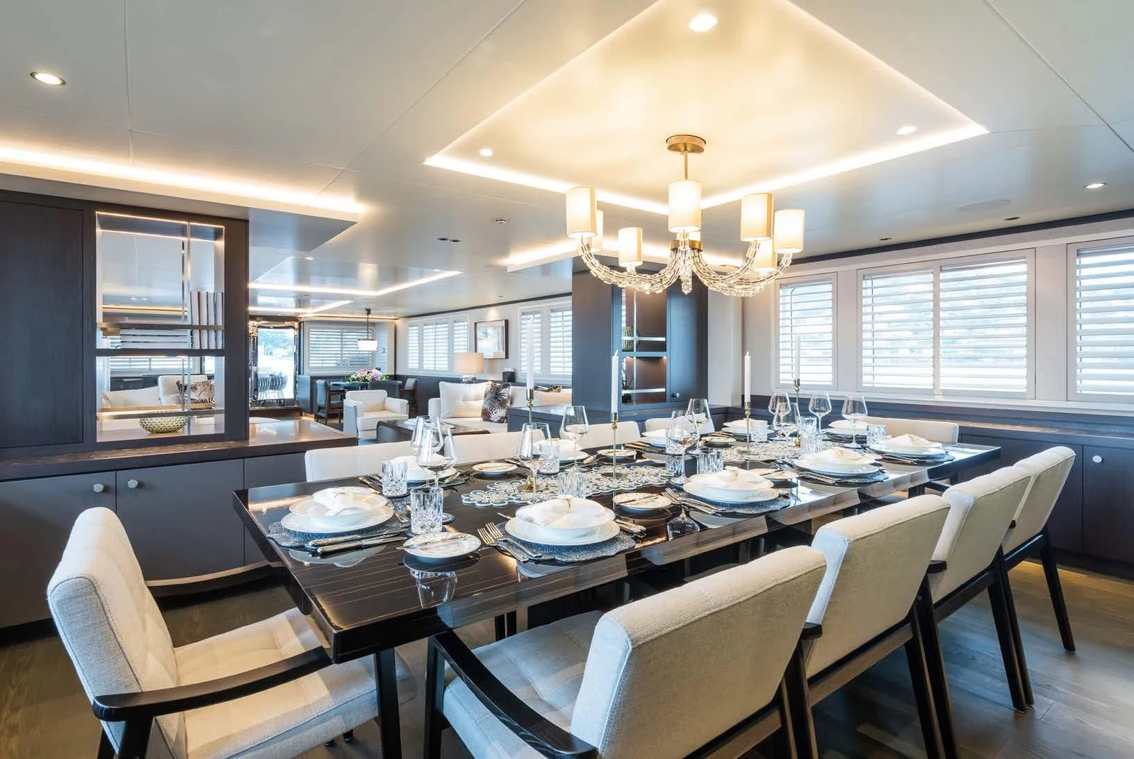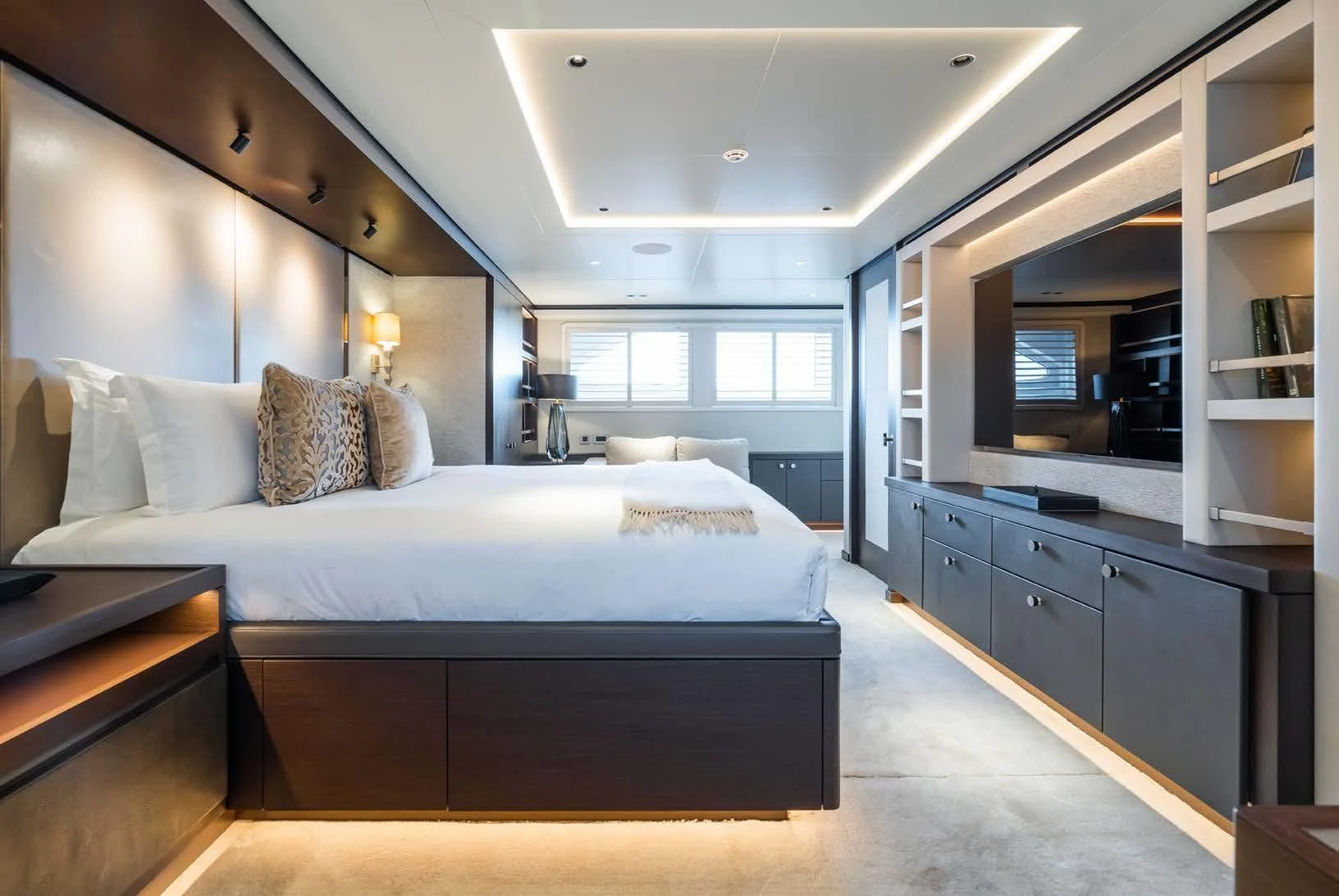 Social and entertaining areas are optimized on board EMERALD. Her deck areas are large and offer space for dining, sunbathing and lounging with friends. A Jacuzzi is ideal for lazy afternoons in the sun or for a soak under the stars. The crew of 10 is on hand at all times to serve up refreshments and cocktails. The interior of the yacht is highly sophisticated and stylish. Dramatic dark woods combine with pale soft-furnishings for a monochrome effect. A refit in 2023 took the yacht to even higher levels of excellence.