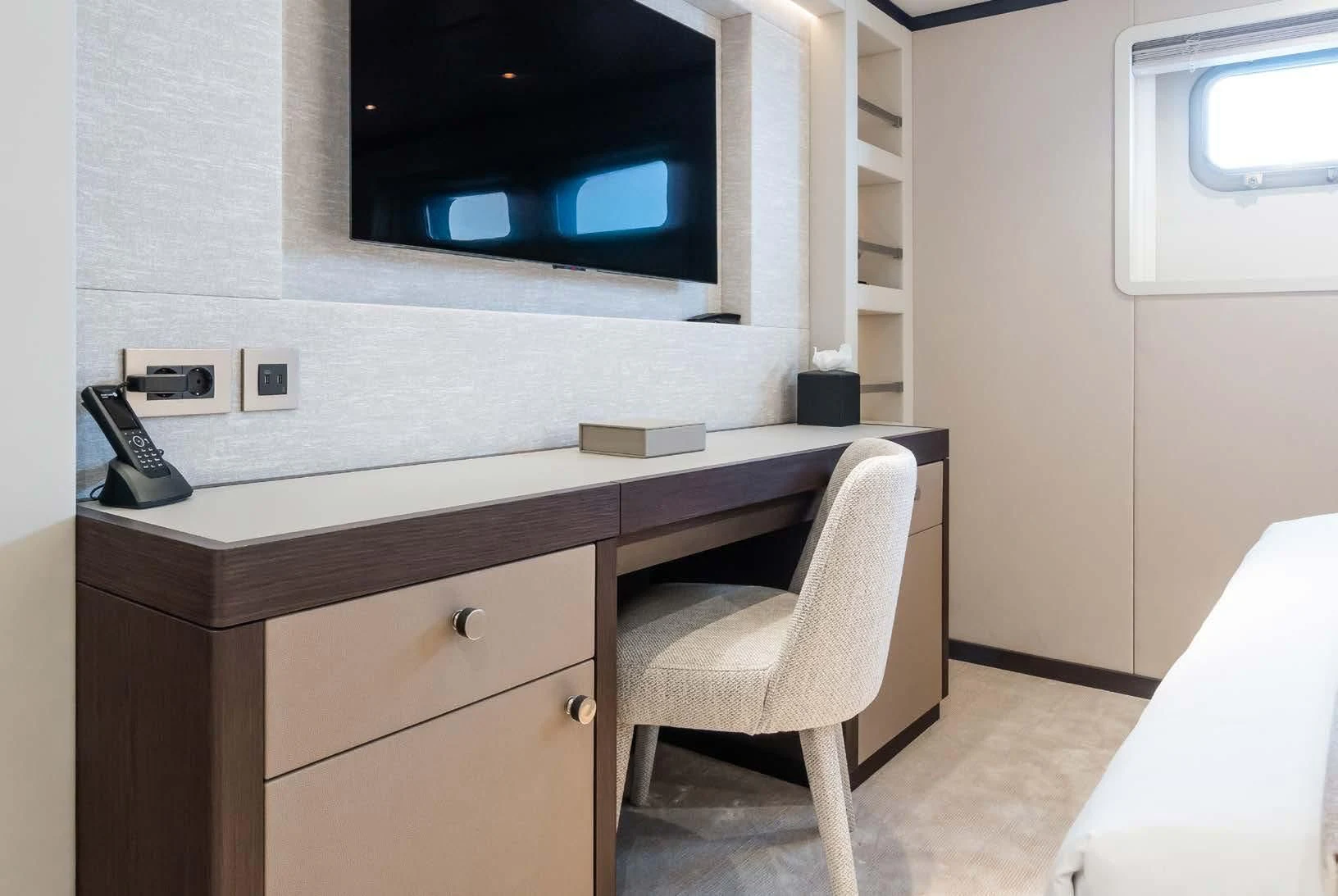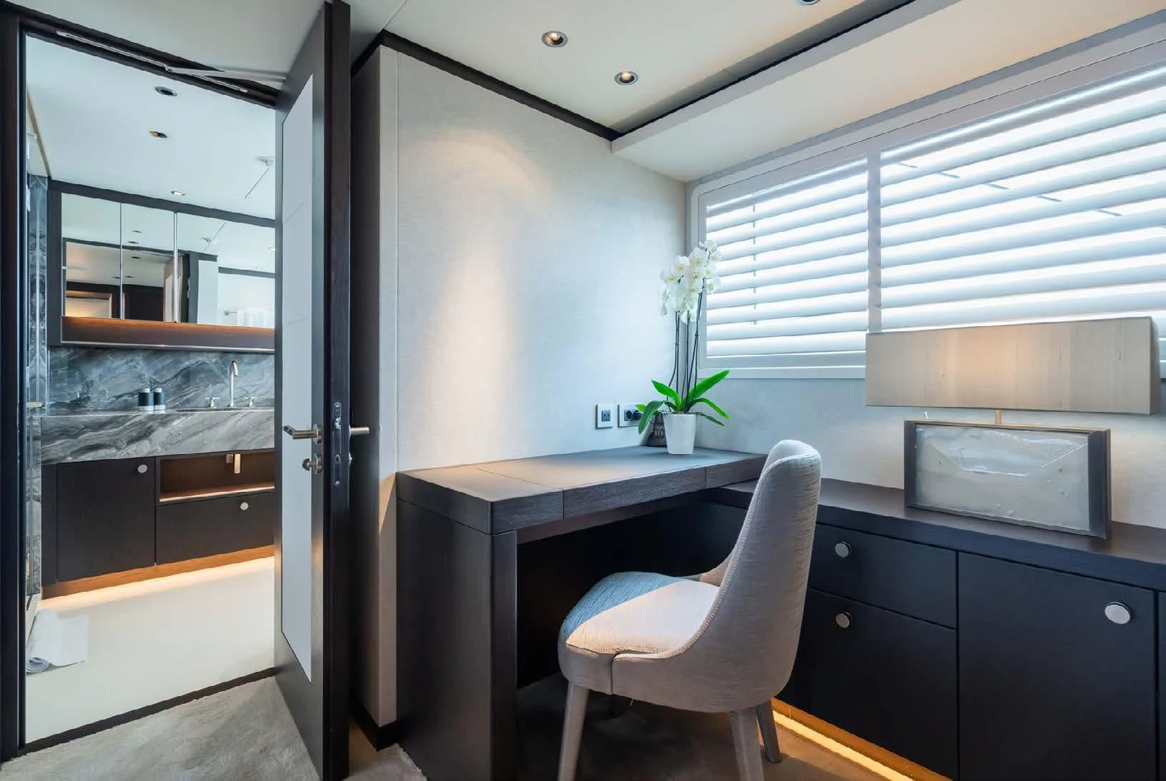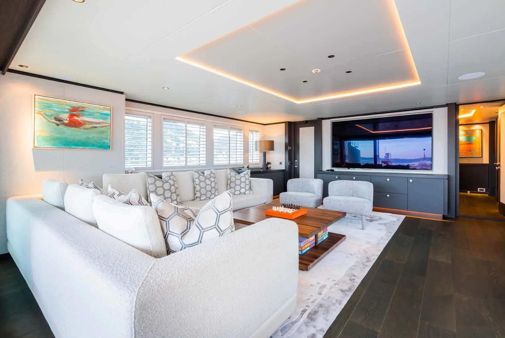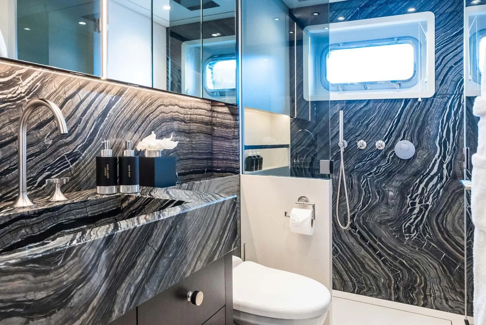 Social and entertaining areas are optimized on board EMERALD. Her deck areas are large and offer space for dining, sunbathing and lounging with friends. A Jacuzzi is ideal for lazy afternoons in the sun or for a soak under the stars. The crew of 10 is on hand at all times to serve up refreshments and cocktails. The interior of the yacht is highly sophisticated and stylish. Dramatic dark woods combine with pale soft-furnishings for a monochrome effect. A refit in 2023 took the yacht to even higher levels of excellence.