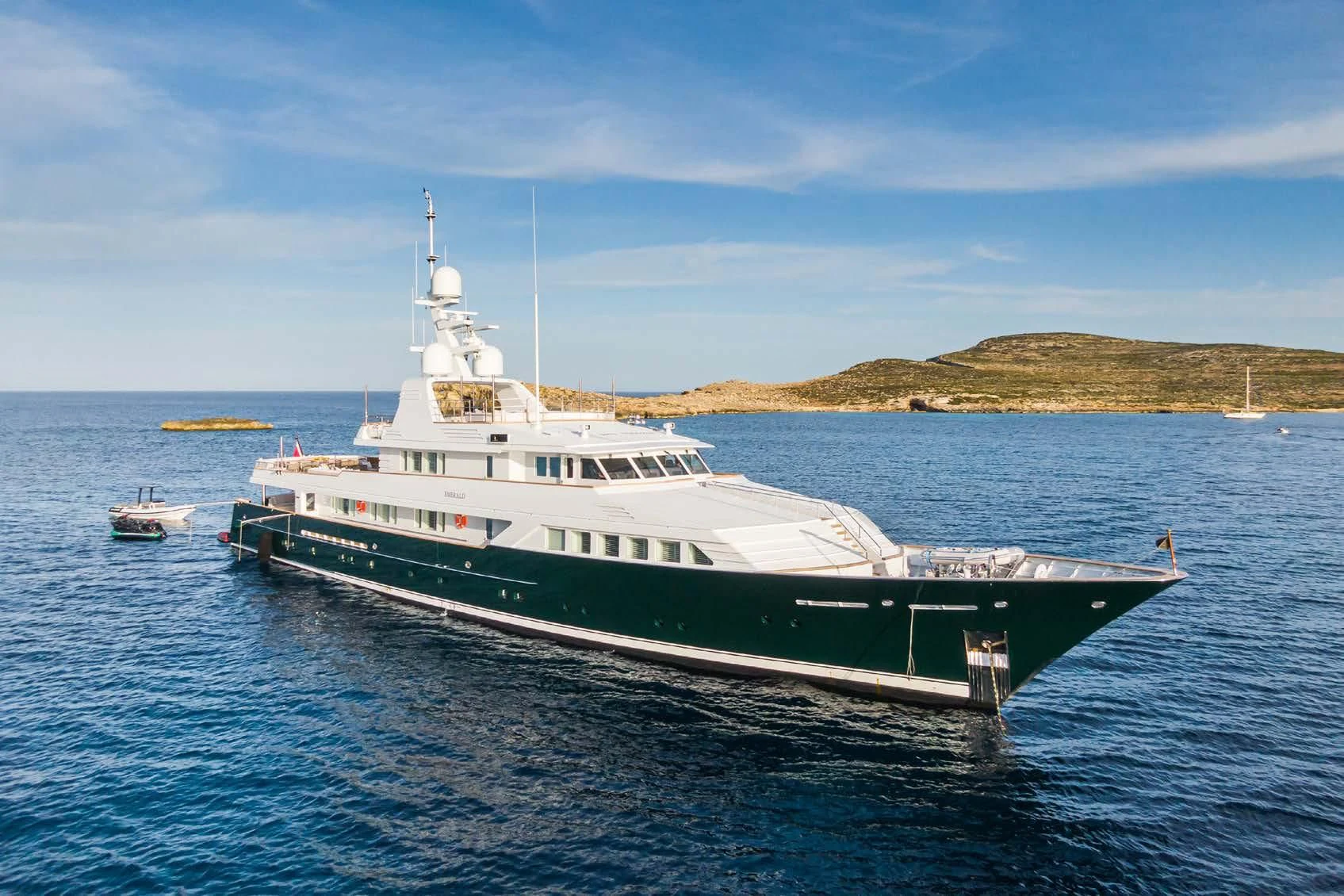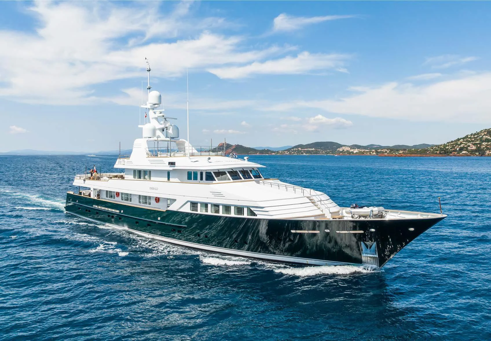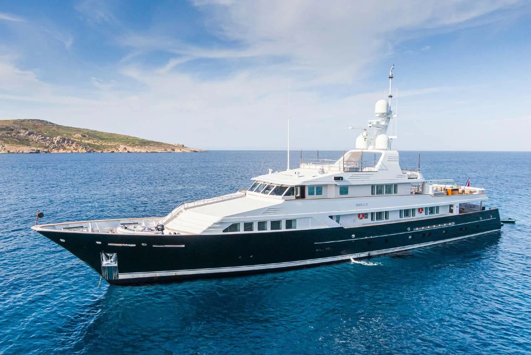 EMERALD was launched from Dutch shipyard Feadship in 1990. Previously called MARION QUEEN, she offers all the discerning charterer could desire. Her exterior design comes from De Voogt, with interior design from Robert Knack International. She has an overall length of 165'4" (50.4m) and a draft of 8'1" (2.7m), cruising steadily at 12 knots. The 12 guests sleep in six elegant staterooms, and the arrangement is one master, one VIP, two double staterooms and two twins. She appeals to both family groups and parties of friends.