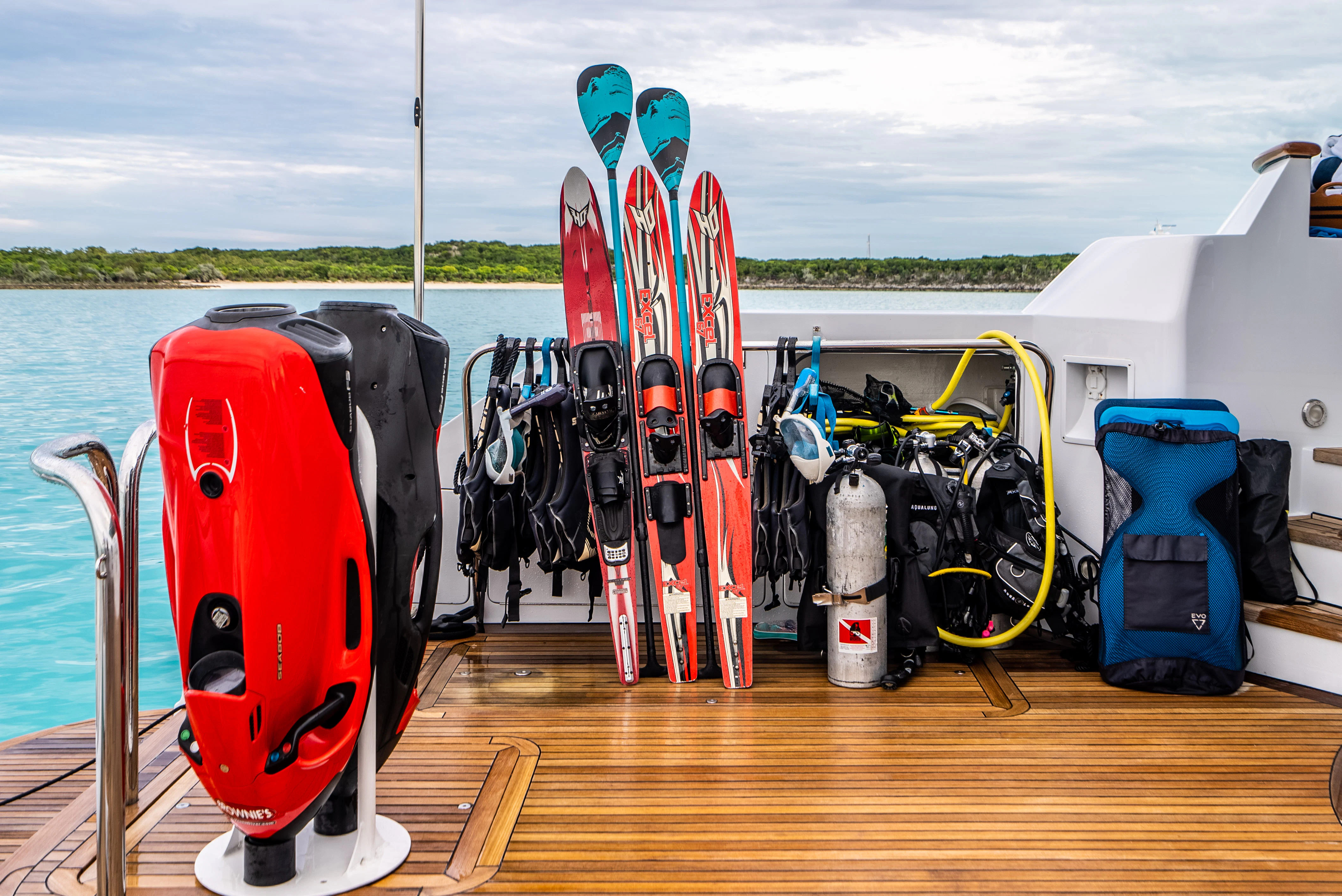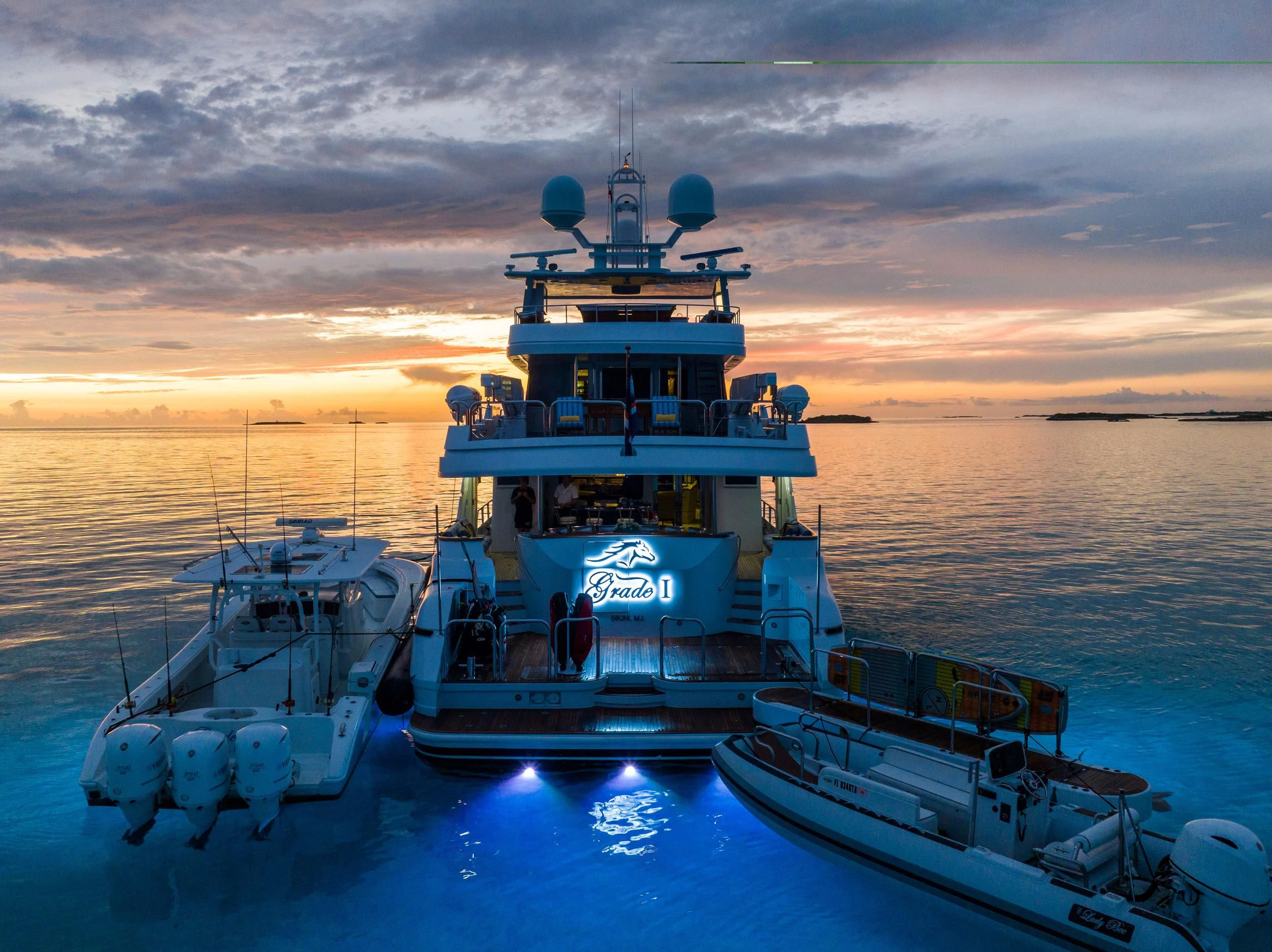 GRADE I is well known in her Caribbean cruising grounds and it the ideal choice for exploring the stunning destinations in the region. Her extended swimming platform allows guests to dive into the crystal waters and make the most of GRADE I’s arsenal of toys including her 42’ Yellow Fin center console and 19’ Novurania Tender and 3 Sea-Doo WaveRunners. She also counts scuba diving equipment and 2 Seabobs in her arsenal along with a raft of towable toys, water skis, snorkelling kit and everything needed for deep sea fishing adventures.