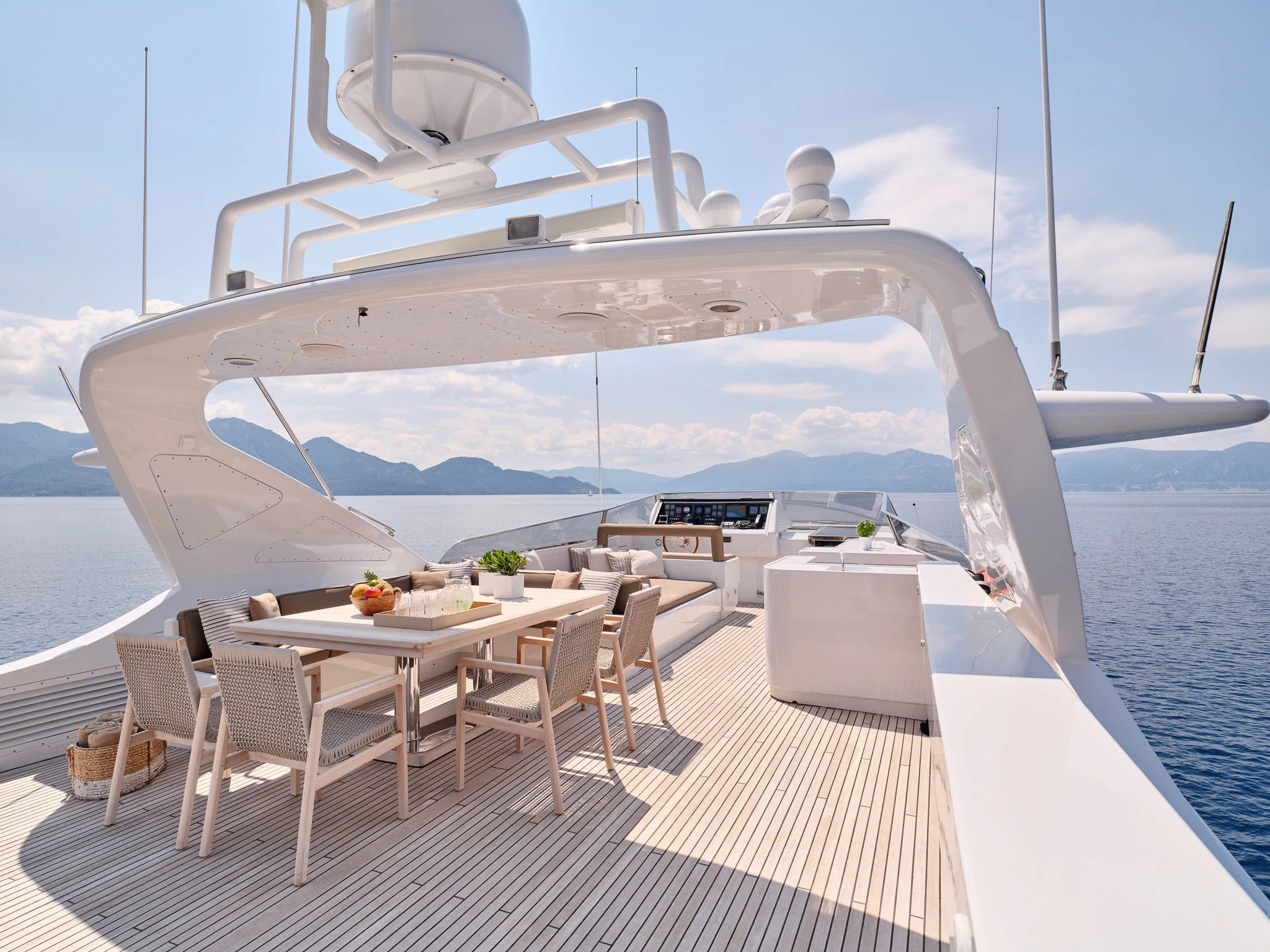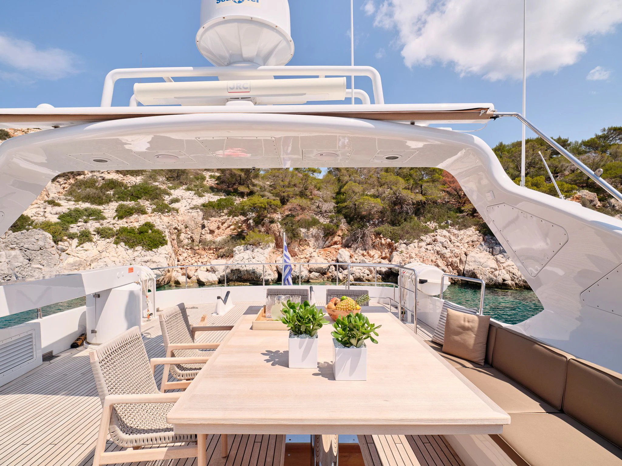 Sleek and sporty, the 120.73-foot (36.8m) HELIOS is asmart choice for stylish charters in the stunning Greek islands. French designed and built in 2009, HELIOS is a pedigree Couach 3700 Fly featuring a high-performance hull and twin 2730 horsepower engines for comfortable cruising at 26 knots and an exhilarating top speed of 30 knots. She’s ideal for hopscotching from one destination to the next allowing guests to pack in as much as they can even on the tightest schedule. Having completed a bow to stern refit in 2020, HELIOS is in top-notch condition coupling her impressive performance with all first-class amenities you would expect from a luxurious charter vessel.