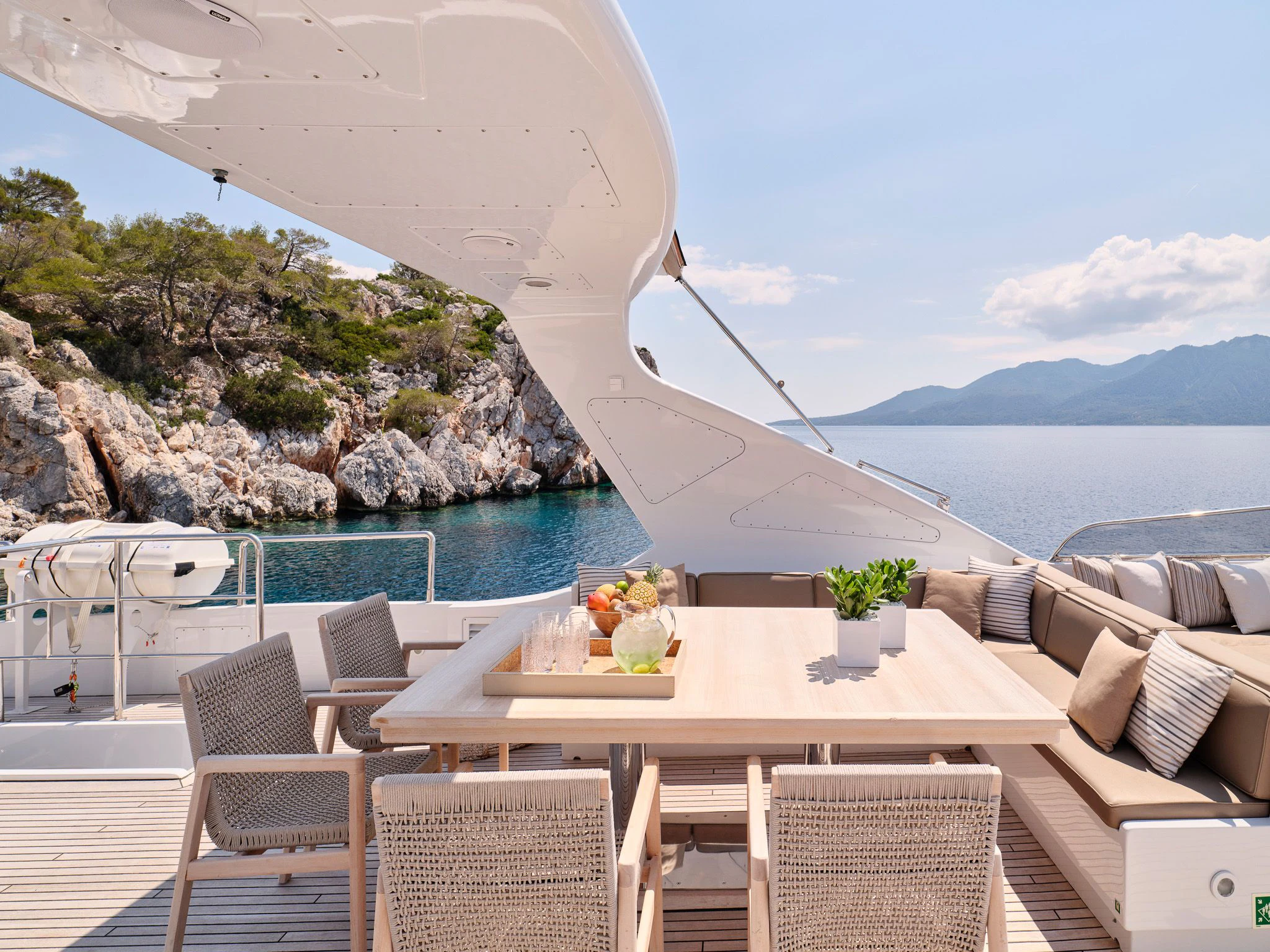Back on the main deck, there is a lovely spot for breakfast and morning coffee
