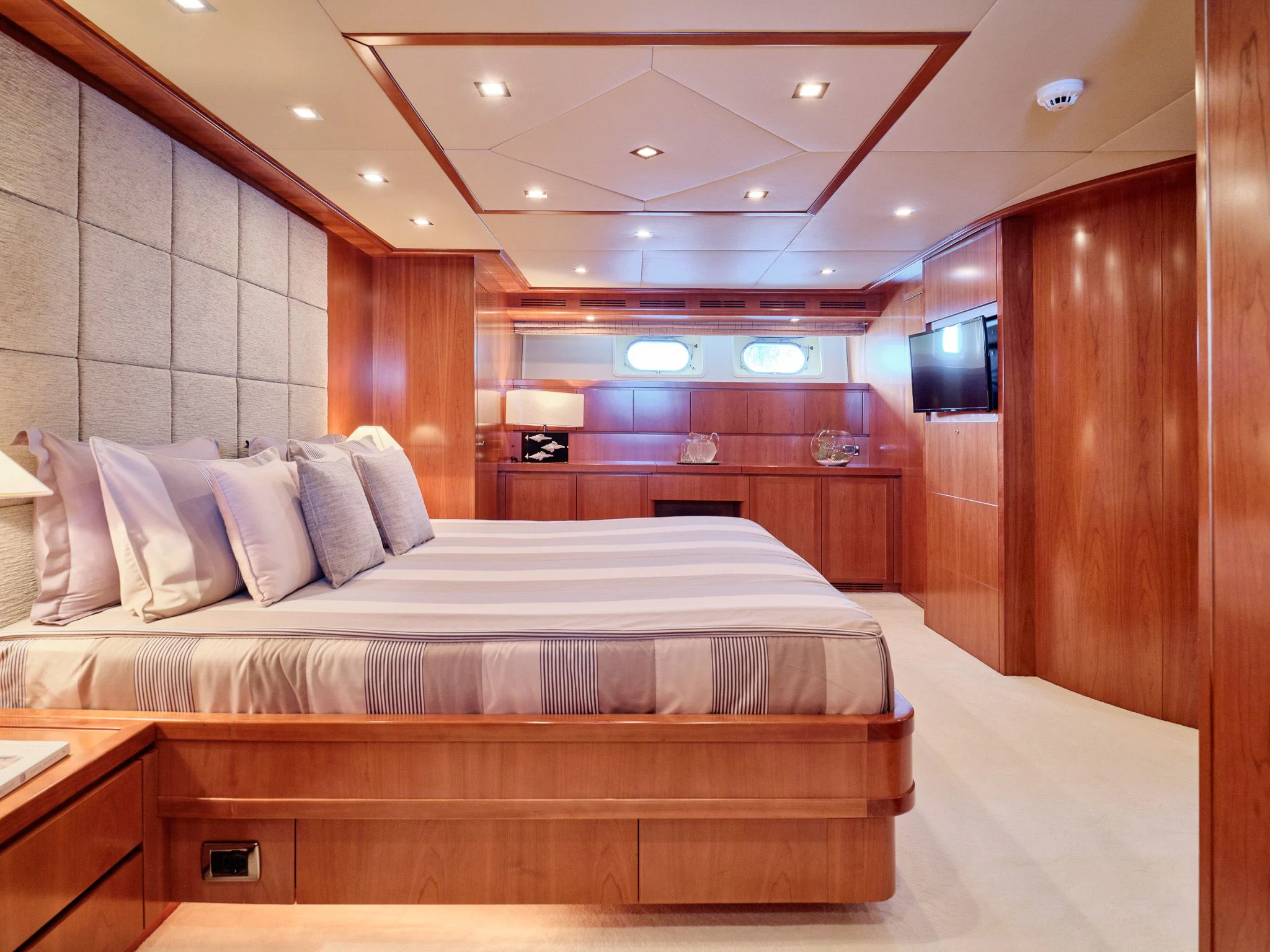 VIP suite with queen size bed on the main deck forward of the salon. All of the