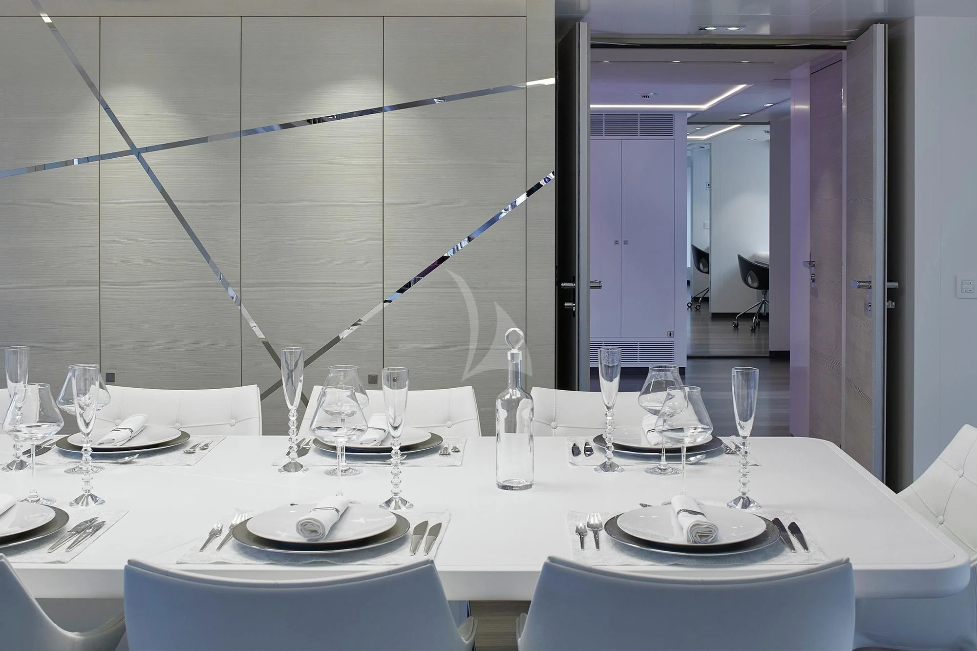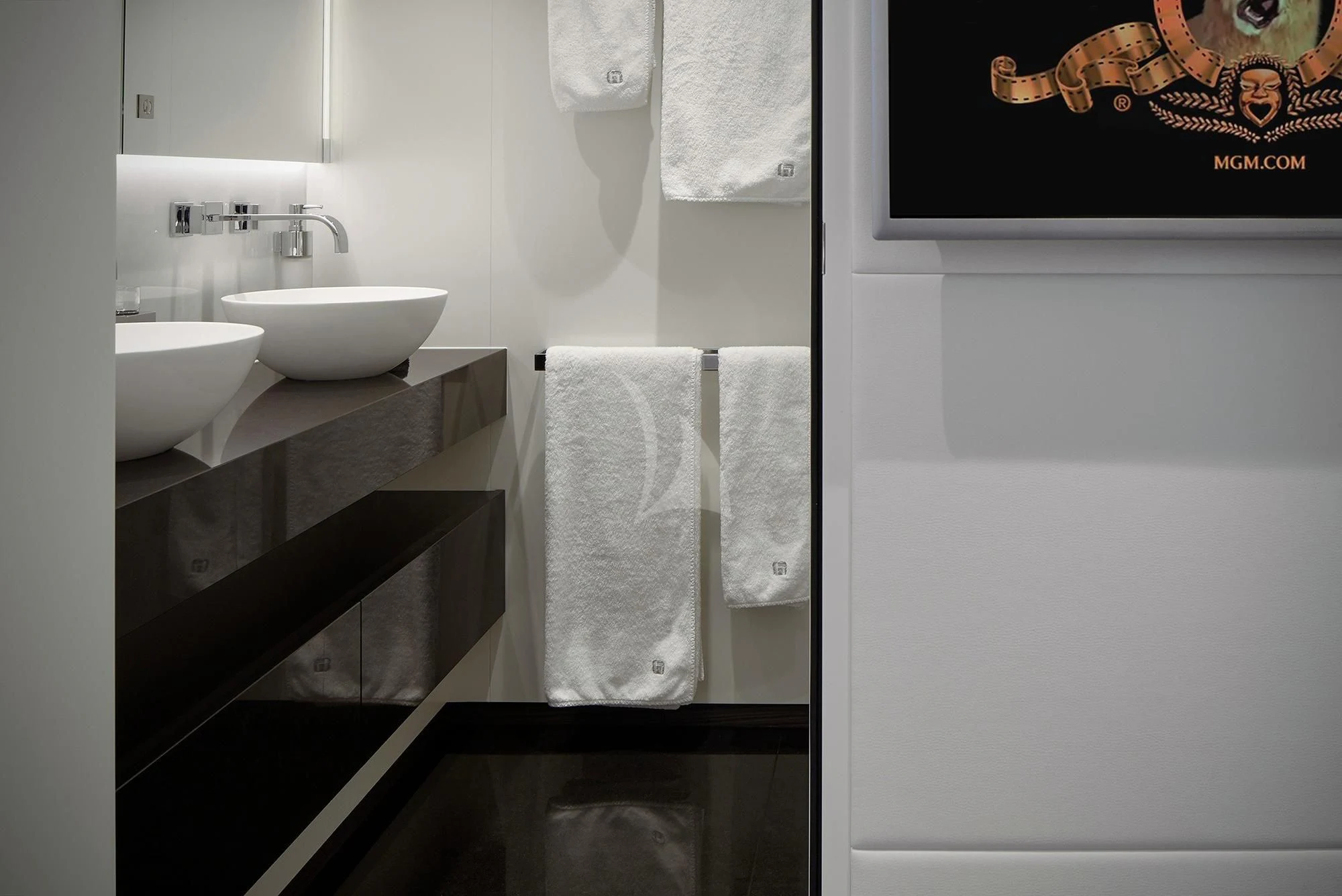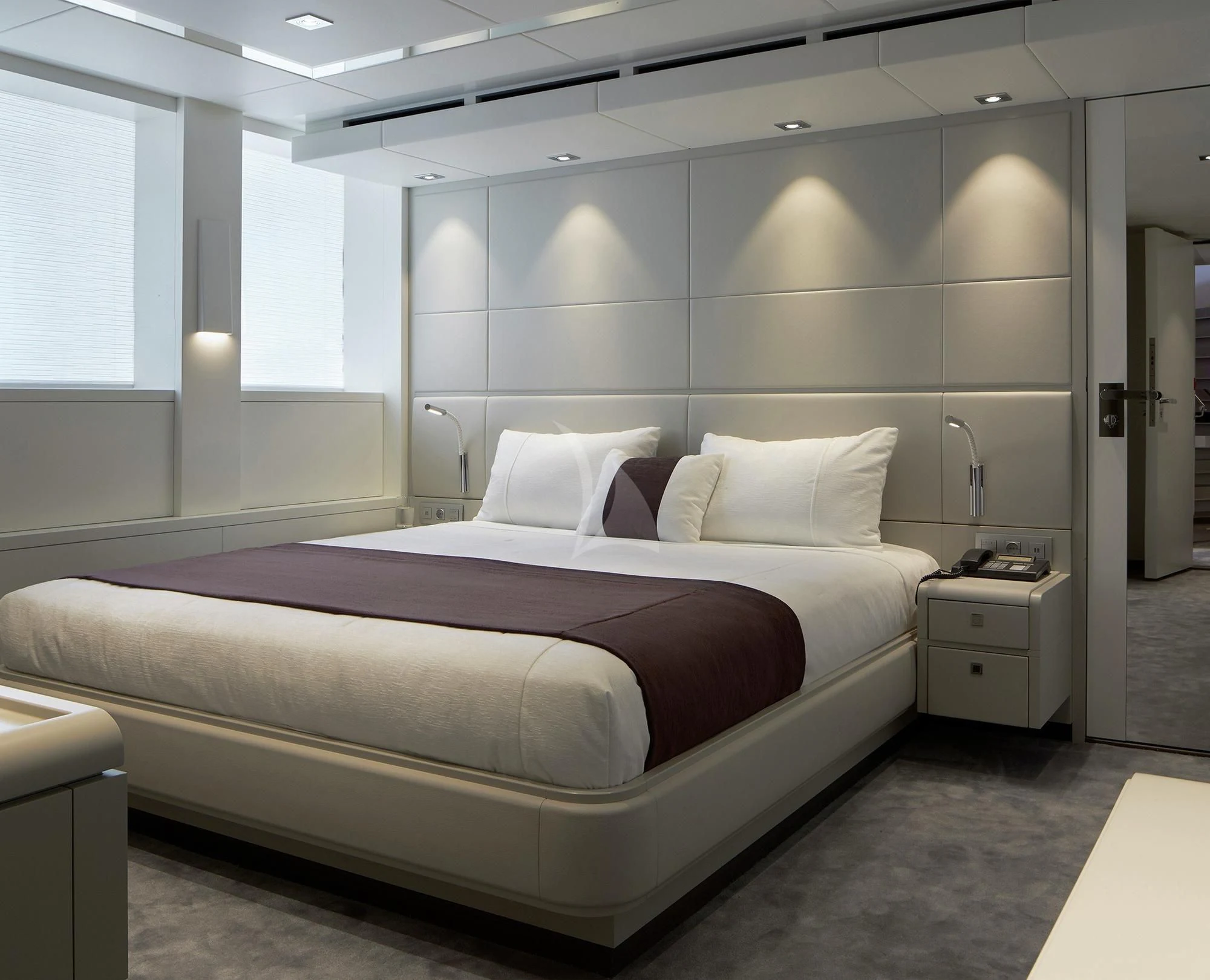 HOME welcomes up to 12 guests in six lavish staterooms. She has a full-beam master suite with an owner’s office, a VIP stateroom, two doubles and two twin cabins. Each stateroom features an en-suite bathroom and designer bath goods.