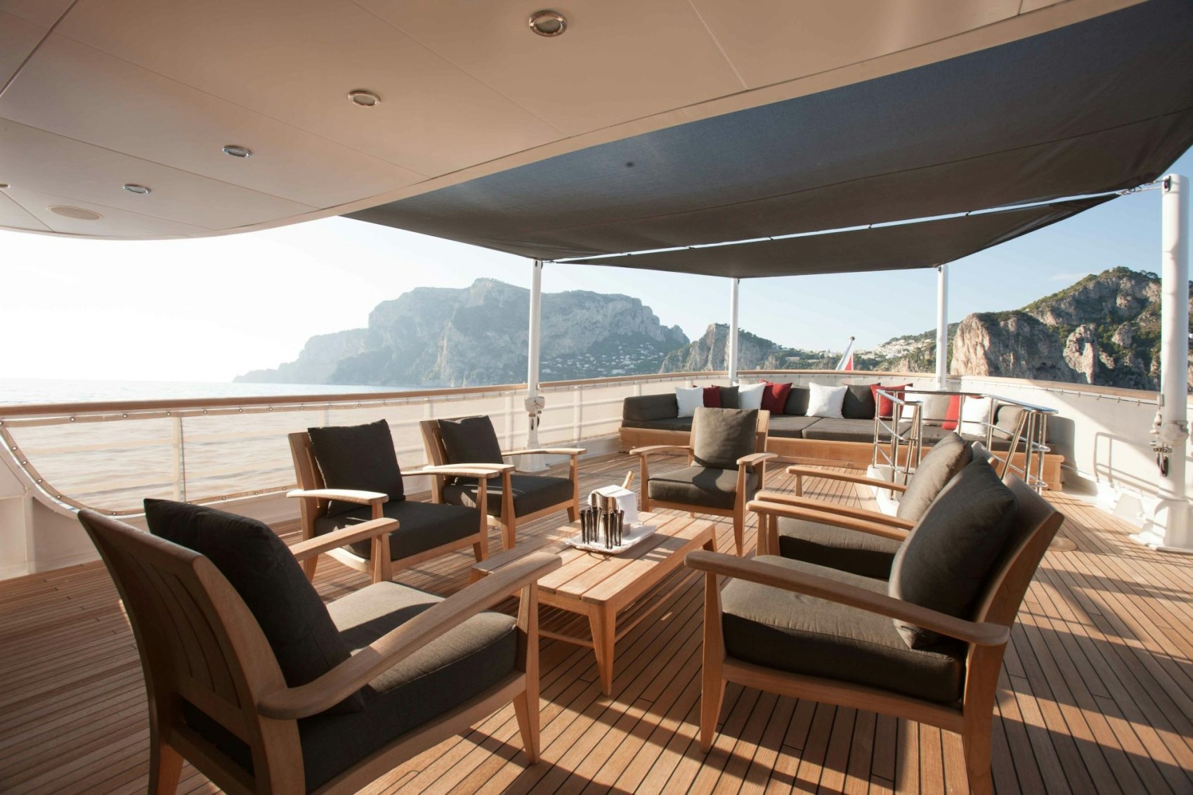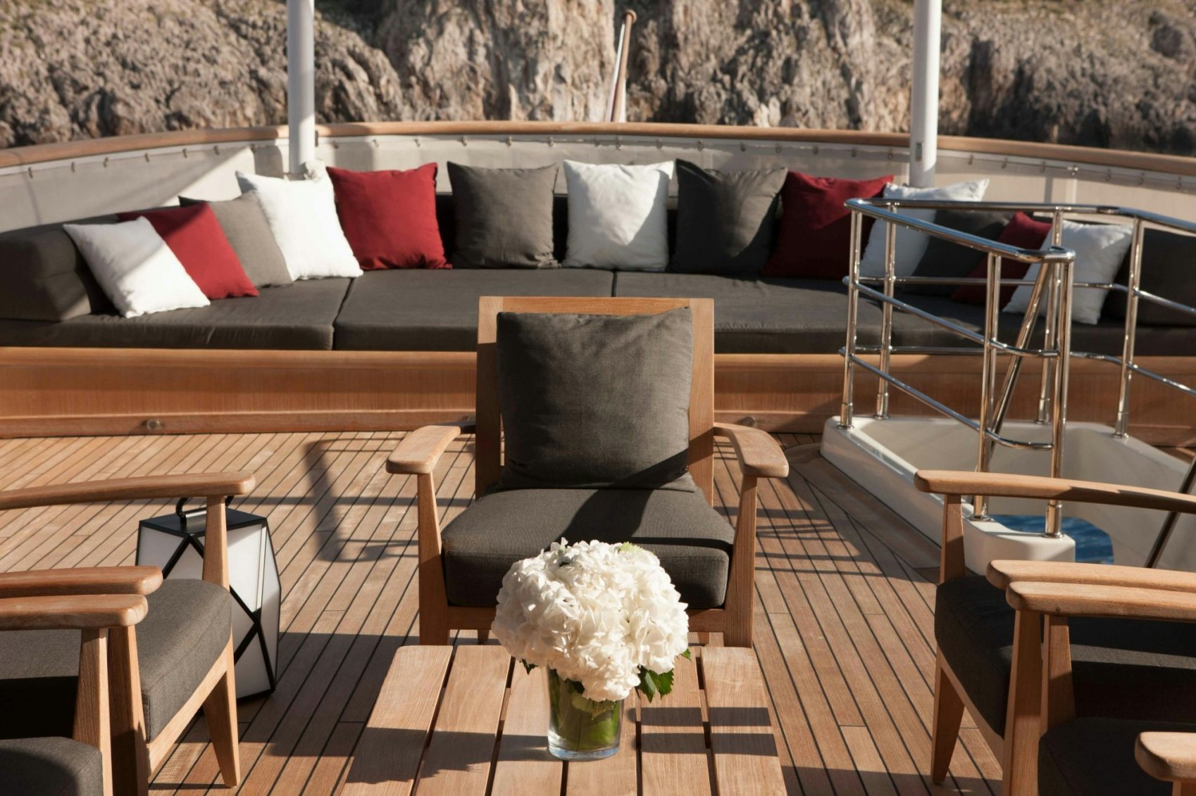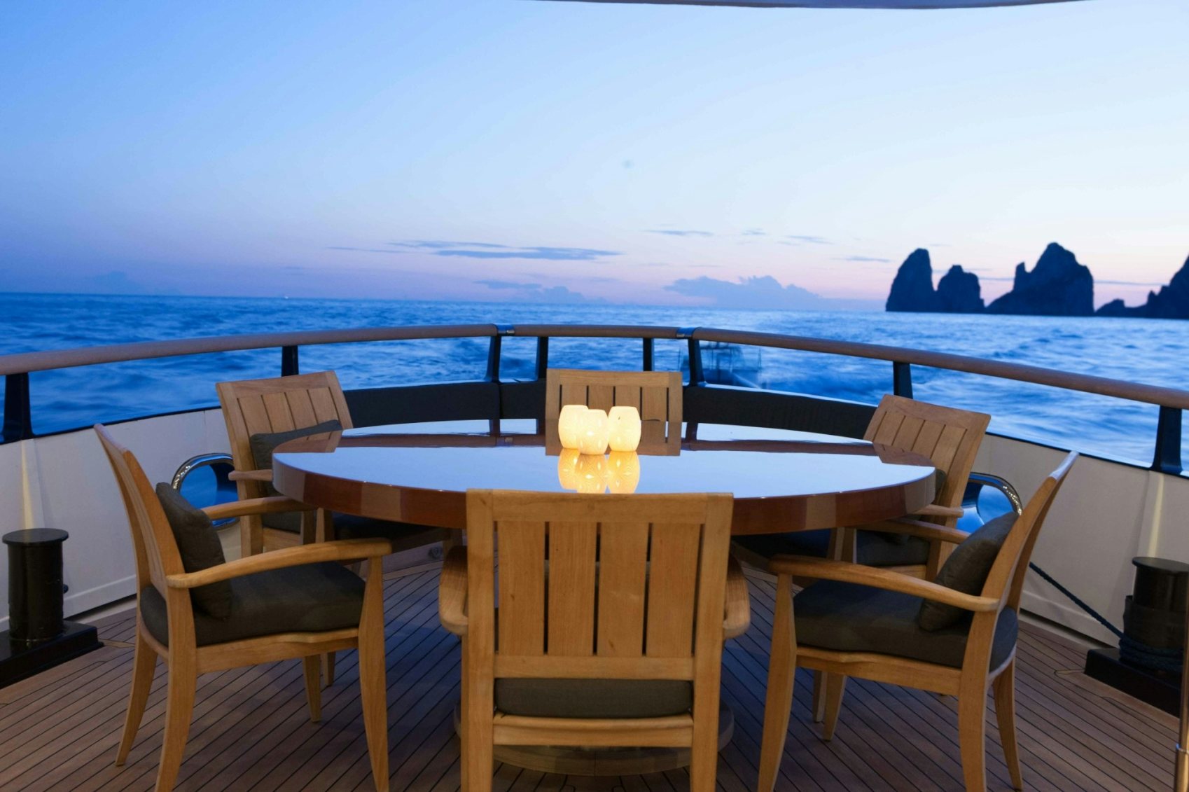 Designed by Jean-Guy Verges, the yacht’s elegant interior showcases a timeless styling. ICE LADY offers a welcoming ambiance and modern comfort with sumptuous furnishings and plush seating areas. Charter guests will relish their time inside socializing, dining and relaxing.