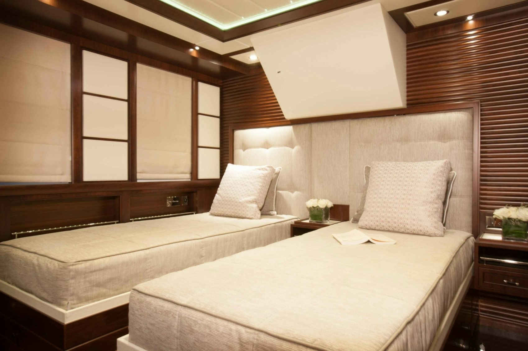 Superyacht ICE LADY offers five staterooms for a maximum of 10 guests. Each stateroom is the perfect private retreat after a fun-filled day enjoying the sights ashore and the yacht’s watersports. The yacht features a sumptuous main-deck master stateroom complete with a king-size bed, a dressing area, a desk and a spacious en-suite bathroom with a shower and bath. The yacht’s additional staterooms include a VIP with a queen-size bed, a double-bed stateroom, a twin stateroom, which converts into a double and a smaller stateroom with two bunk beds. ICE LADY is baby friendly offering a baby cot, baby park and a baby pool.