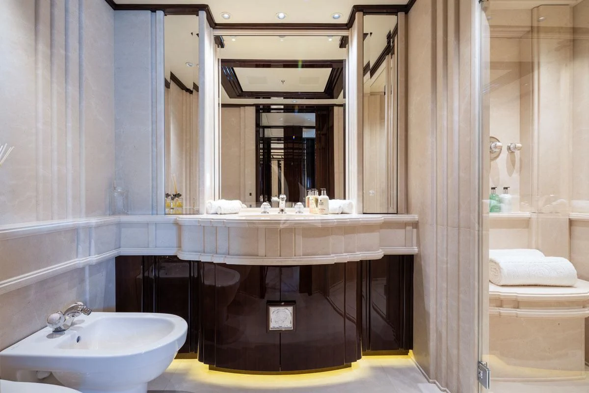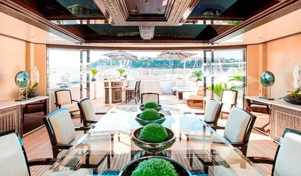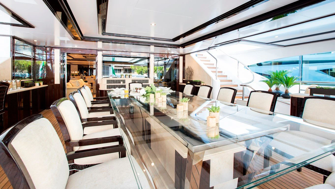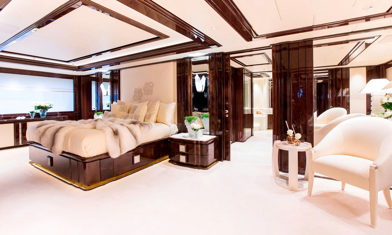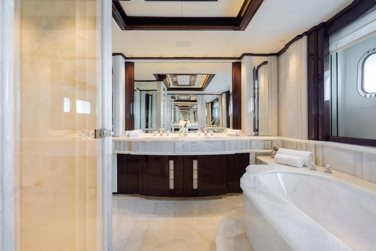ILLUSION V boasts contemporary elegance with a homelike ambiance throughout. Designed by Green and Mingarelli, the superyacht’s rich interior has exquisite attention to detail featuring striking materials, such as onyx, parchment, Lalique crystal, walnut and silks. Charter guests will relish the relaxed atmosphere that is complemented by an abundance of natural light from the yacht’s large windows.