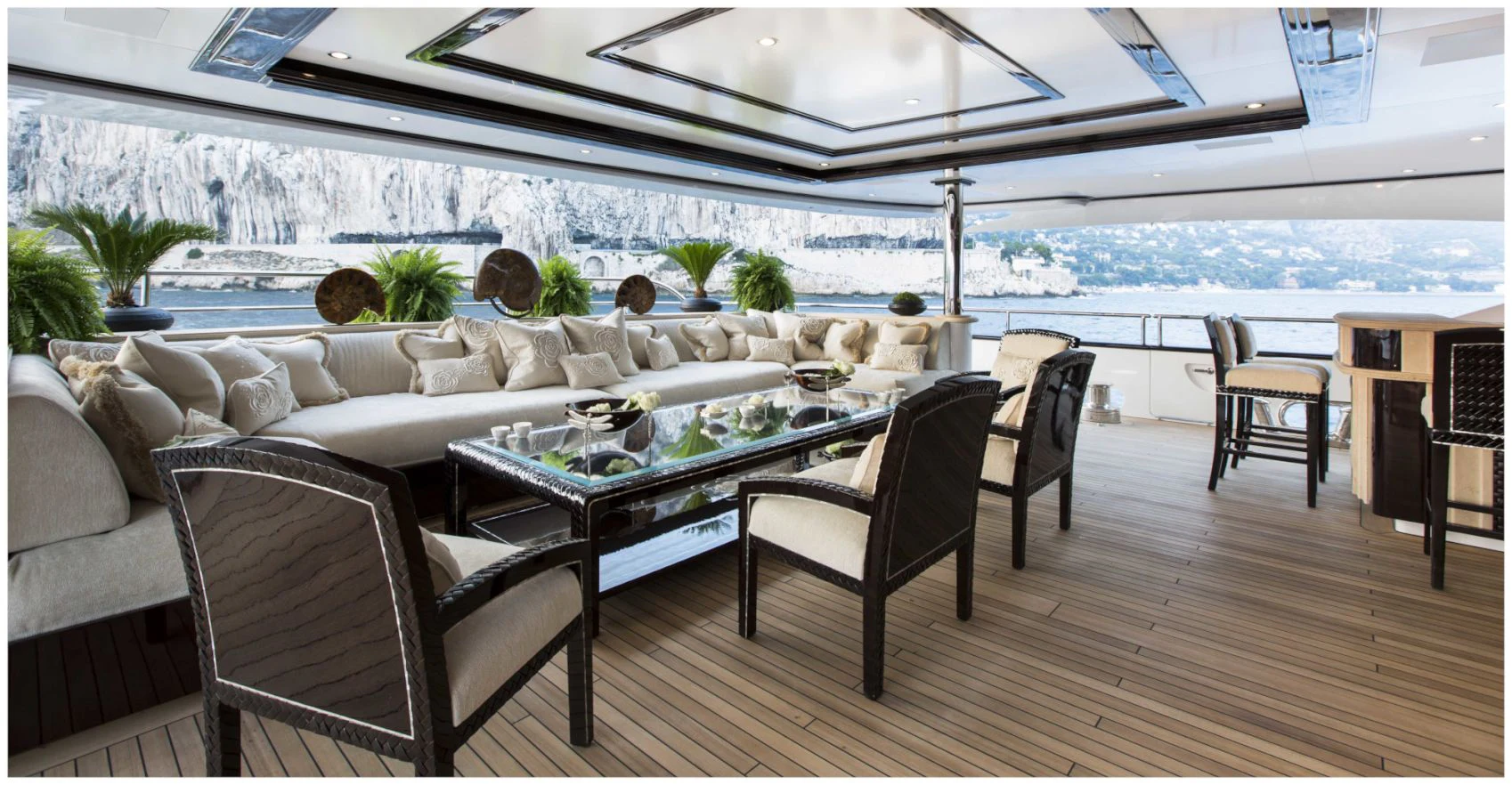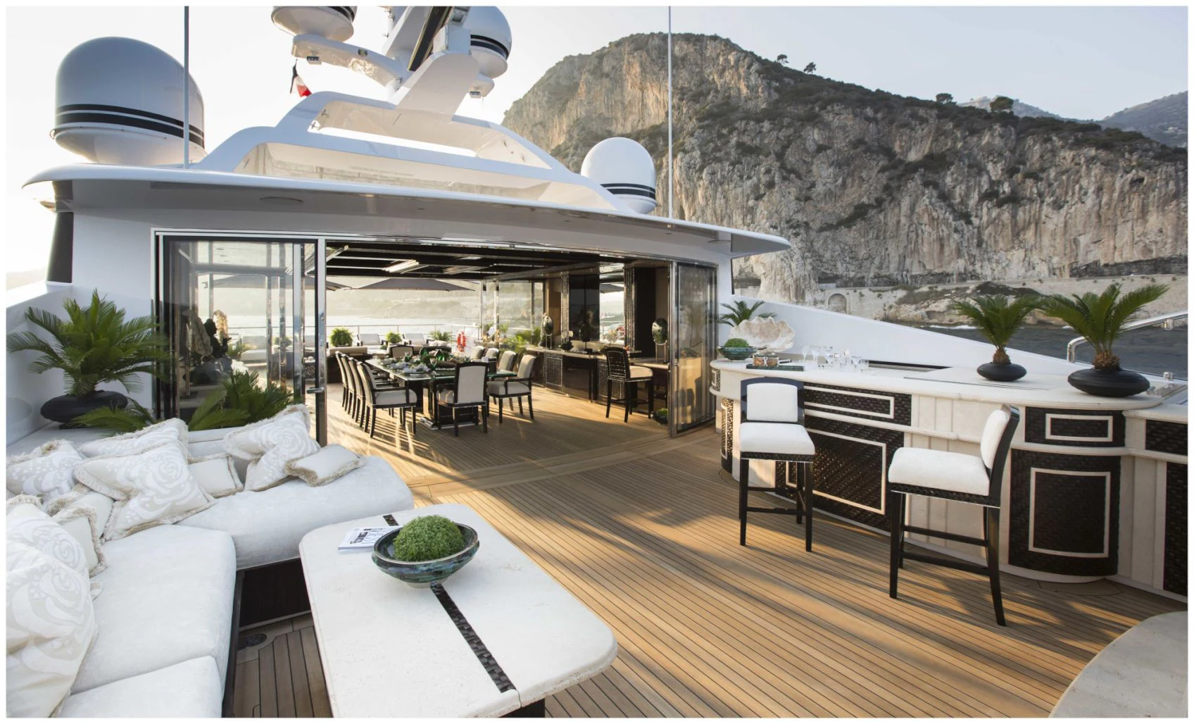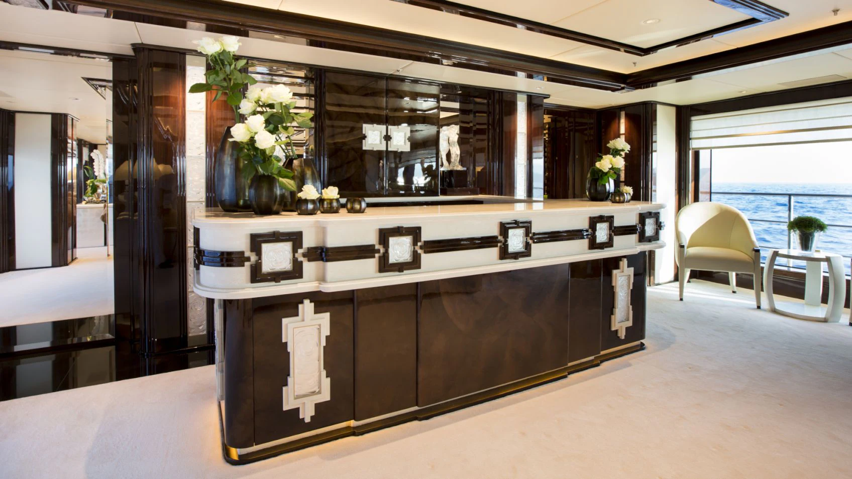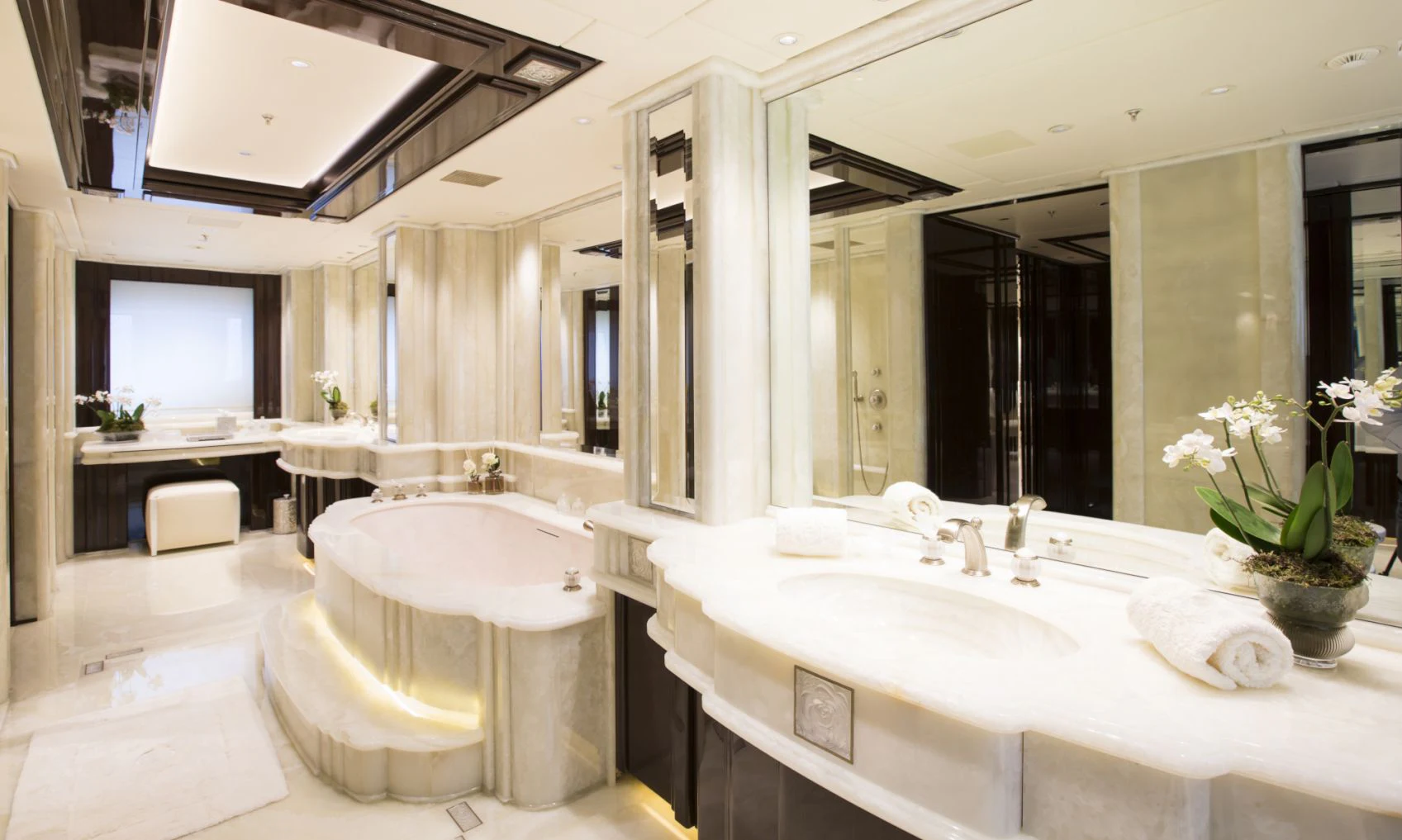 ILLUSION V boasts contemporary elegance with a homelike ambiance throughout. Designed by Green and Mingarelli, the superyacht’s rich interior has exquisite attention to detail featuring striking materials, such as onyx, parchment, Lalique crystal, walnut and silks. Charter guests will relish the relaxed atmosphere that is complemented by an abundance of natural light from the yacht’s large windows.