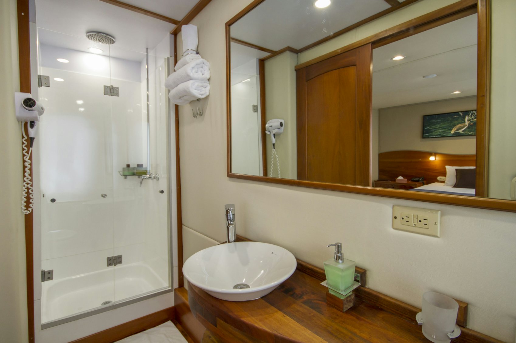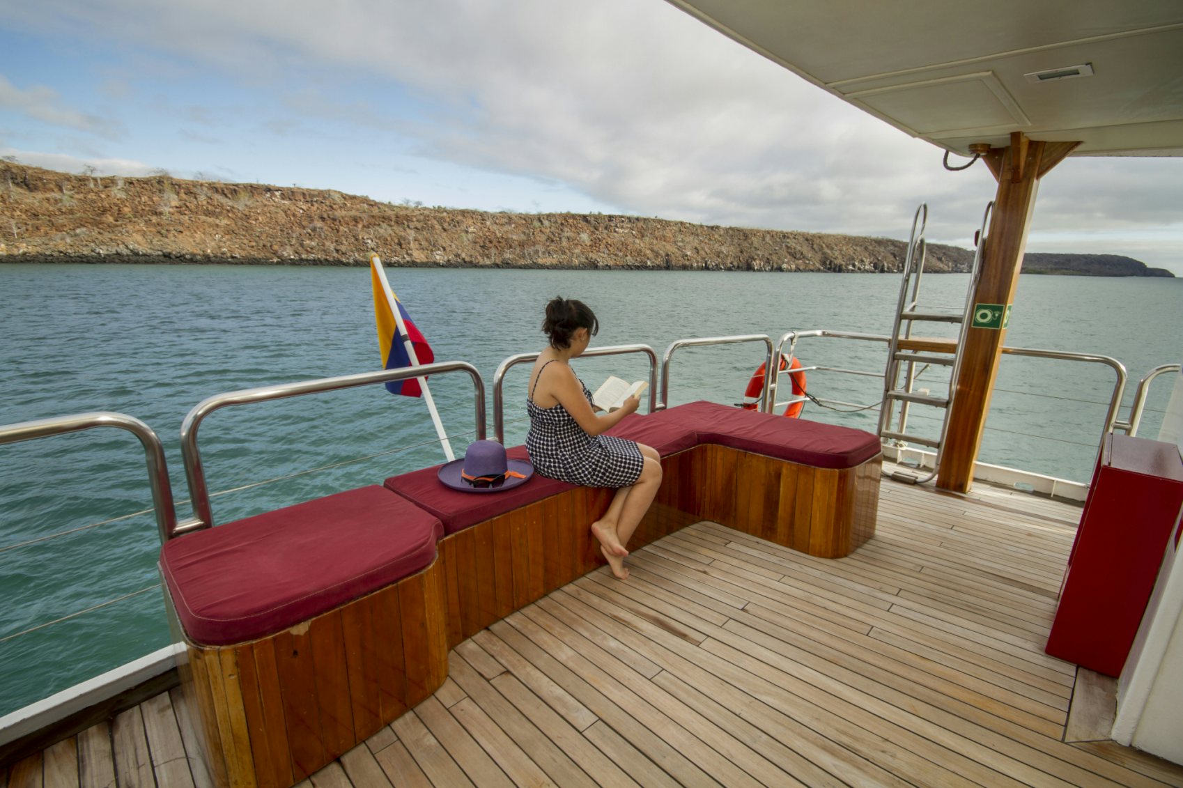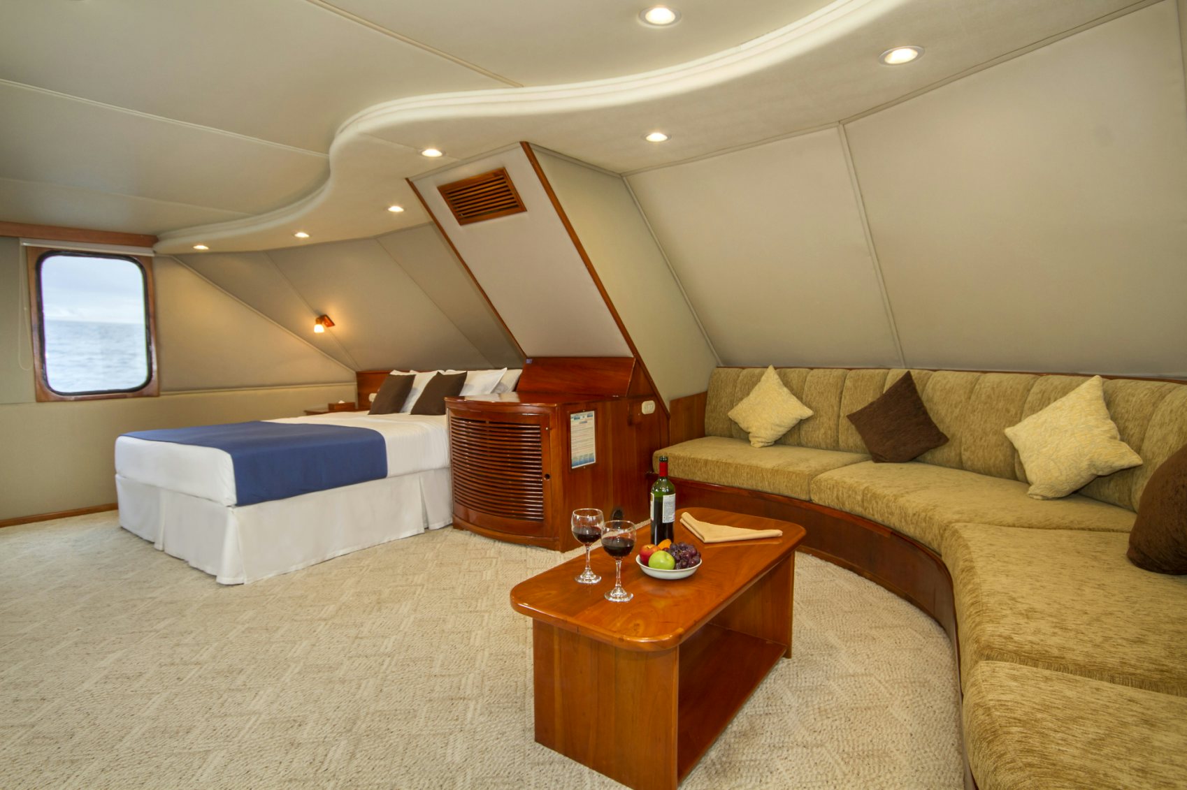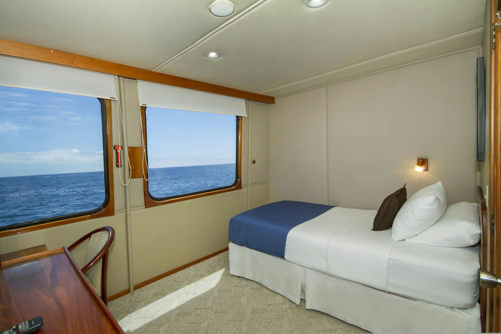 Nine guests cabins comfortably accommodate 16 guests in the stunning Galapagos Islands. Pop off the swim platform and get into one of yacht INTEGRITY’s eight two-person kayaks to get up close and personal with some of the incredible wildlife in the area. You’ll have a front-row seat to see whales, dolphins, fur seals, marine iguanas, and frigate birds from INTEGRITY yacht’s sun deck, complete with Jacuzzi and covered bar area.