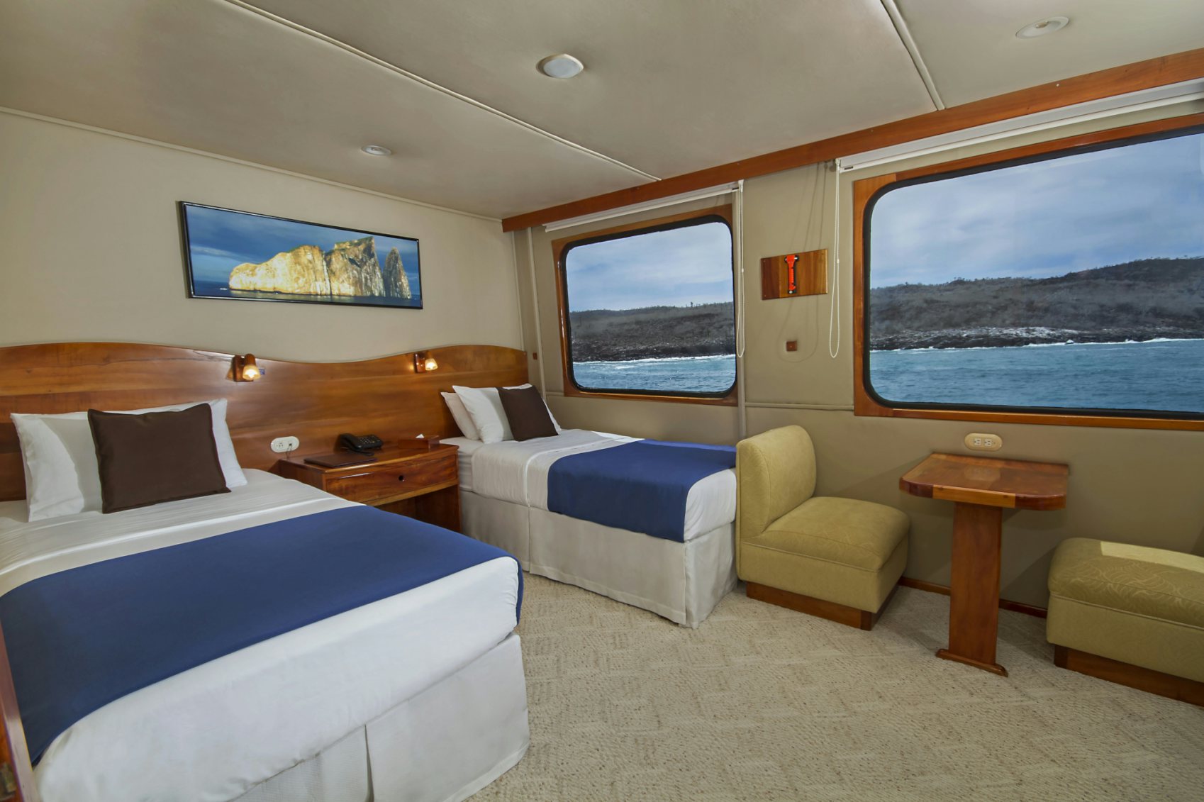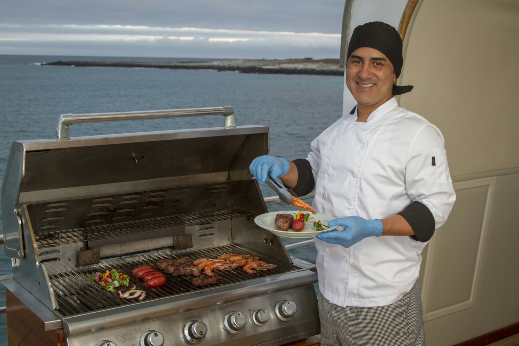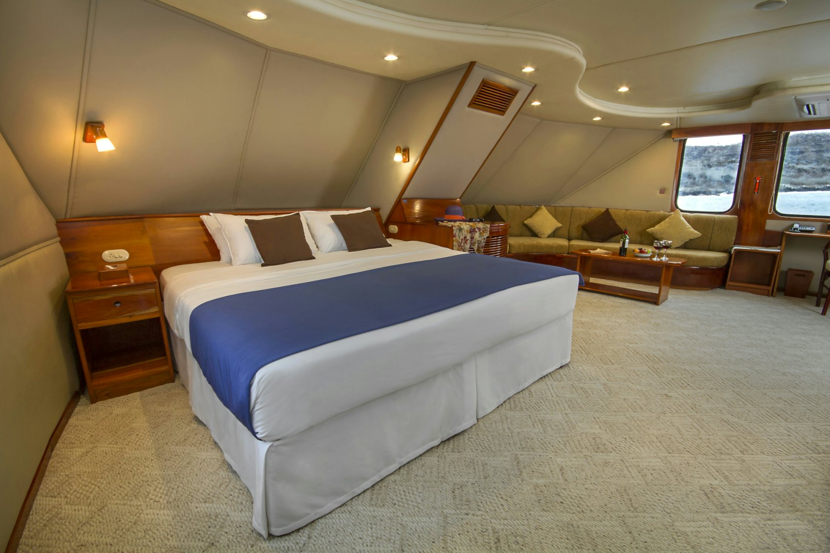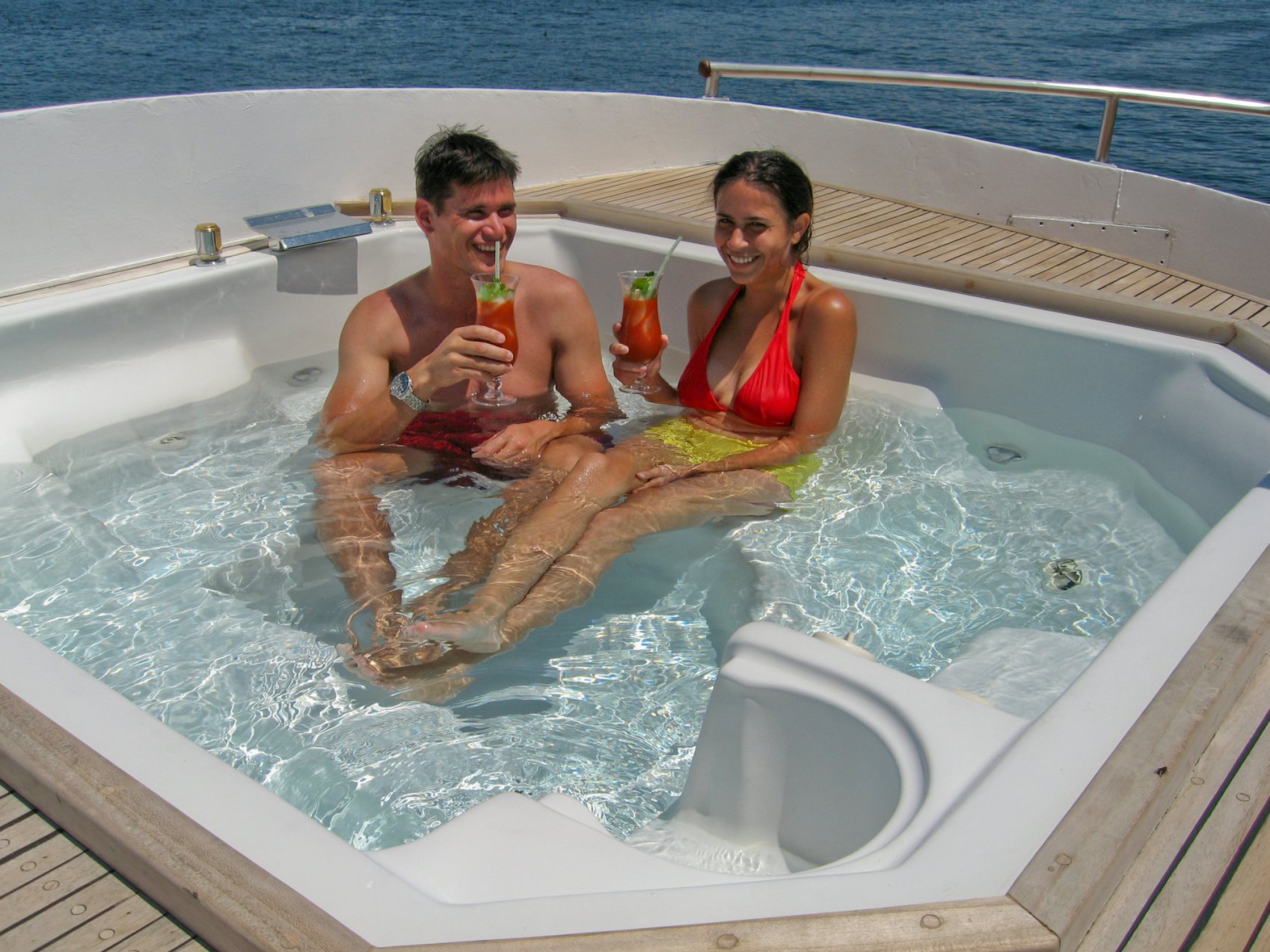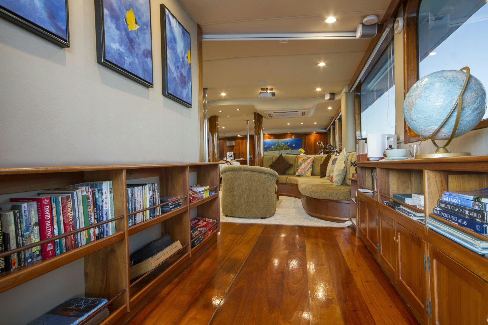 Nine guests cabins comfortably accommodate 16 guests in the stunning Galapagos Islands. Pop off the swim platform and get into one of yacht INTEGRITY’s eight two-person kayaks to get up close and personal with some of the incredible wildlife in the area. You’ll have a front-row seat to see whales, dolphins, fur seals, marine iguanas, and frigate birds from INTEGRITY yacht’s sun deck, complete with Jacuzzi and covered bar area.