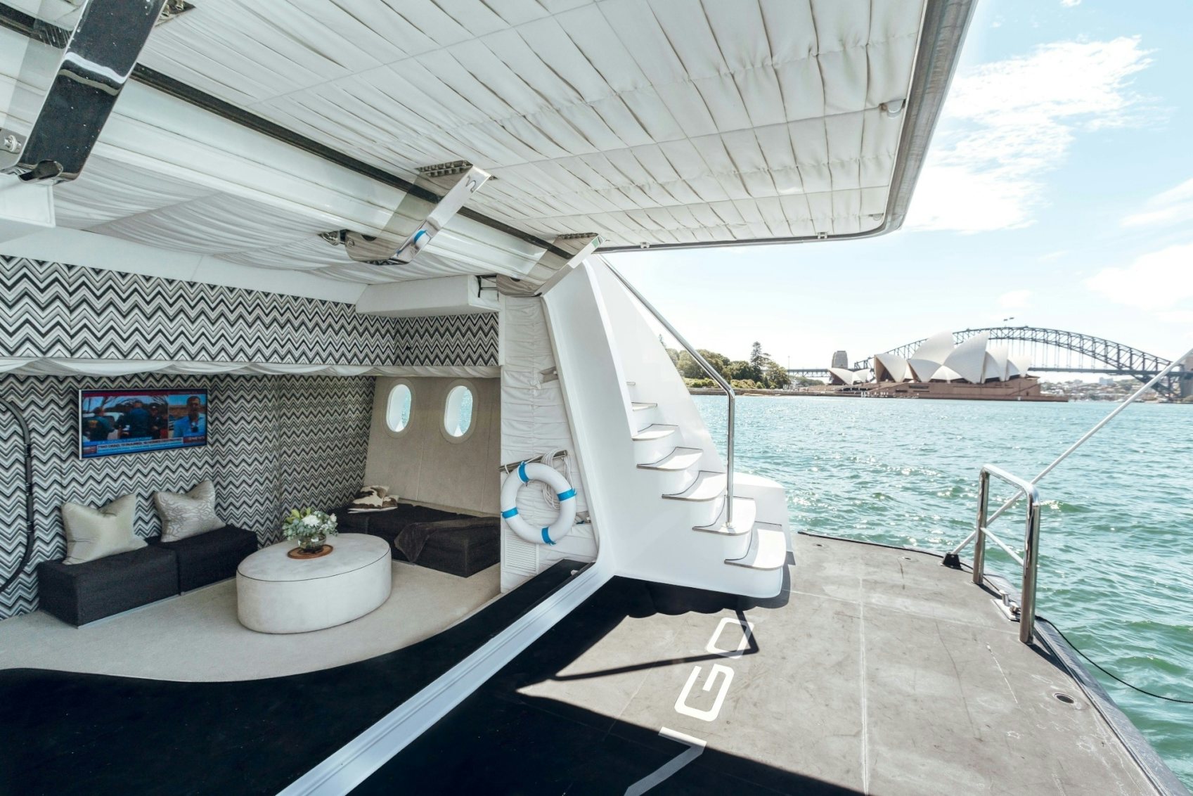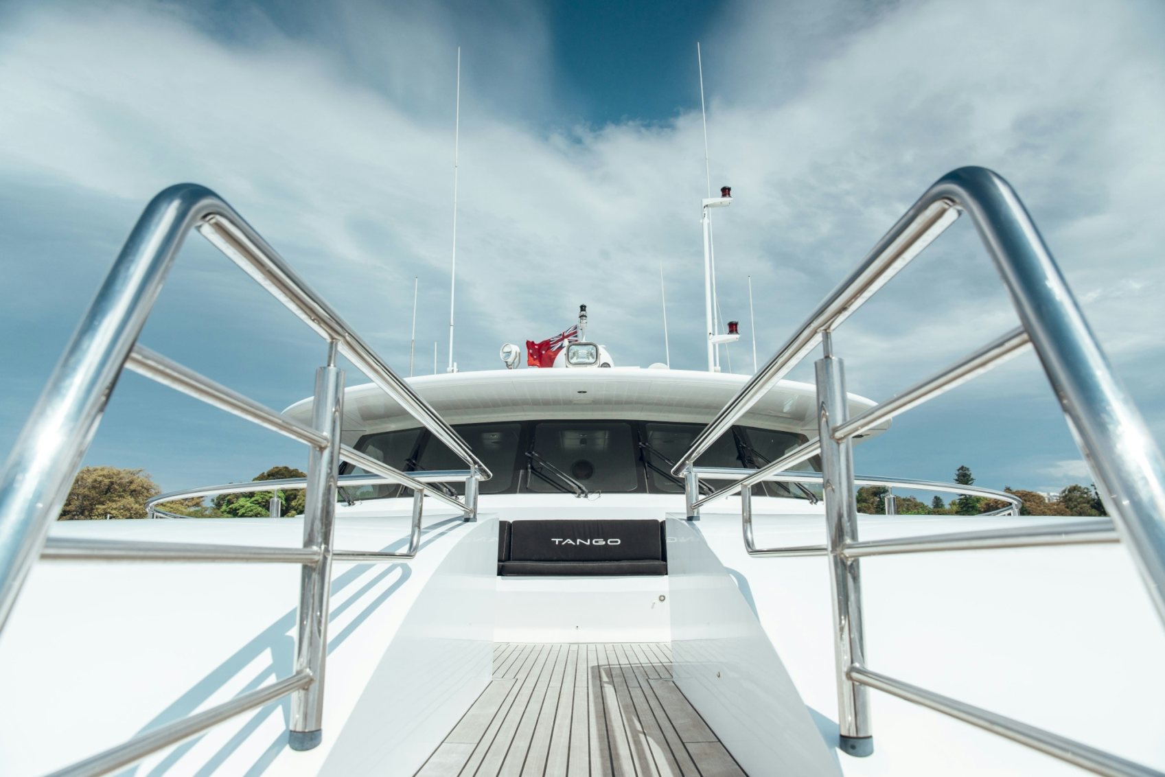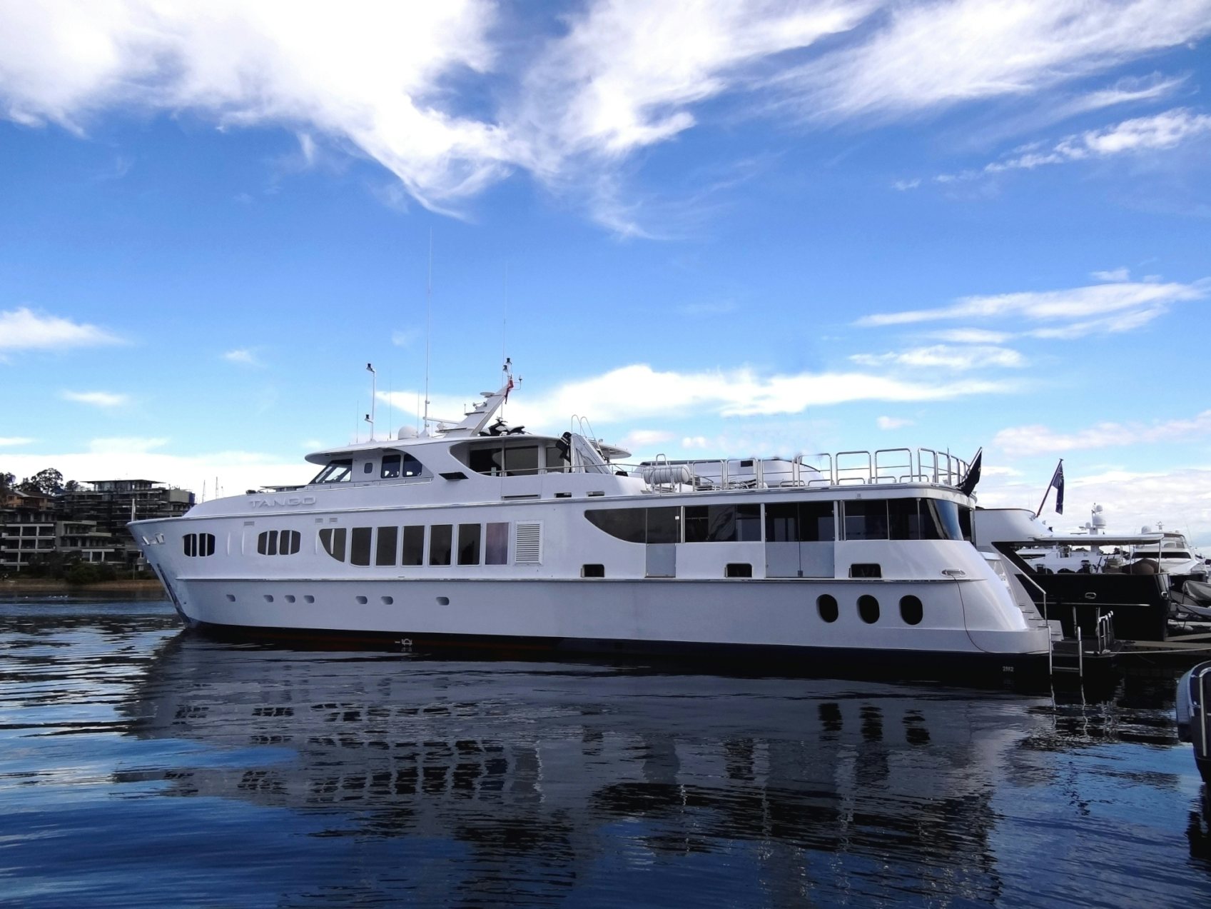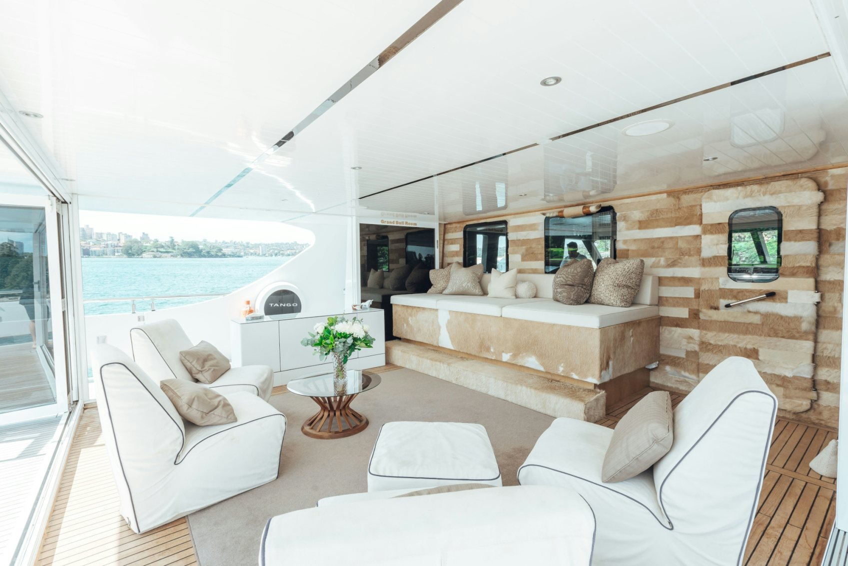 The customized layout allows for large groups of up to 80 guests for entertaining on Sydney Harbour with an enclosed aft deck allowing for all weather conditions. Enhanced by an open plan living area, full beam interior and private cigar lounge on the fly bridge, entertaining on Tango is quite possibly the most exclusive entertaining venue in Australia