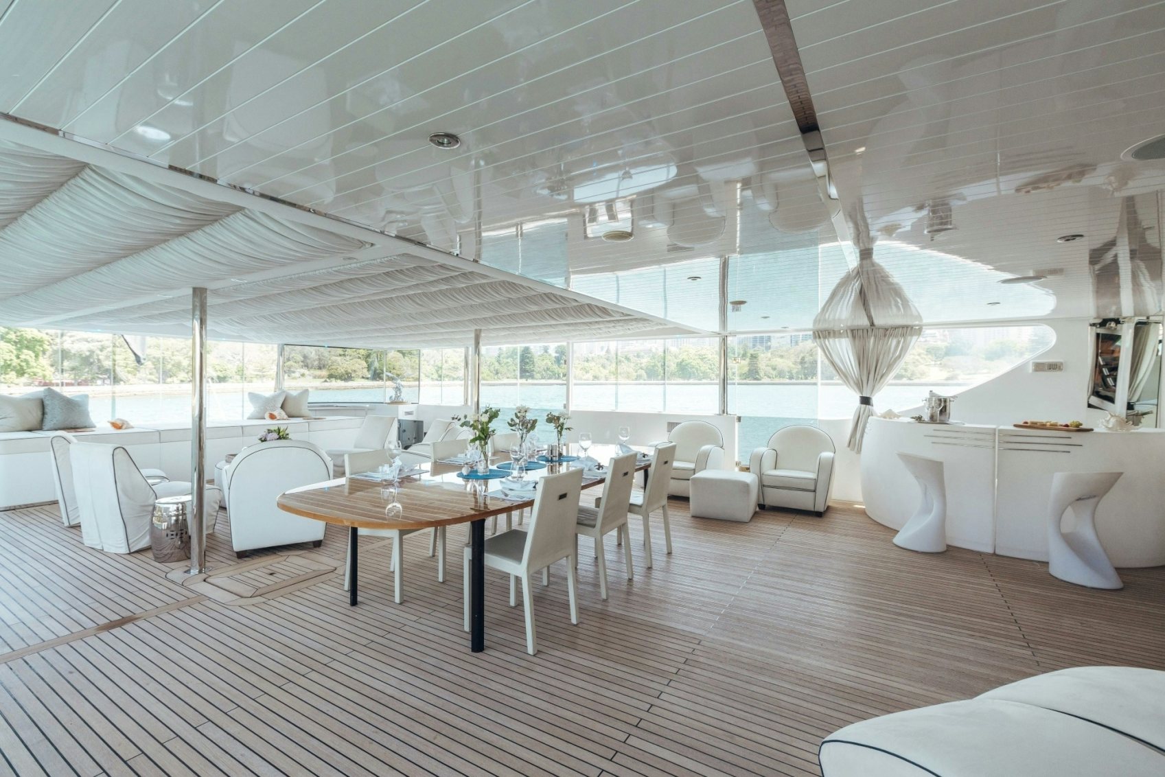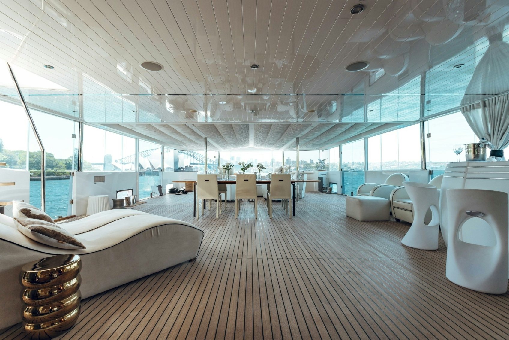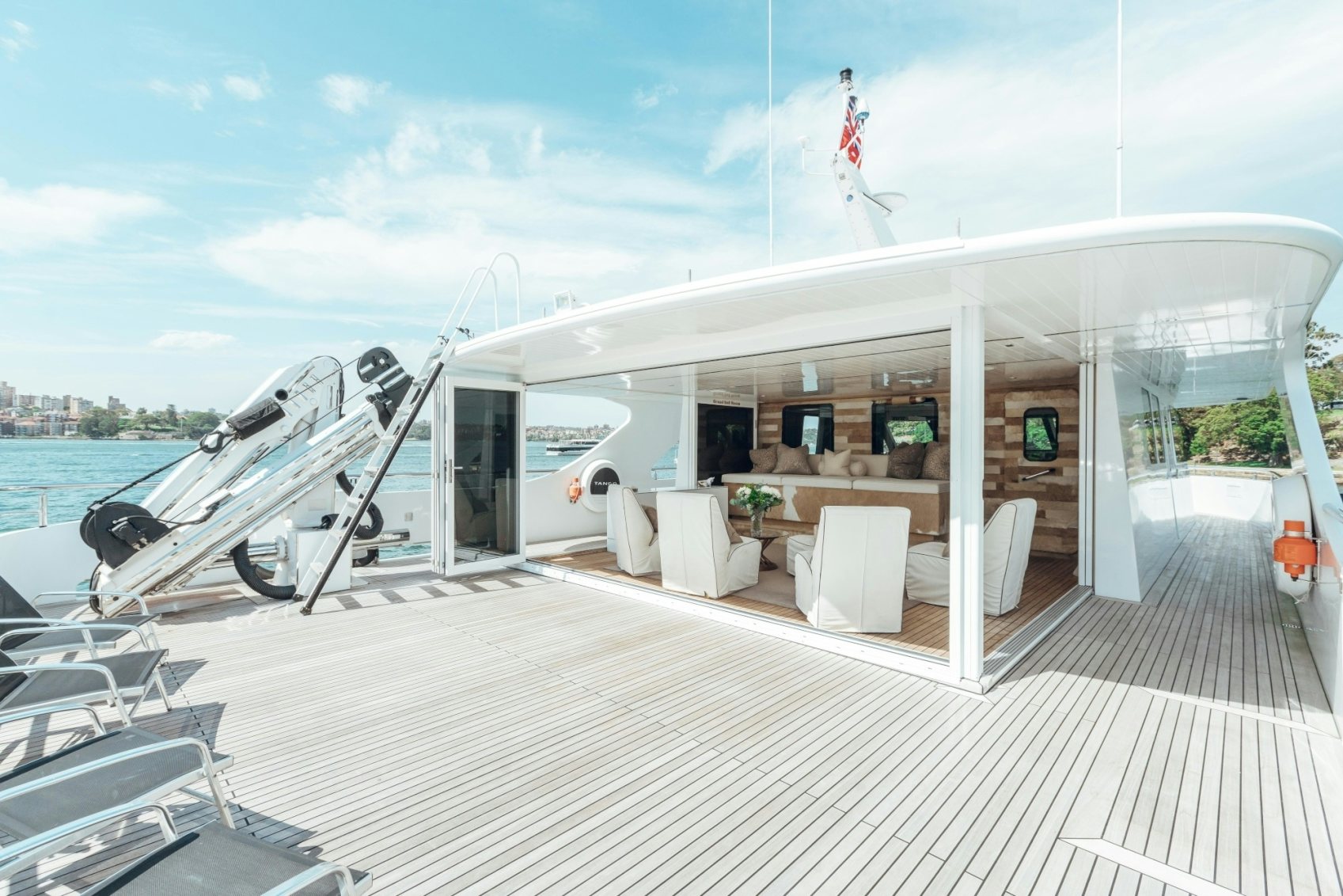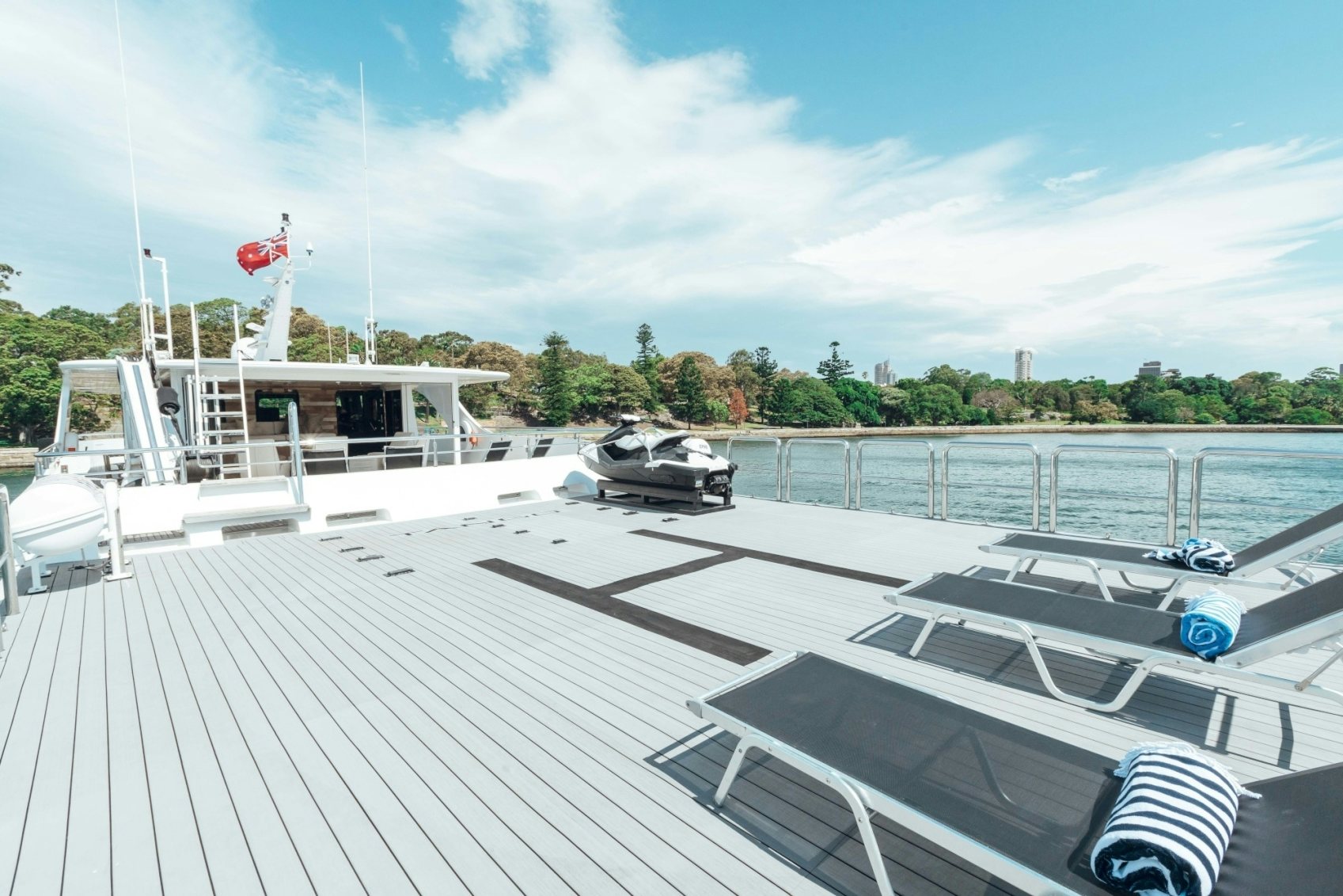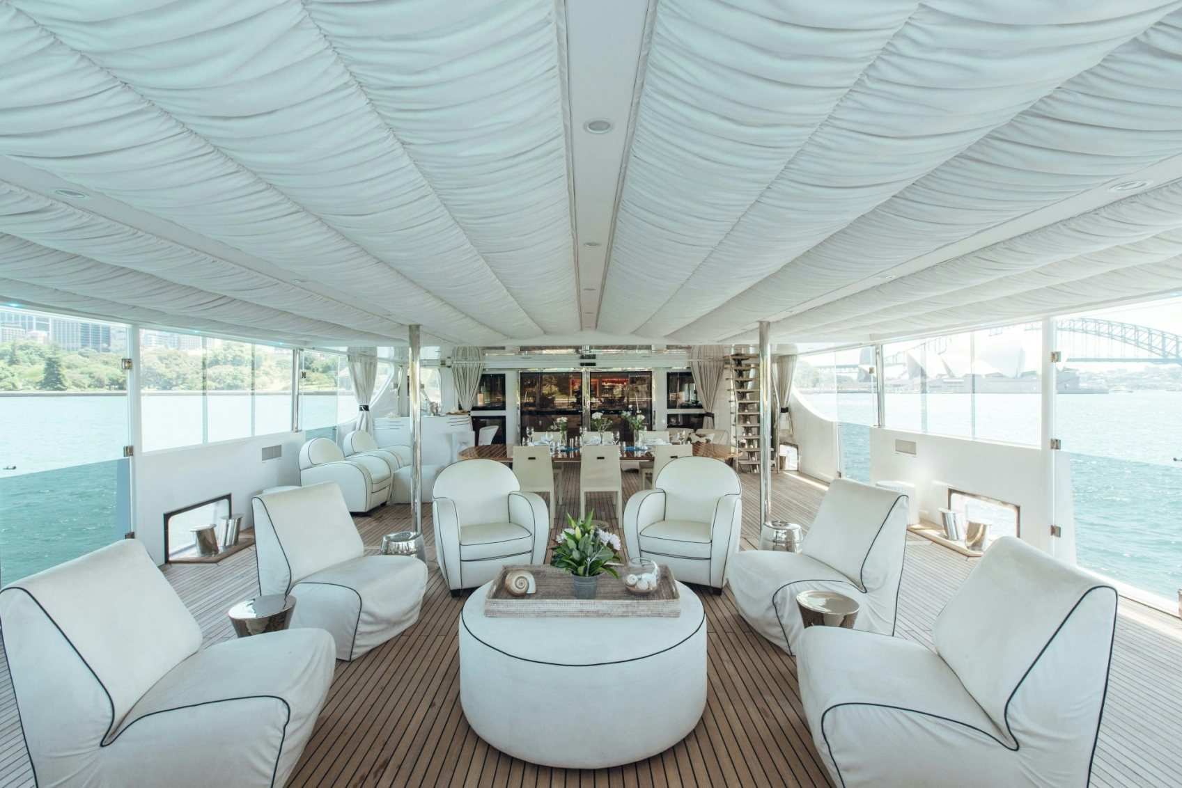 The customized layout allows for large groups of up to 80 guests for entertaining on Sydney Harbour with an enclosed aft deck allowing for all weather conditions. Enhanced by an open plan living area, full beam interior and private cigar lounge on the fly bridge, entertaining on Tango is quite possibly the most exclusive entertaining venue in Australia