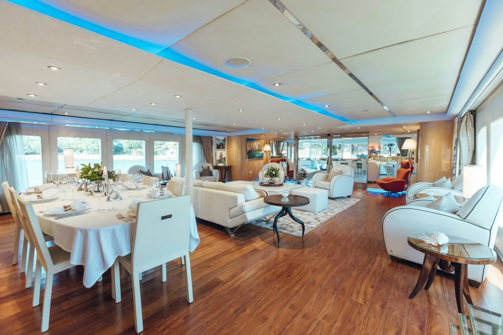 The 140-foot (42.5m) TANGO offers incredible accommodations for eight guests on board. Relax in her beautiful layout, which include one full beam master cabin with king-size bed, full-size bathtub with en-suite and walk-in wardrobe. For guests, TANGO offers three cabins with queen-size bed, all en-suite.