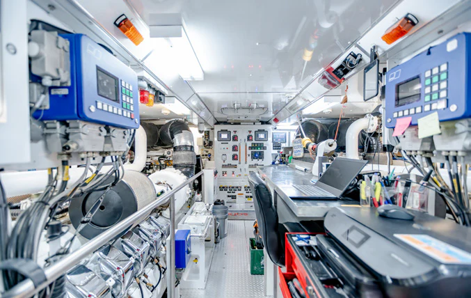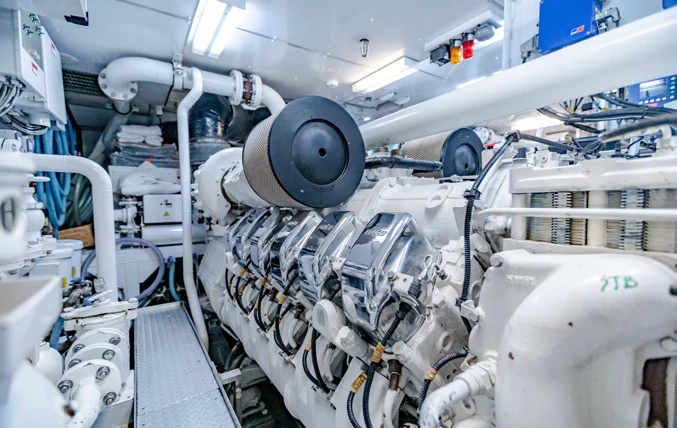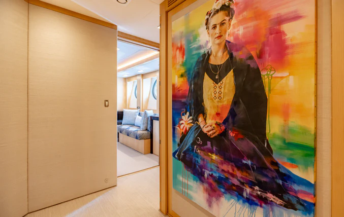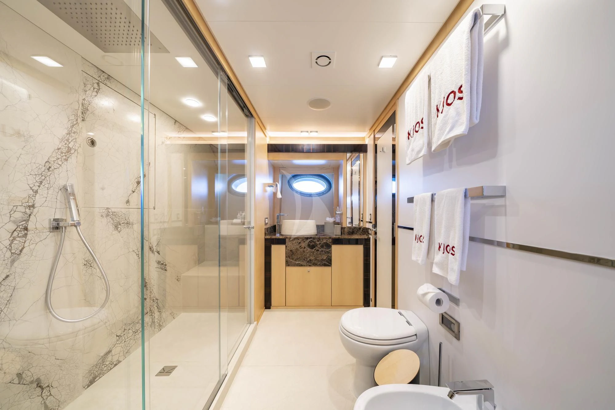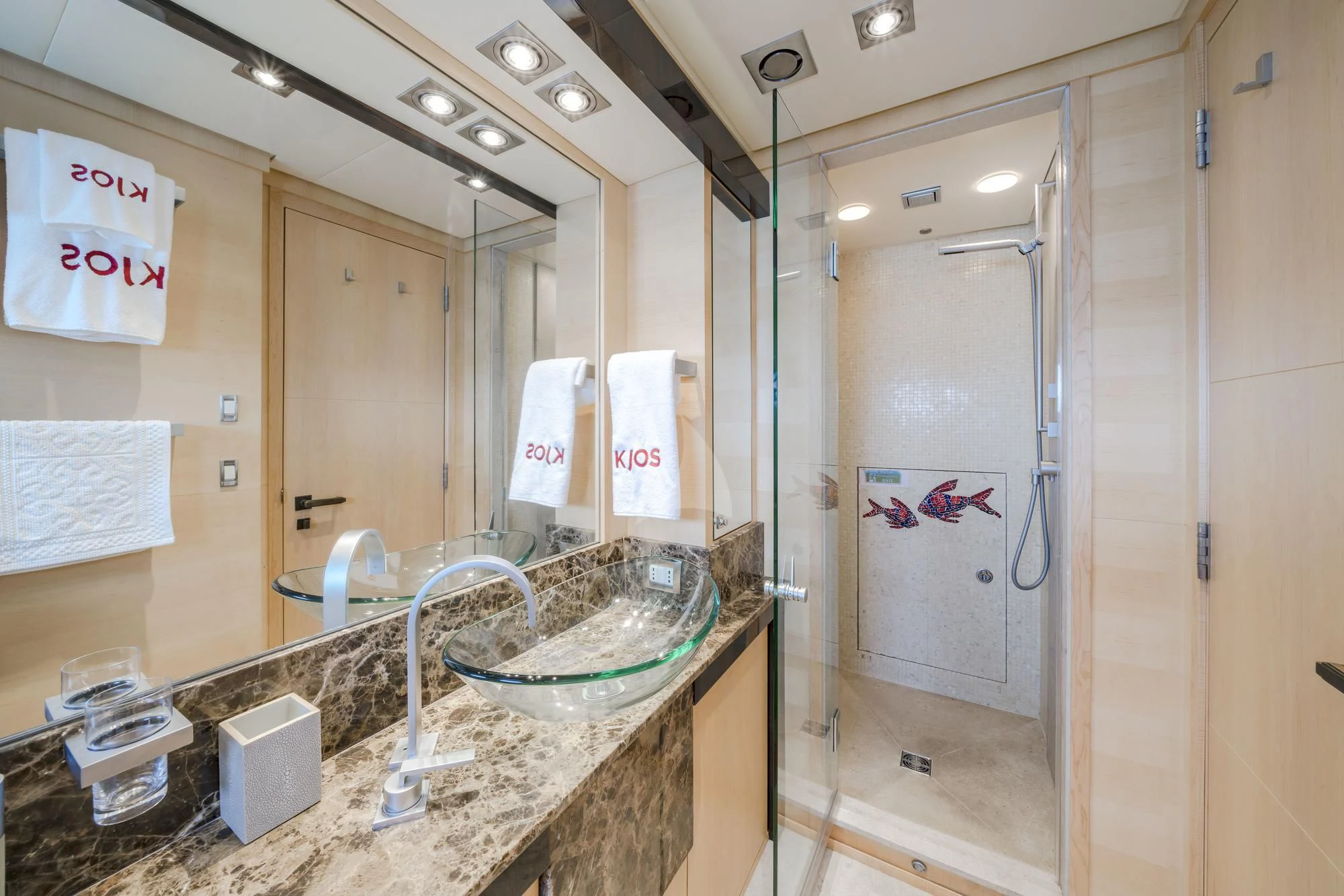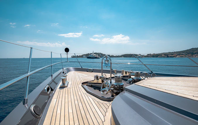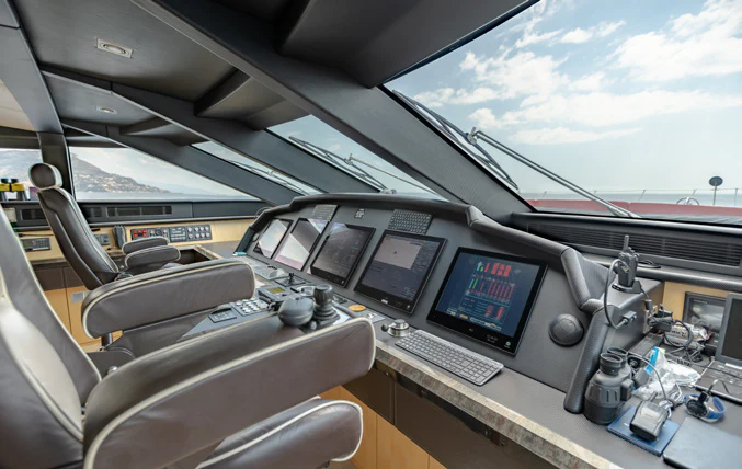 KJOS provides eight guests with the utmost comfort in four divine staterooms. Plush and tranquil, the yacht’s master stateroom showcases a double bed, a built-in seating area and en-suite bathroom with his-and-her sinks and a large shower. Equally as impressive, are two double-bed staterooms with en-suite bathrooms. The fourth stateroom is equipped with twin beds and has its own dedicated en-suite shower room. It can also be used as a private salon or TV room.
