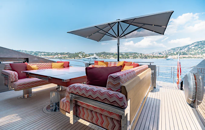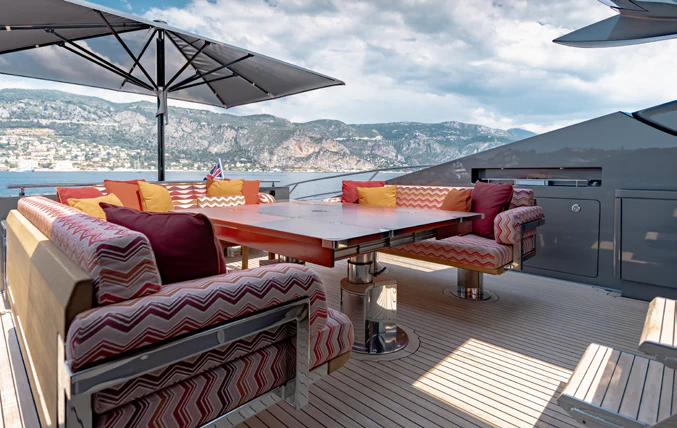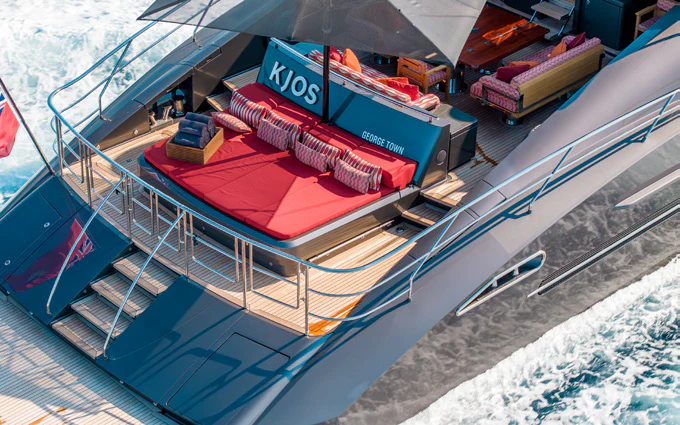 From vast indoor and outdoor living spaces to a five-star crew, luxury charter yacht KJOS will surpass all your expectations. Built by Palmer Johnson, this yacht has sleek, sporty lines and a desirable onboard atmosphere, which makes her ideal for charter guests who are looking for relaxation or fun in the sun.
