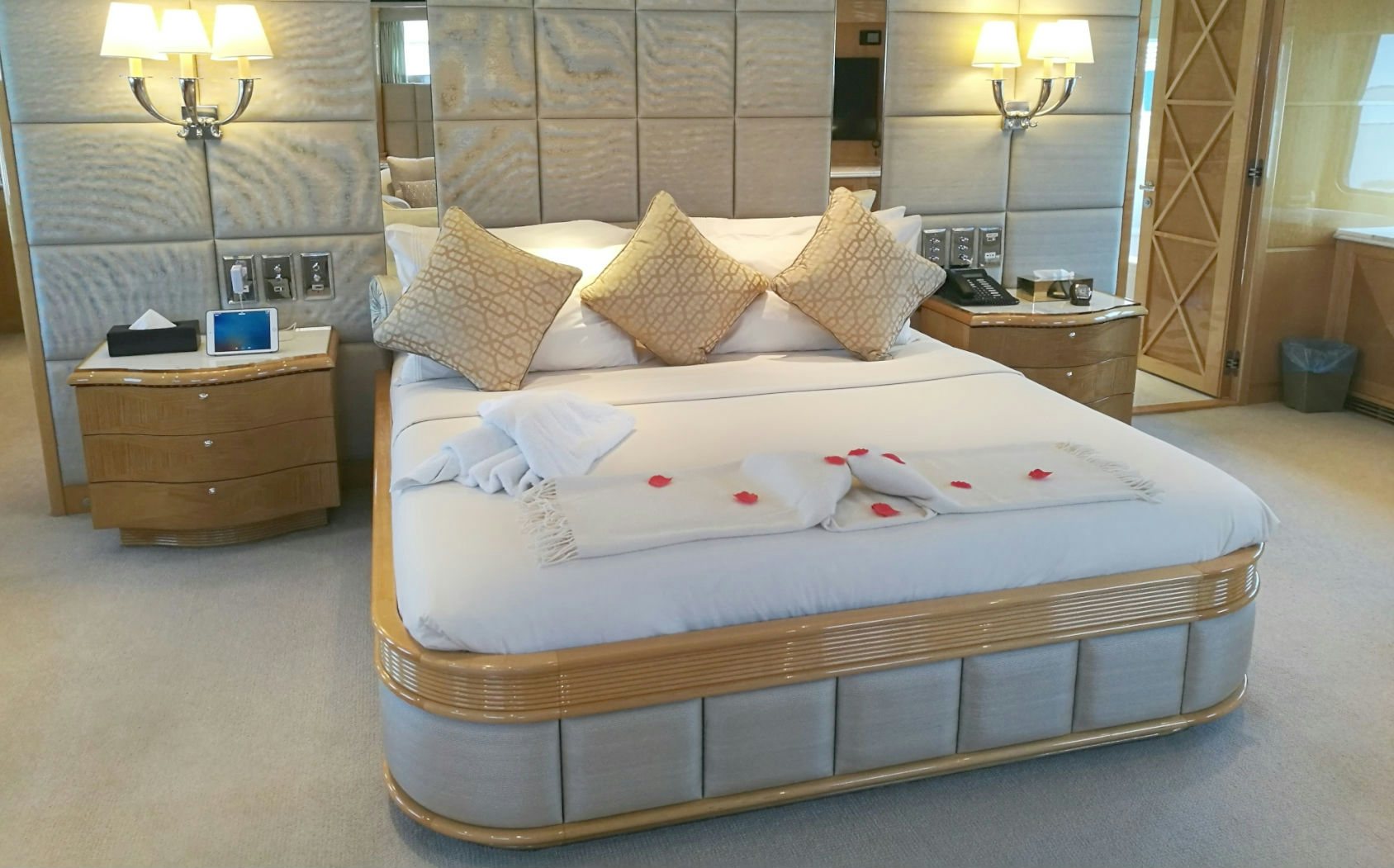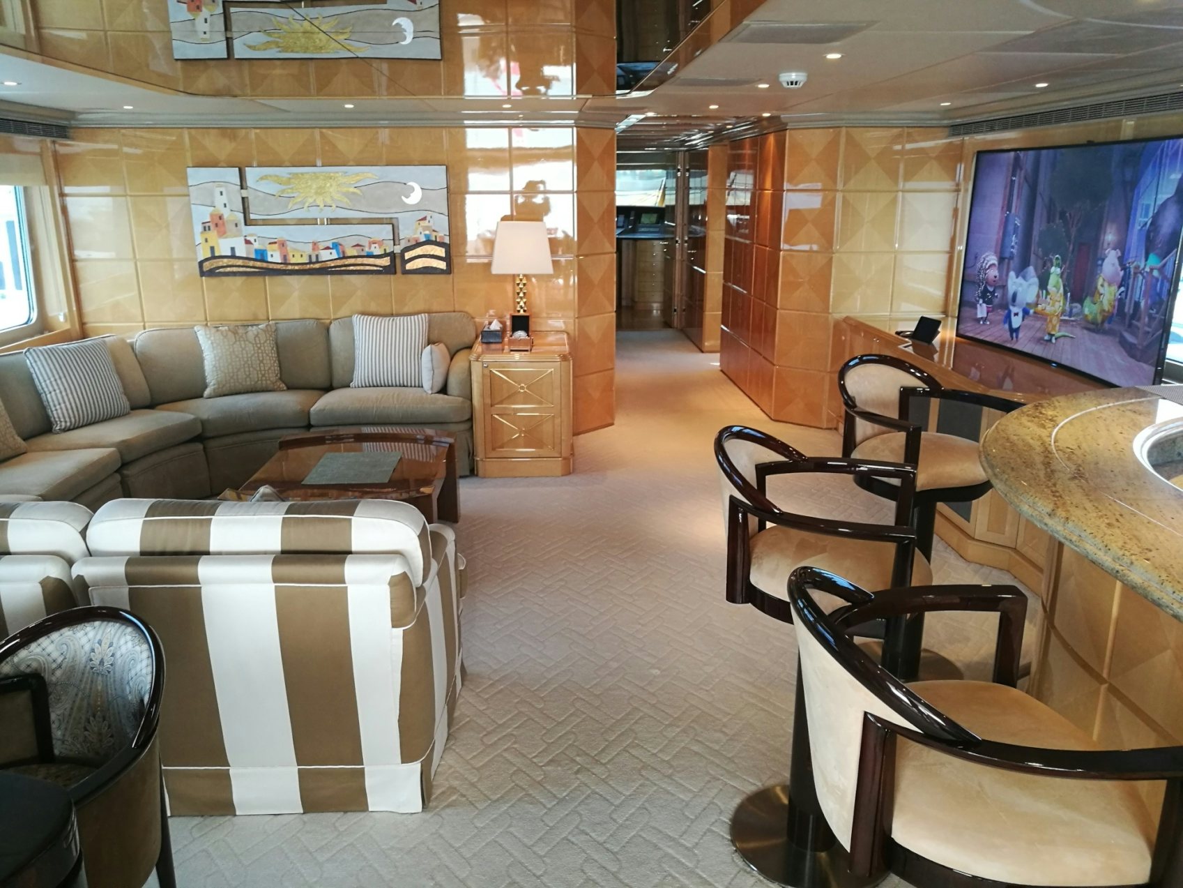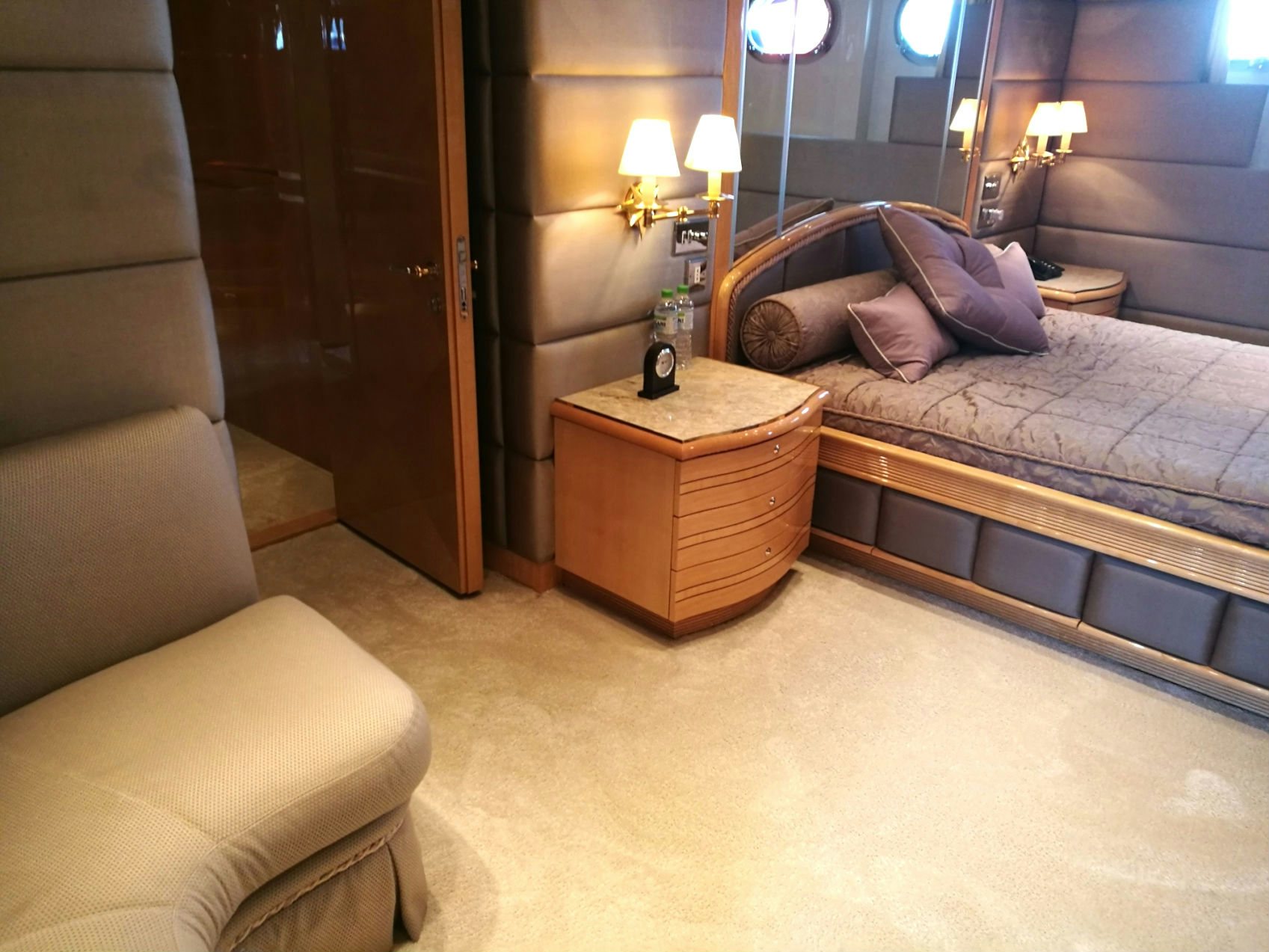 After a day of fun in the sun, be entertained by a movie in the yacht’s home cinema in the sky lounge or have a relaxing time lounging on the fly bridge.