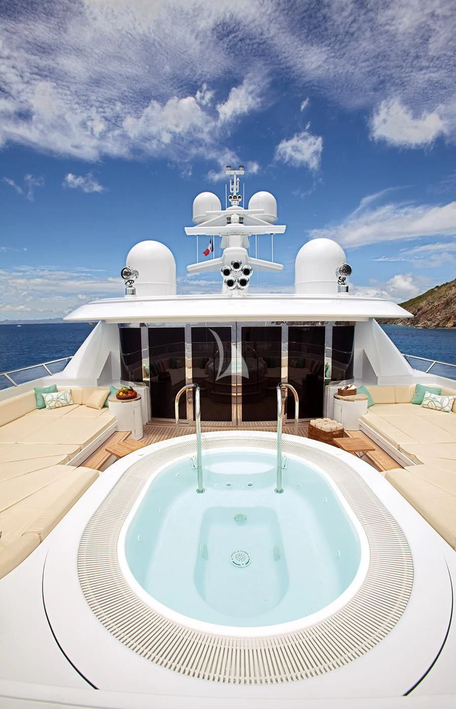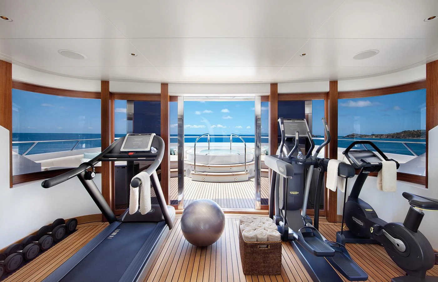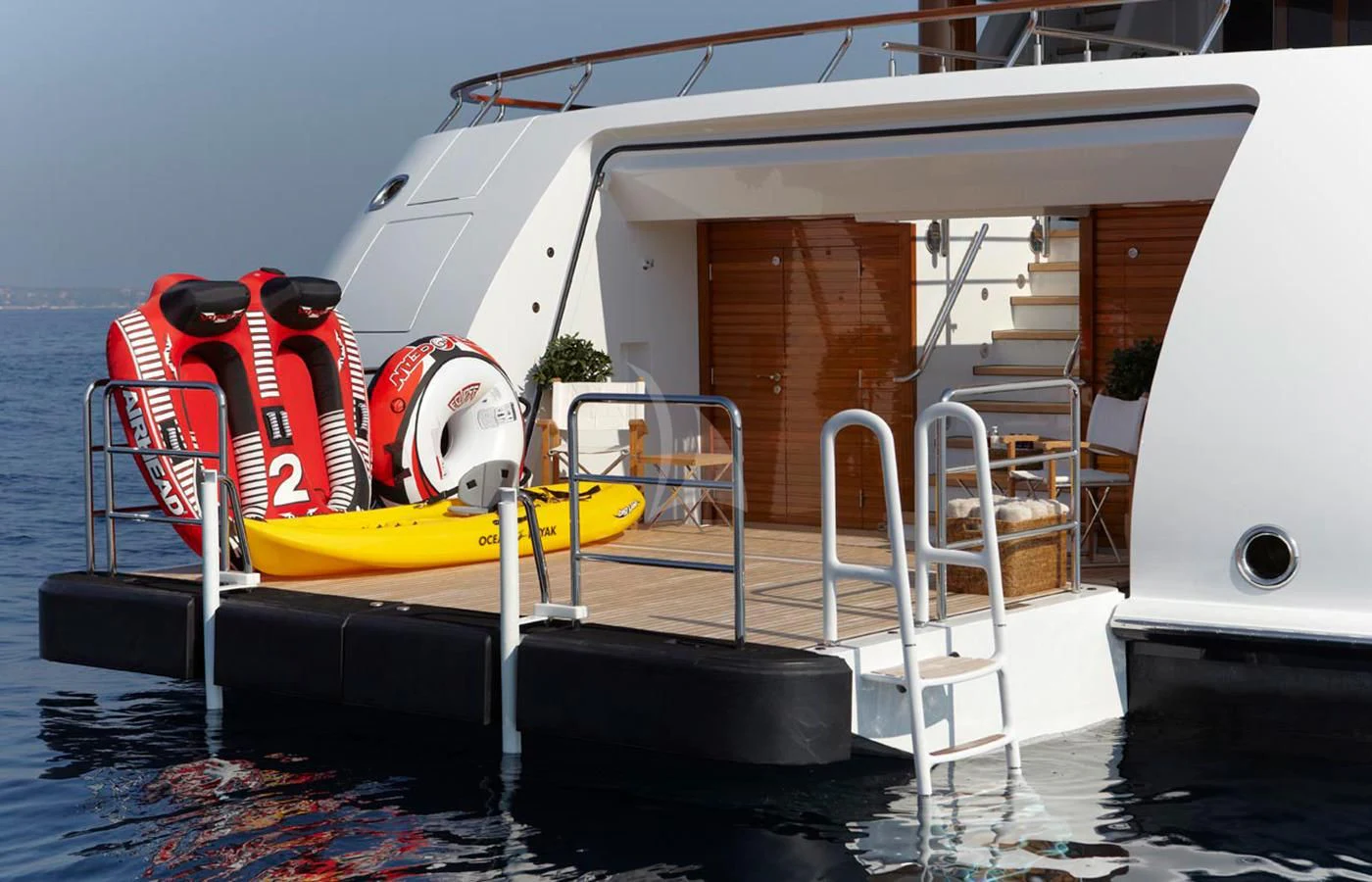 Specifically designed for charter, LADY BRITT has a plethora of guest friendly features on board including a dedicated wellness spa, beach club, outdoor cinema, DJ equipment and an authentic Finnish sauna with private access to the ocean for a cooling dip. However, her most outstanding feature has to be the double aspect sundeck divided by an air-conditioned gym.Those looking for more activities will be delighted with the incredible selection of watersports equipment carried on board, while the water slide and aqua park will provide endless hours of fun for the children (and adults) in the charter party.
