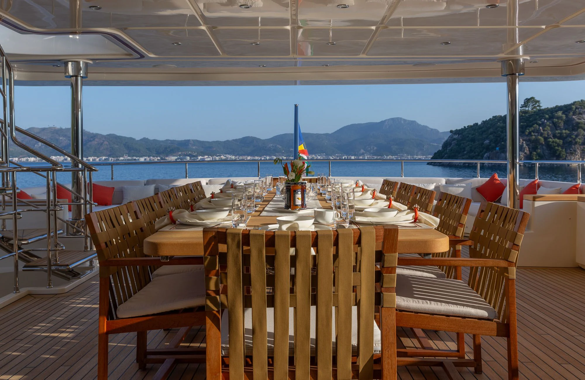 LADY I’s impressive beach club provides more than just access to the water and her array of toys, it also offers a sauna and a wellness area for a relaxing onboard massage or beauty treatment. For those who prefer more vigorous pursuits, LADY I’s arsenal includes a Jet Ski, Seabobs, an E-foil, waterskis, wakeboards, snorkeling kit and paddleboards. Her 32’10” tender makes it easy to access the tucked-away coves and hidden beaches of her cruising grounds. Cruising at 13 knots and 15.5 knots full throttle, and with an advanced stabilization system reducing roll motion both at anchor and underway, everything about LADY I ensures the ultimate comfort for all on board. With an outstanding crew of nine looking after every possible whim, an Eastern Mediterranean charter vacation on LADY I promises to be a spectacular experience.